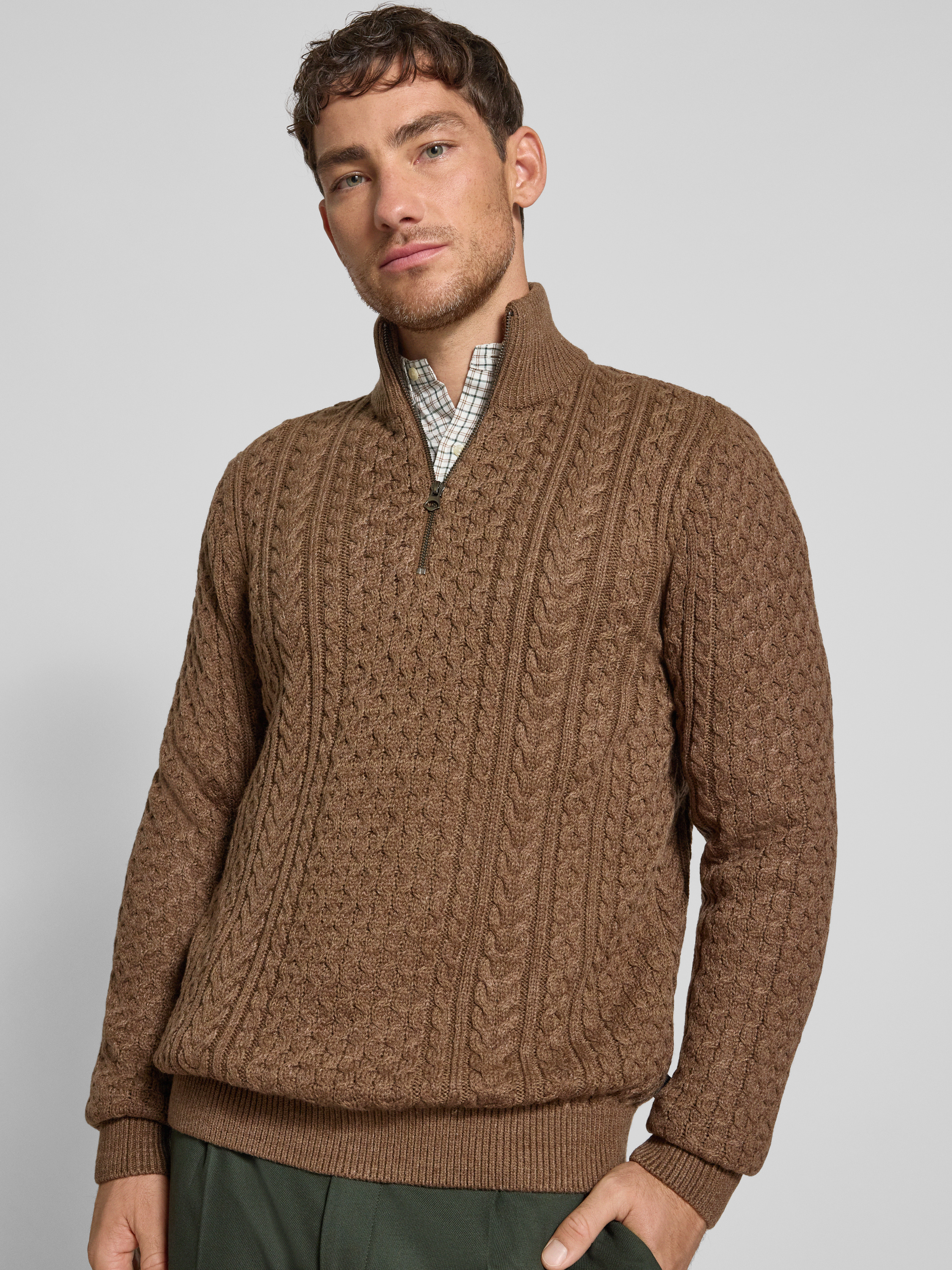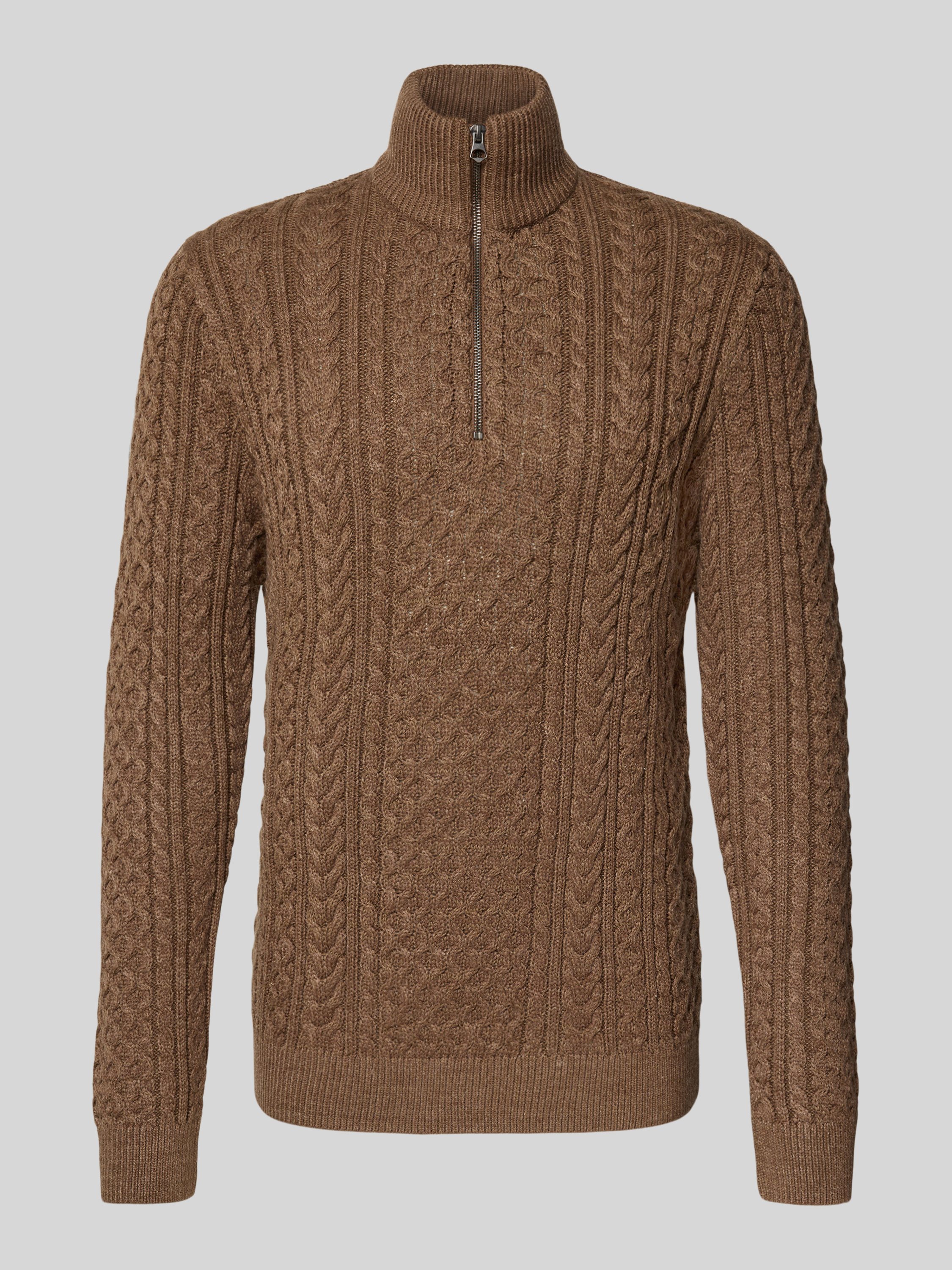 Jack & Jones PremiumGebreide pullover met ribboorden, model 'BLUSEAN' in middenbruin