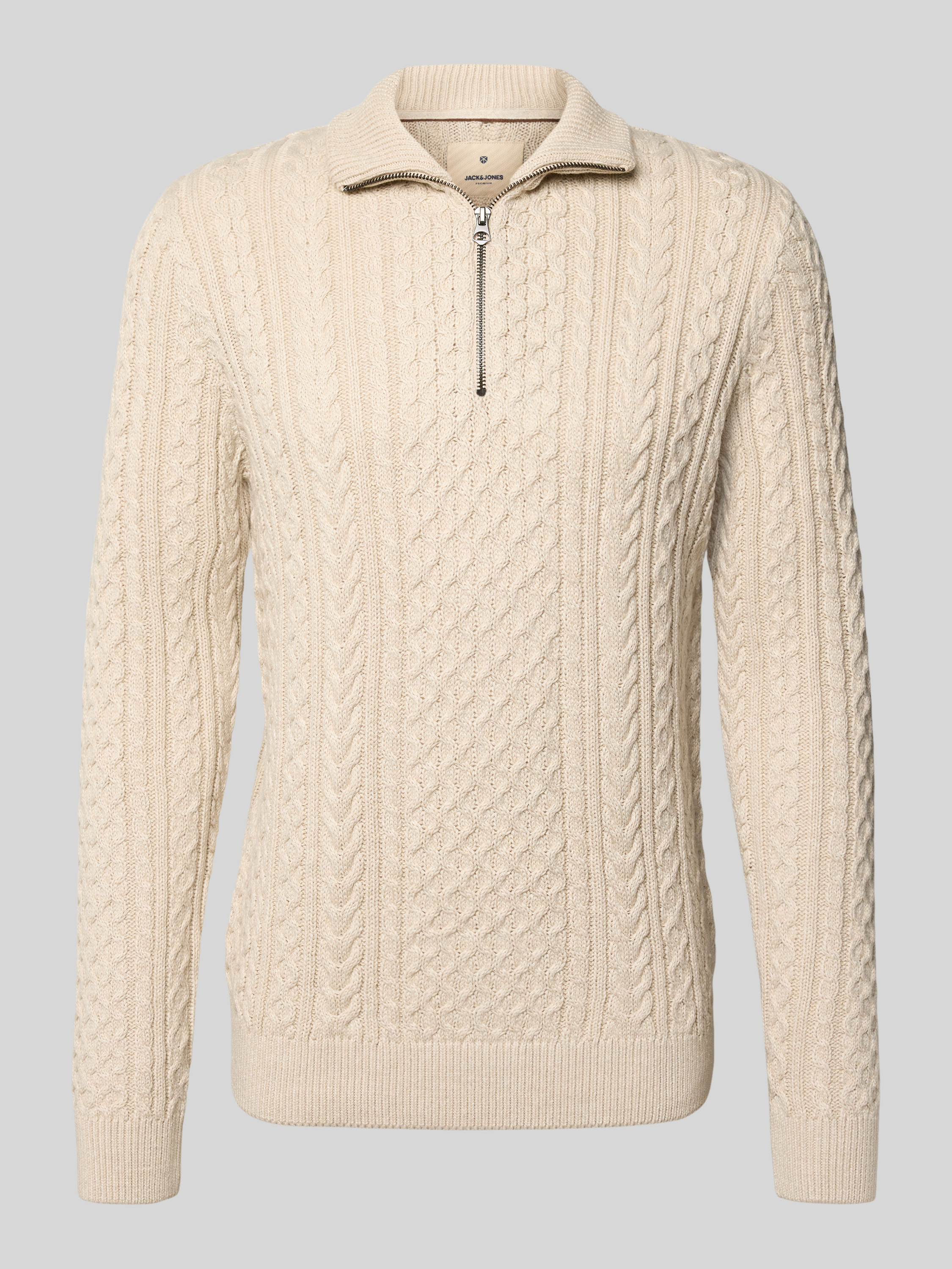 Jack & Jones PremiumGebreide pullover met ribboorden, model 'BLUSEAN' in offwhite gemêleerd