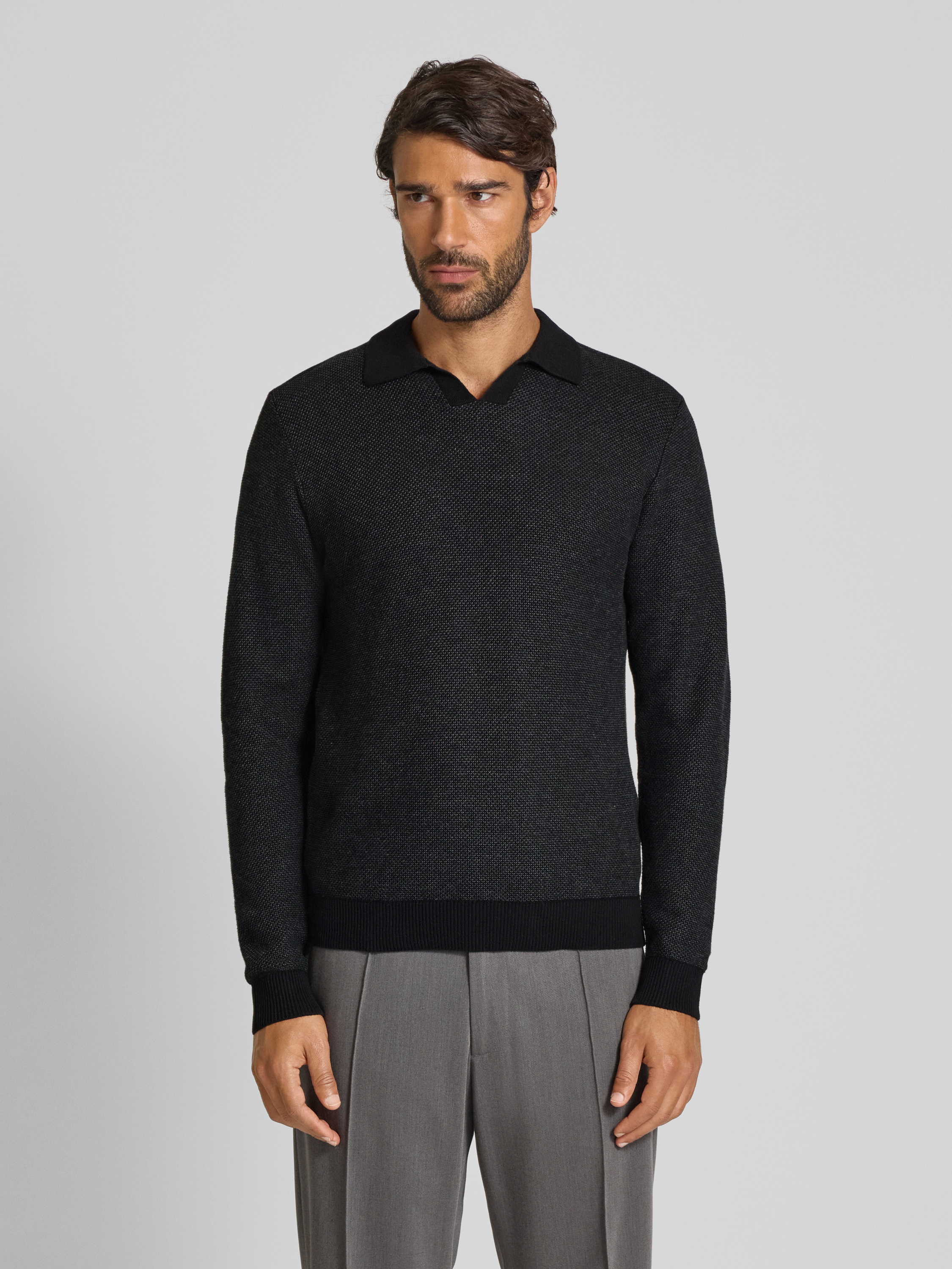 Gebreide pullover met ribboorden, model 'EASTON' in antraciet