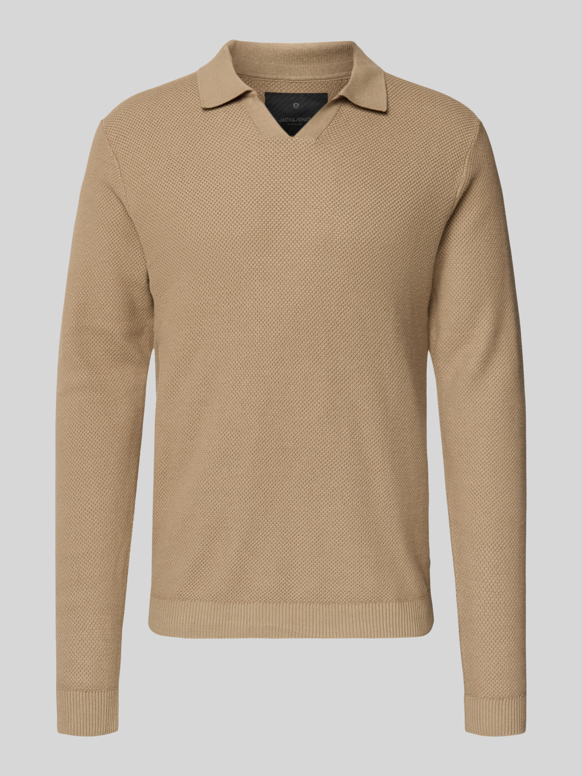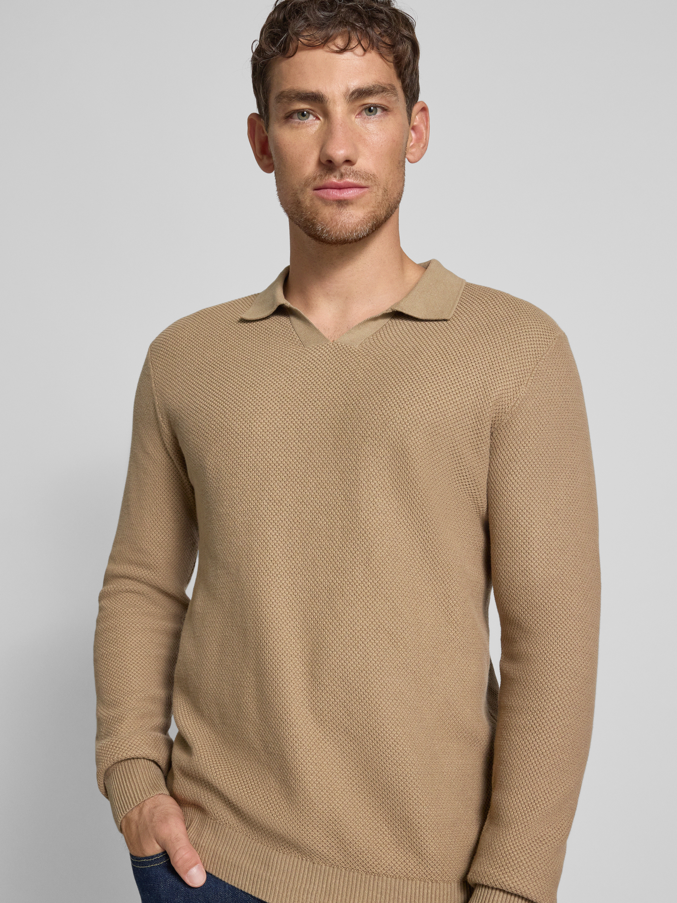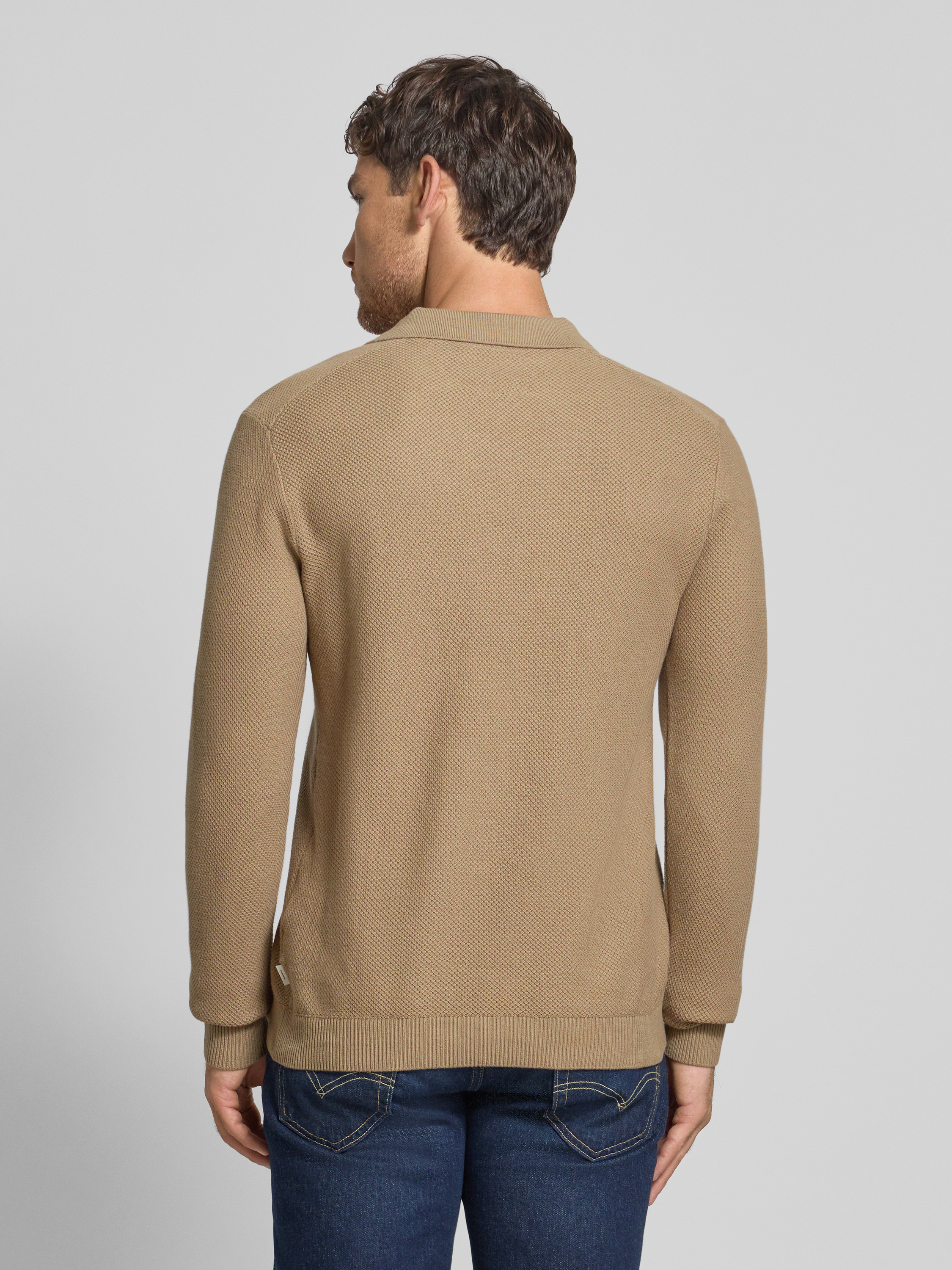 Gebreide pullover met ribboorden, model 'EASTON' in taupe