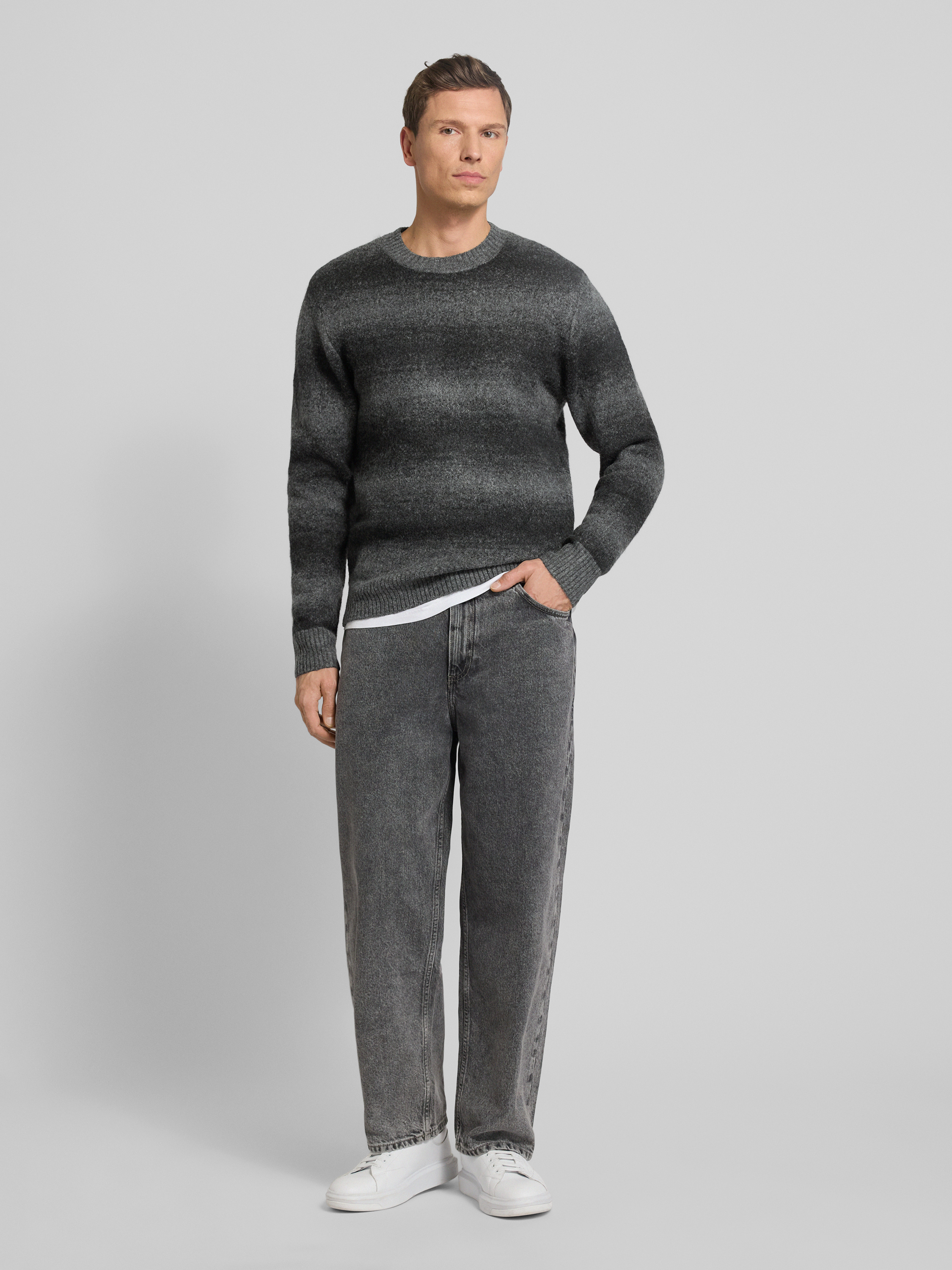 Gebreide pullover met ronde hals in antraciet gemêleerd