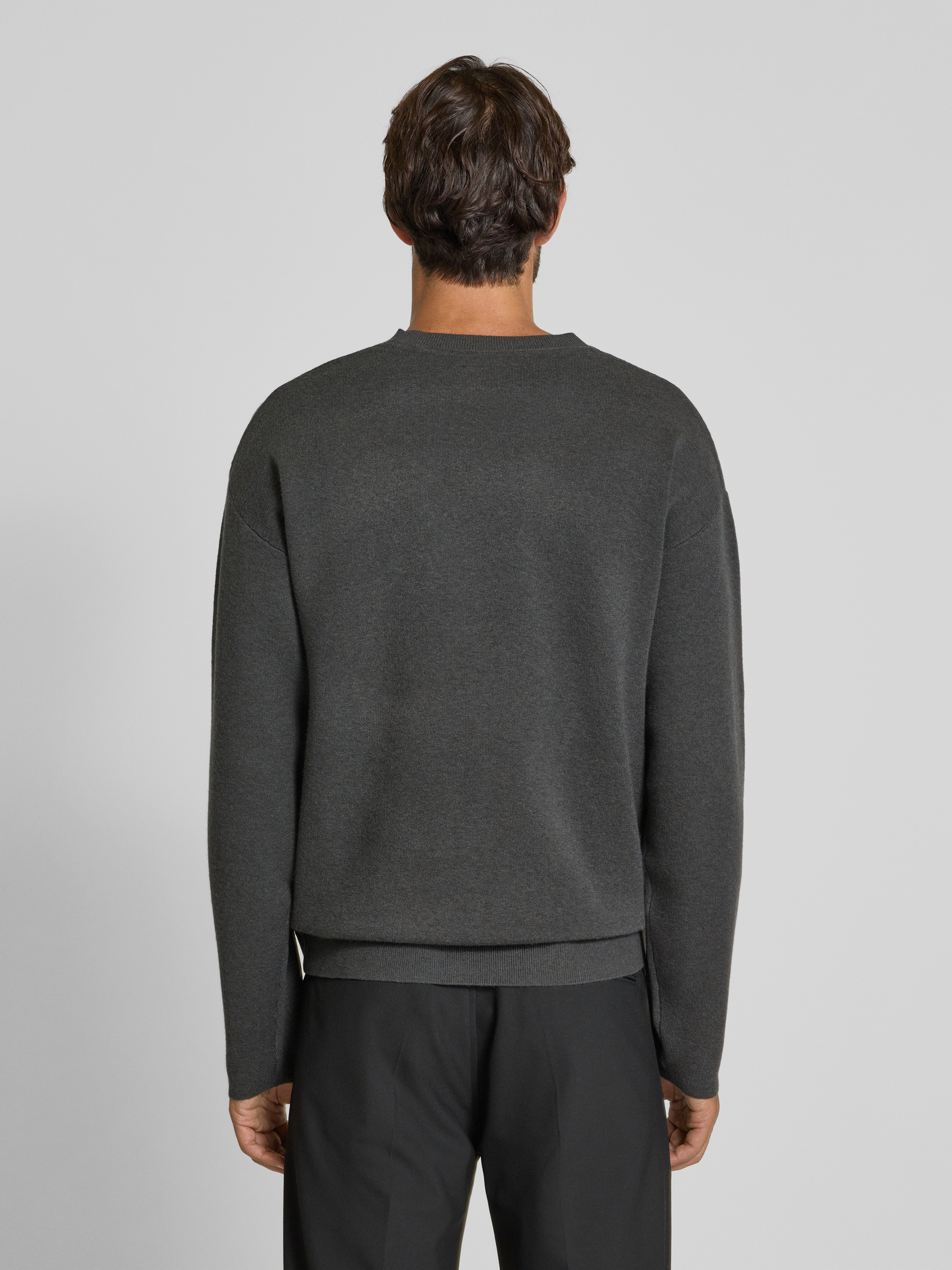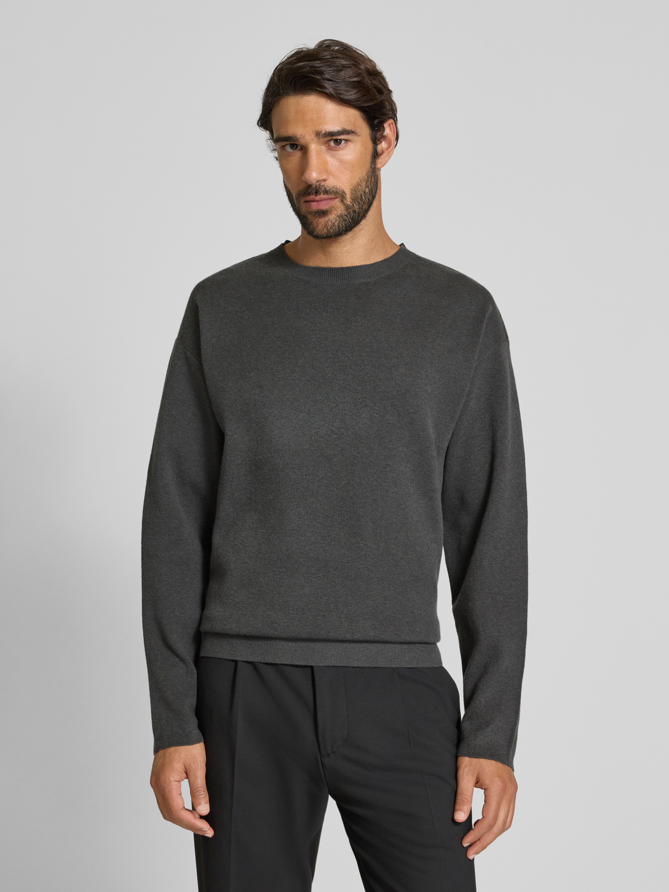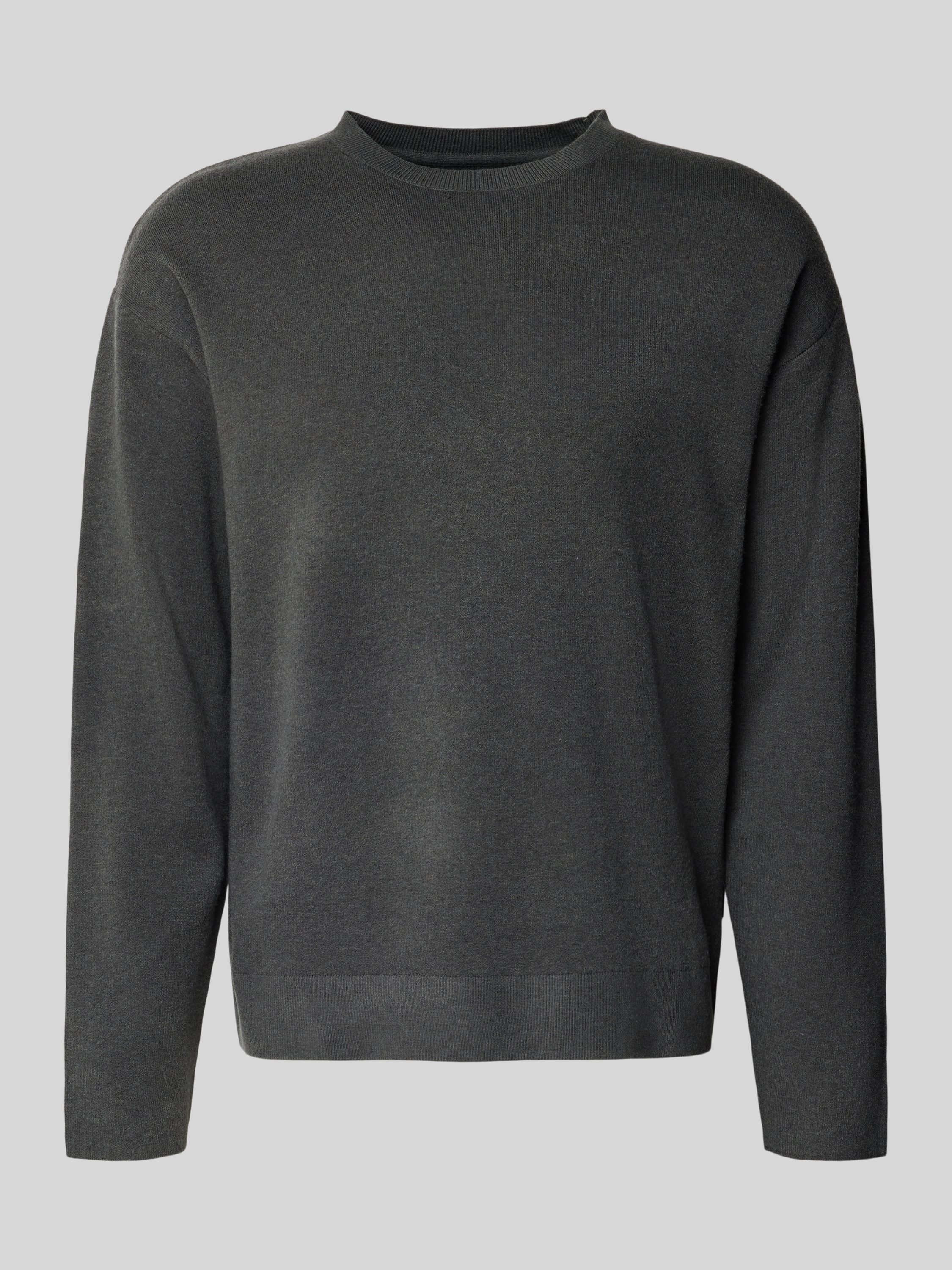 Gebreide pullover met ronde hals, model 'BRADFORT' in antraciet gemêleerd