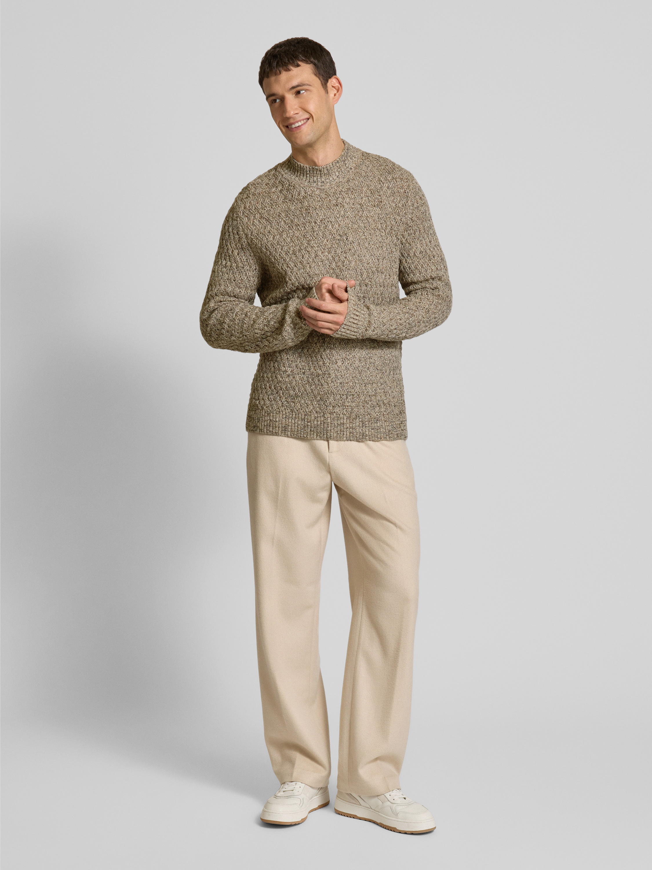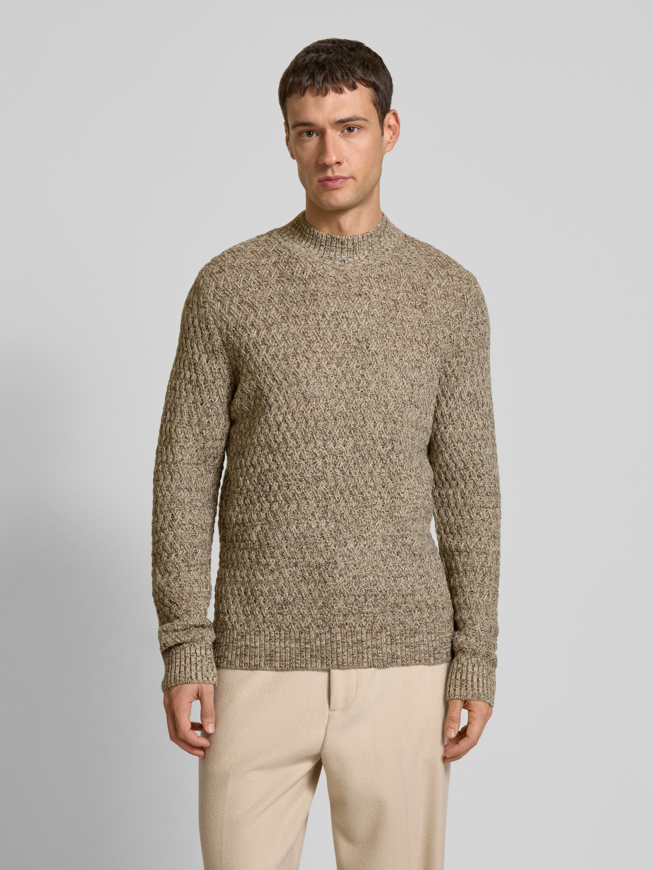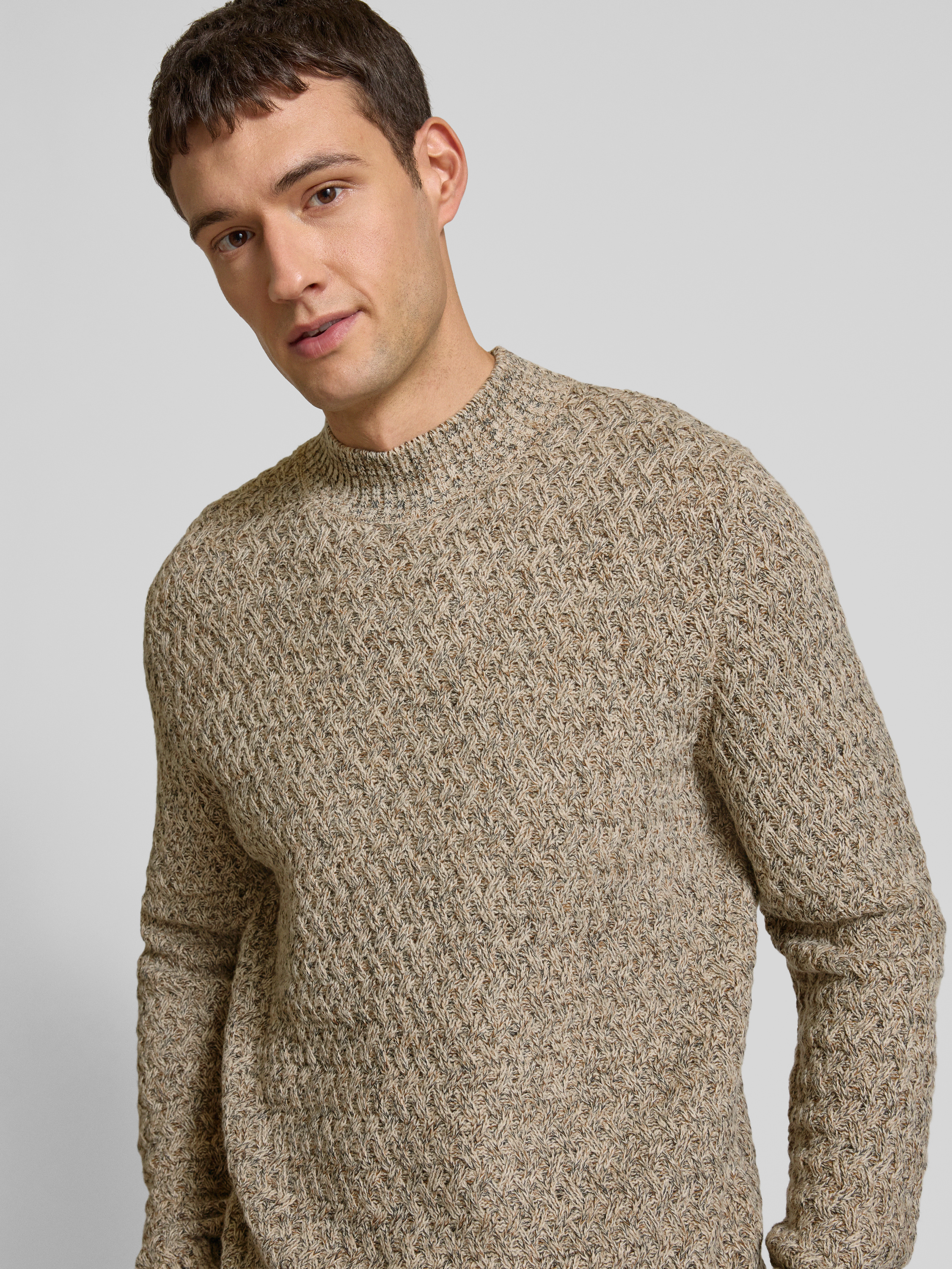 Gebreide pullover met structuurmotief in beige