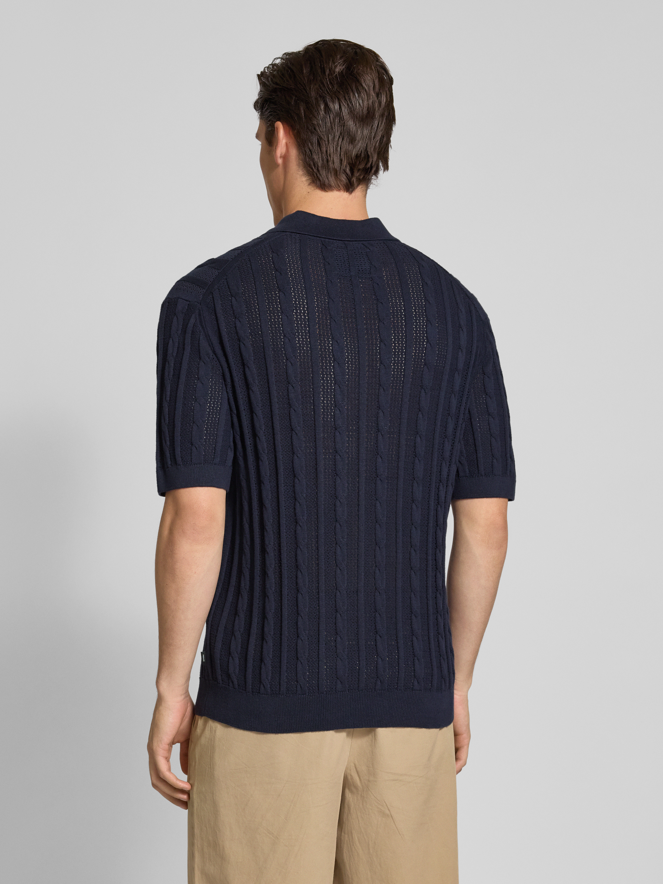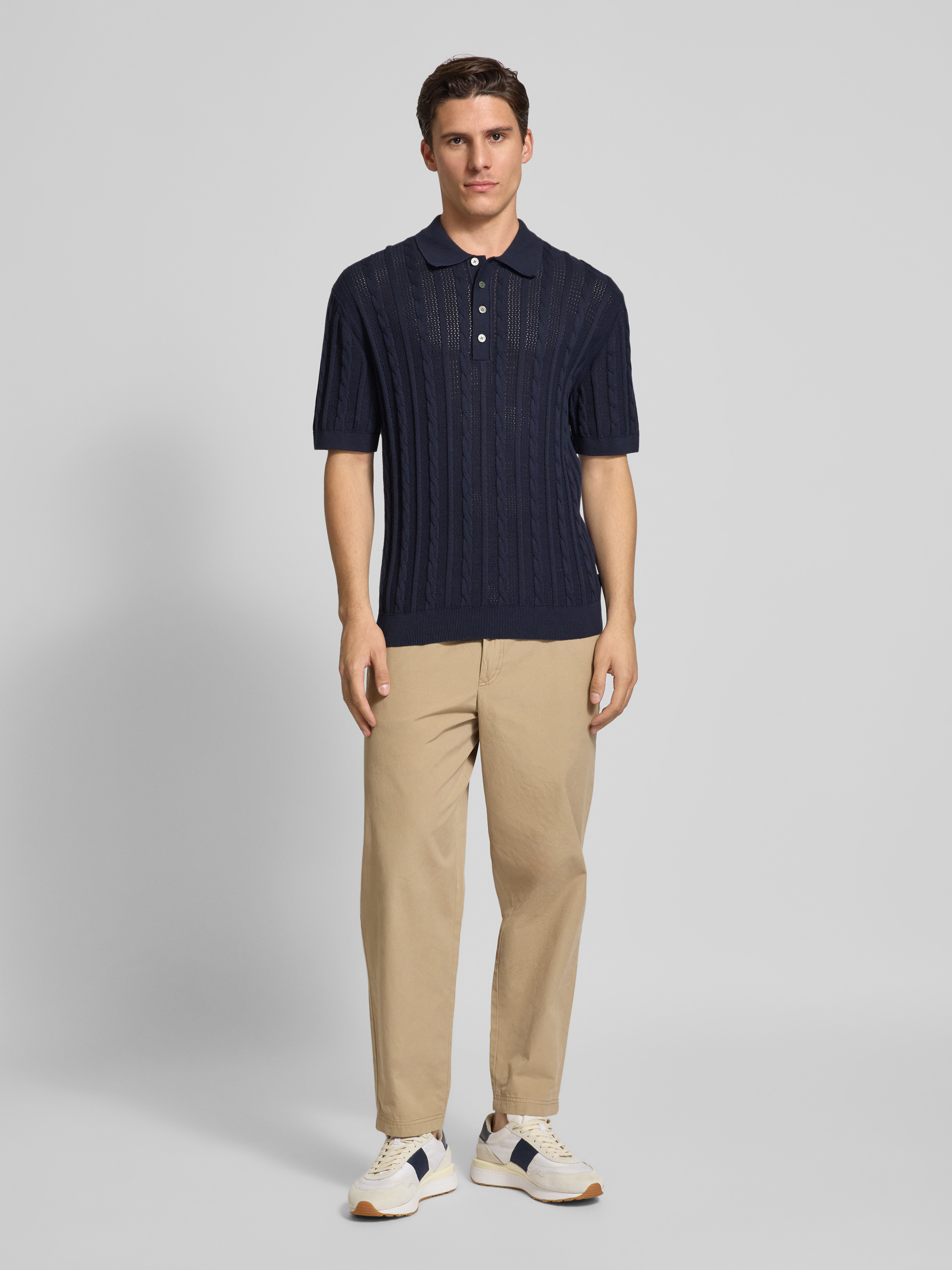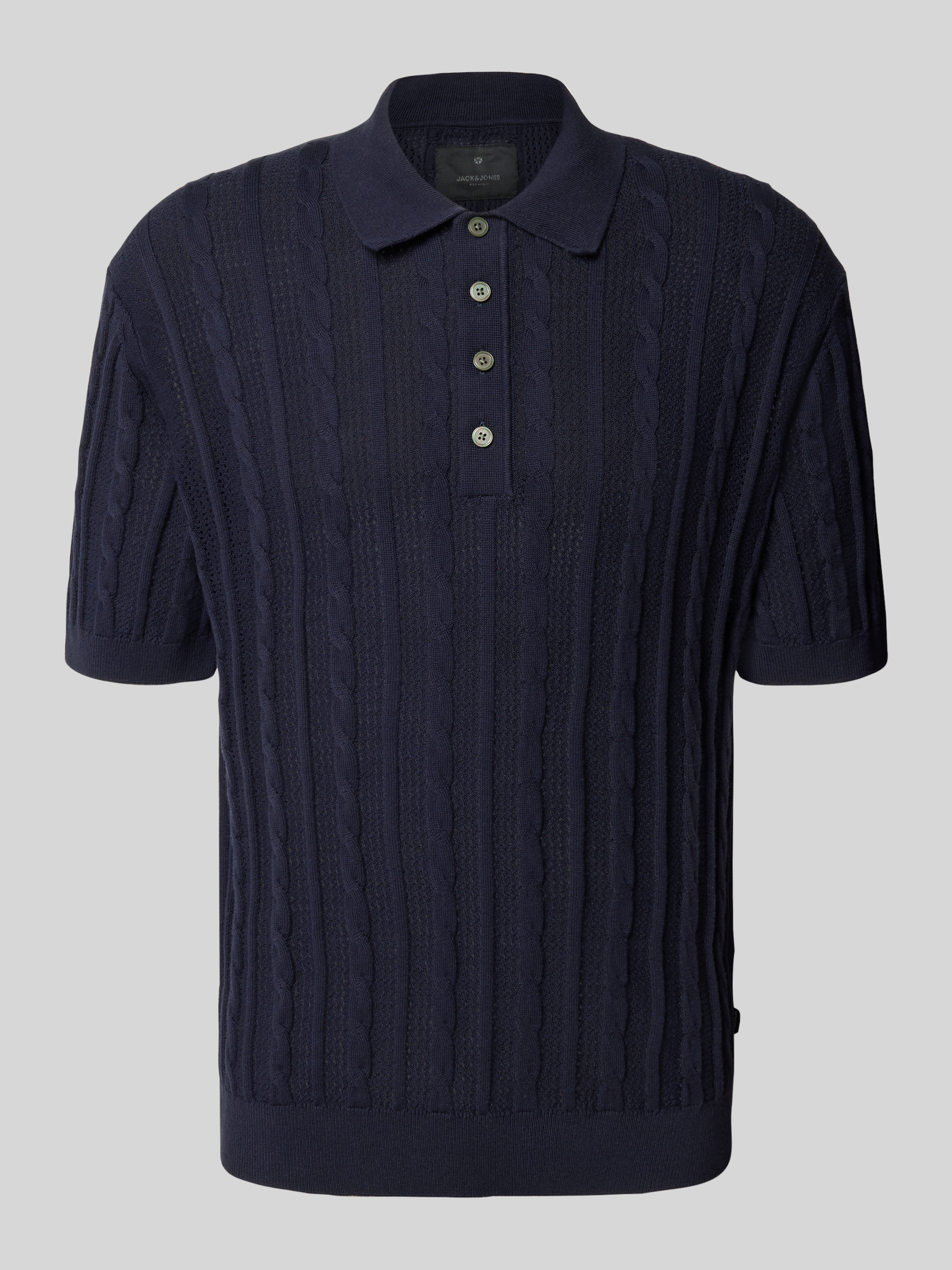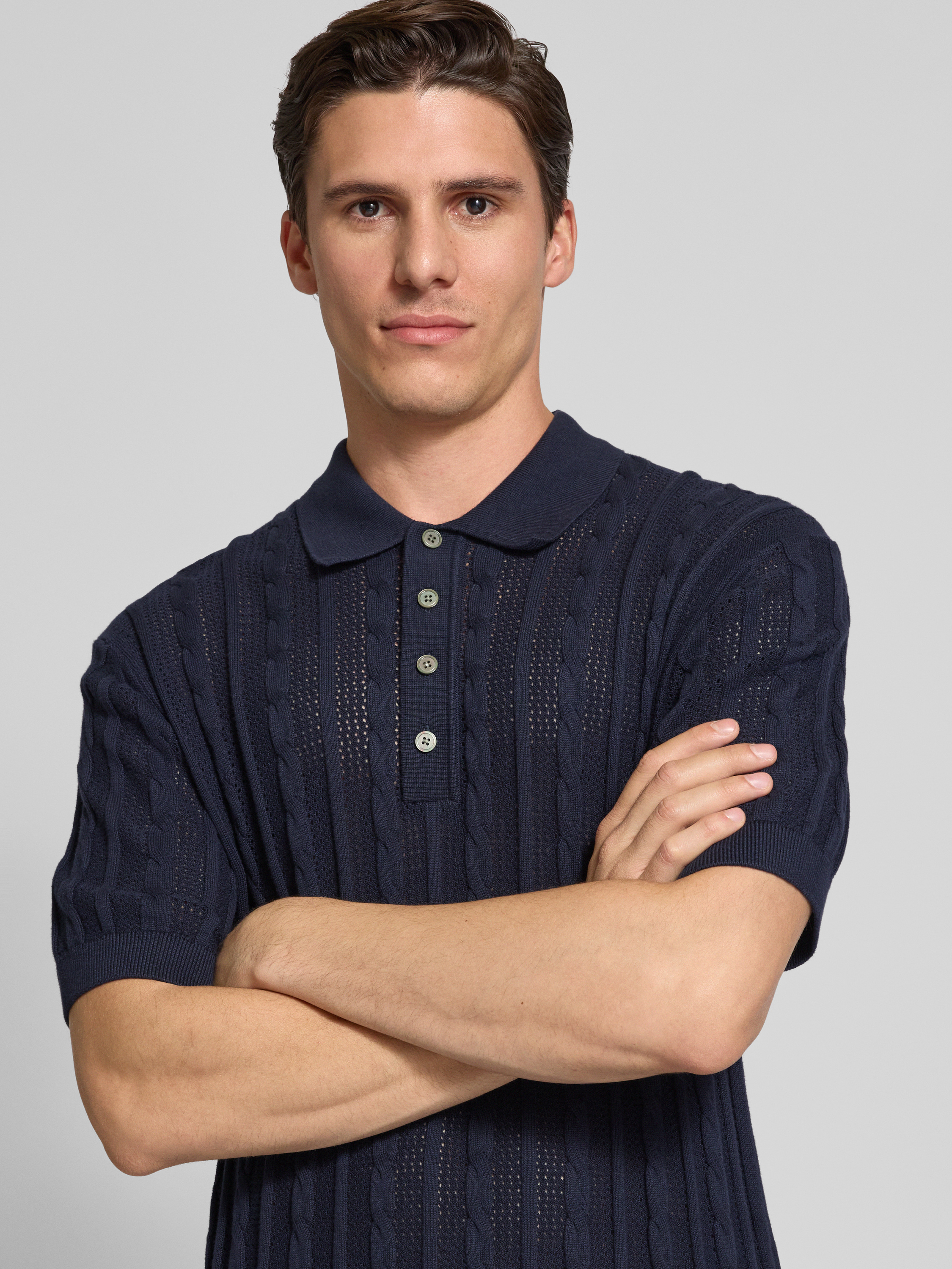 Poloshirt in gebreide look, model 'MASON' in donkerblauw