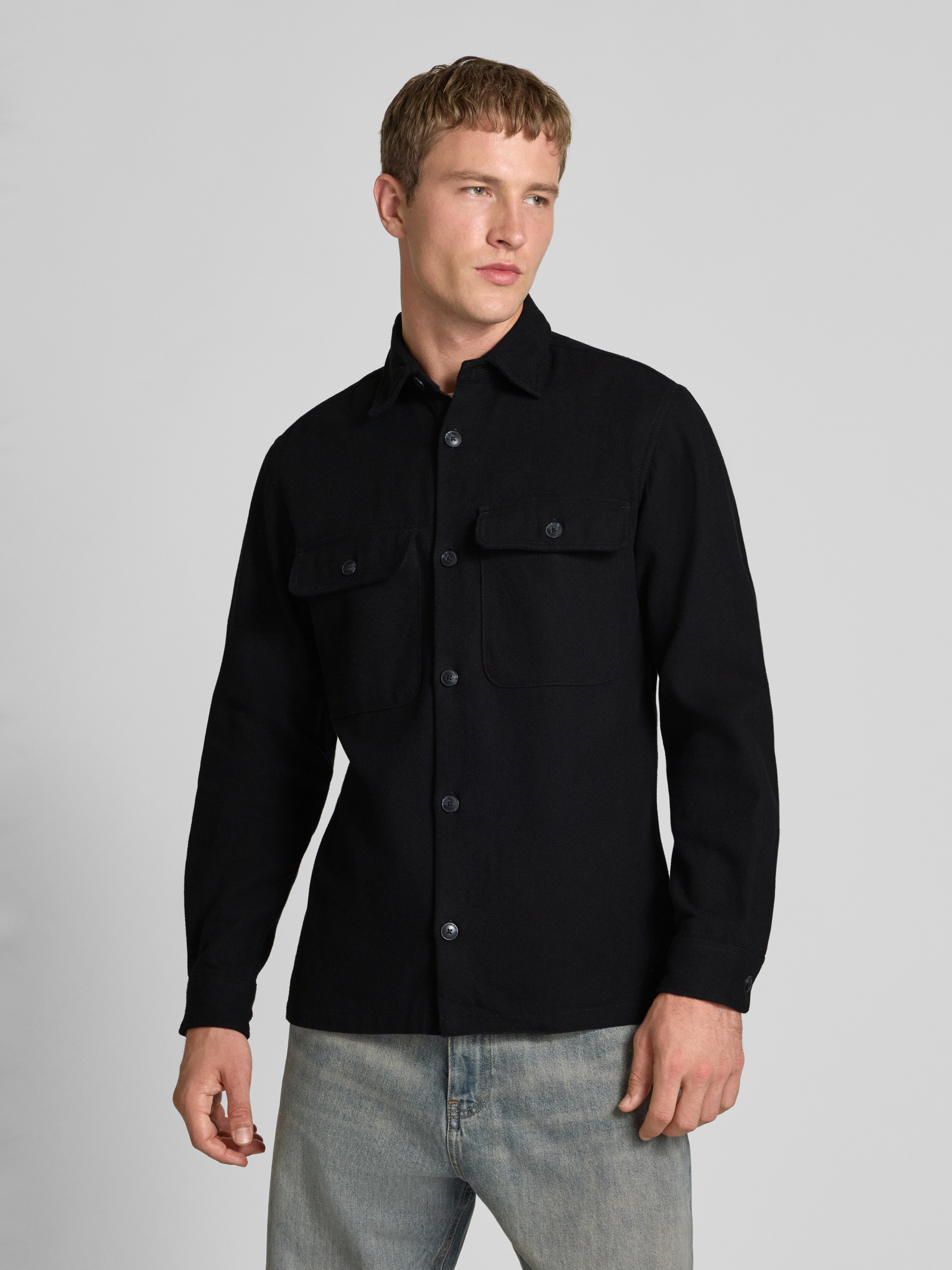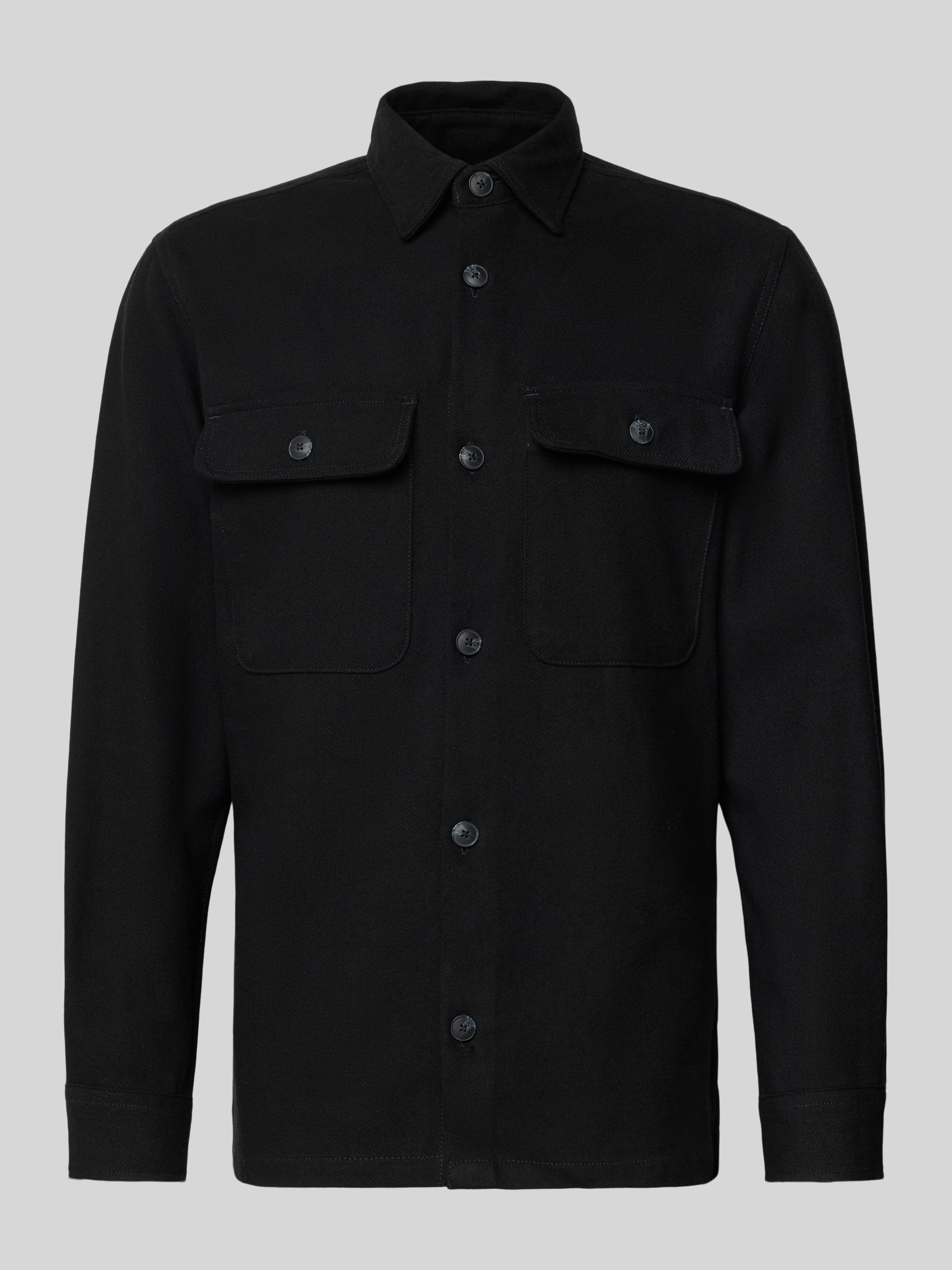 Regular fit vrijetijdsoverhemd met borstzakken, model 'Rayle' in zwart