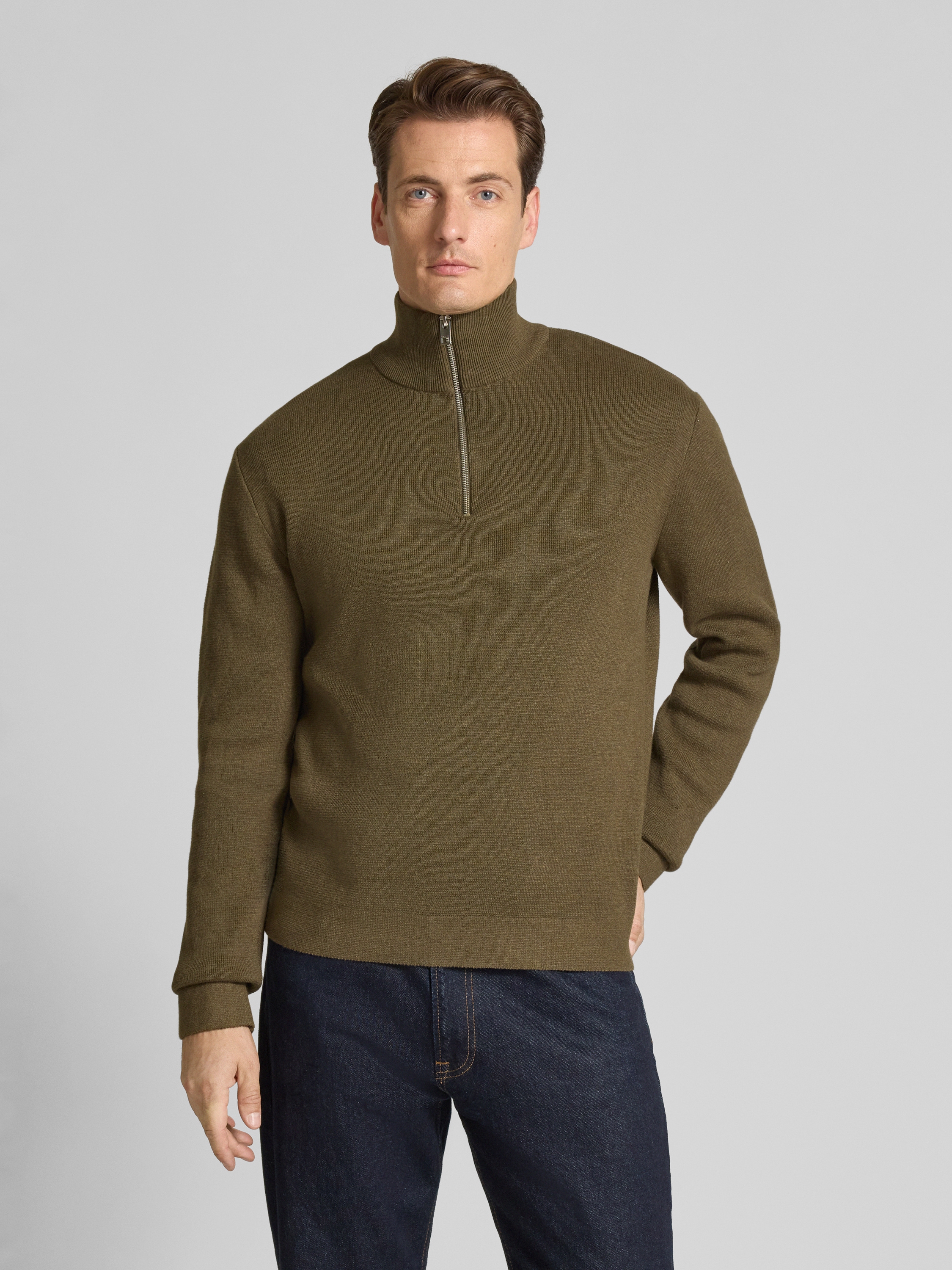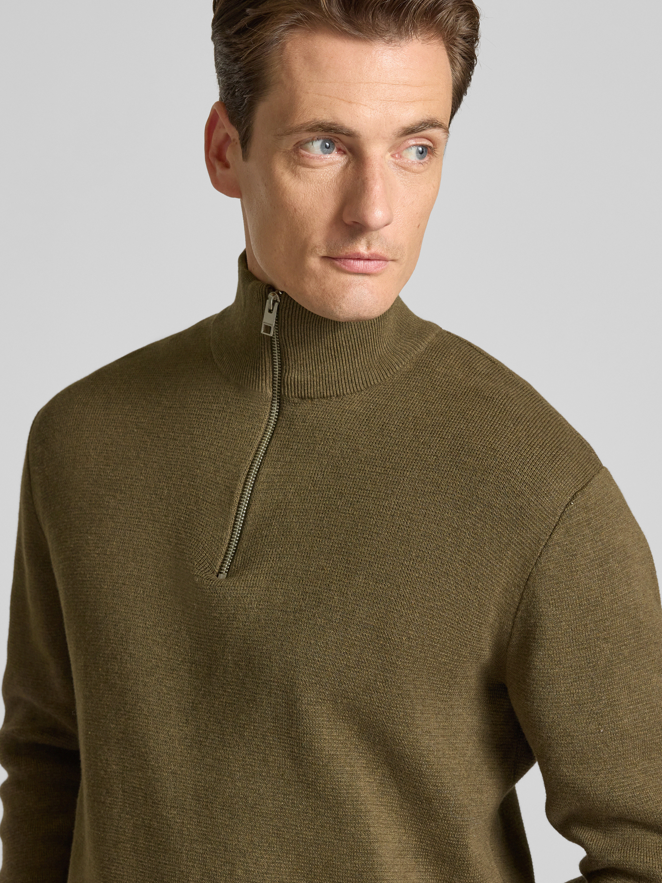 Schipperstrui met labeldetail, model 'MILANO' in middenbruin
