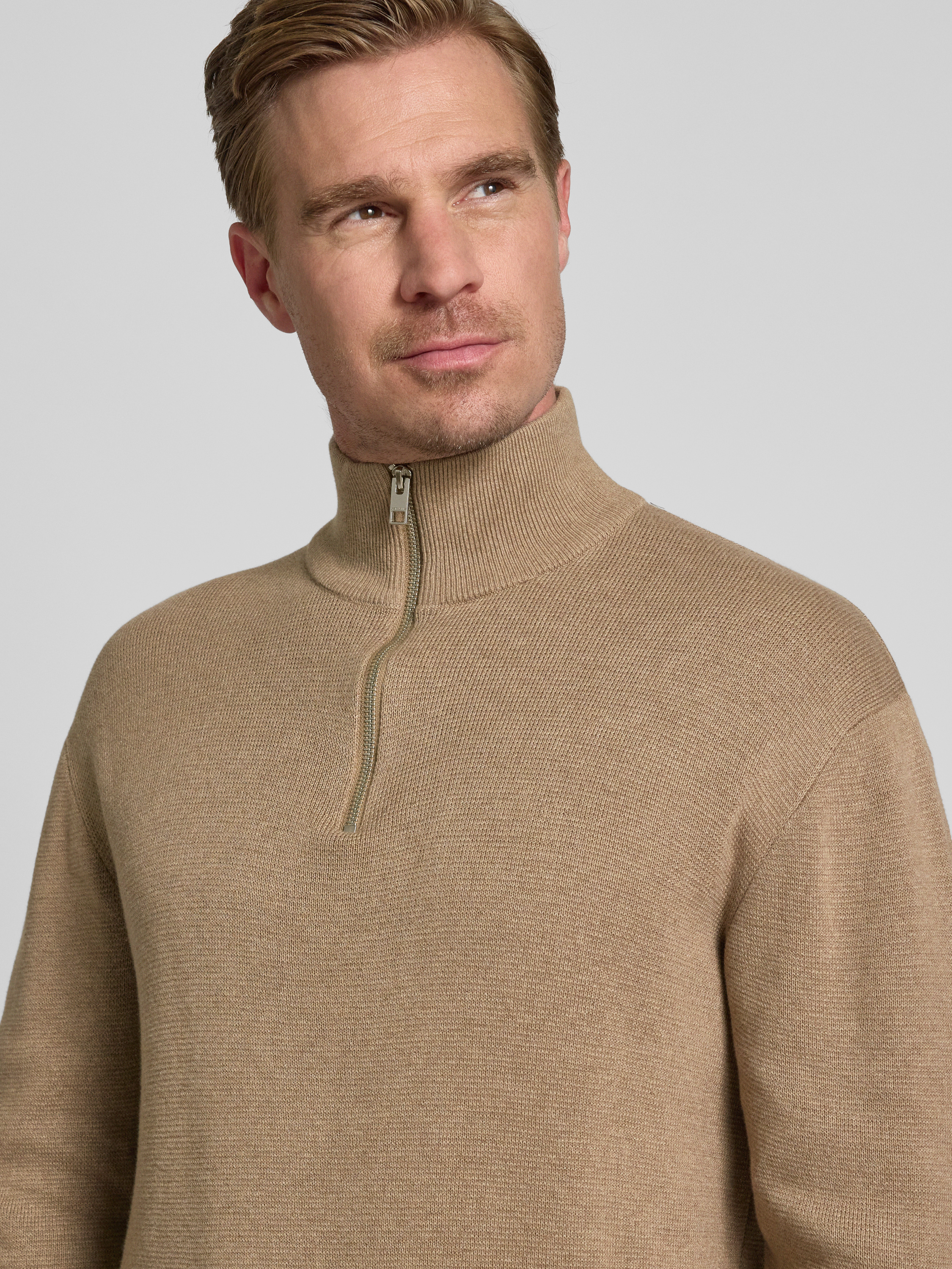 Schipperstrui met labeldetail, model 'MILANO' in taupe gemêleerd