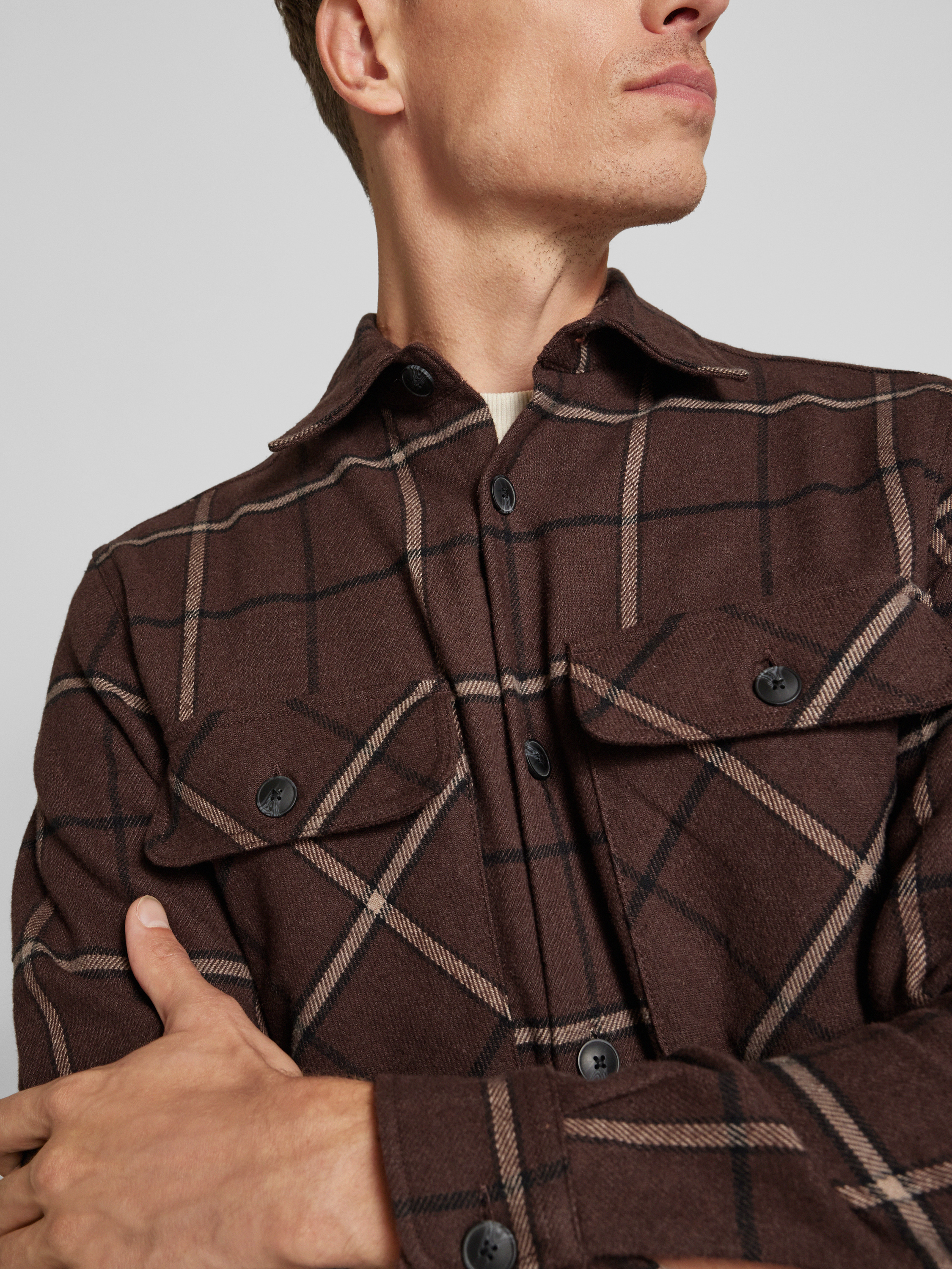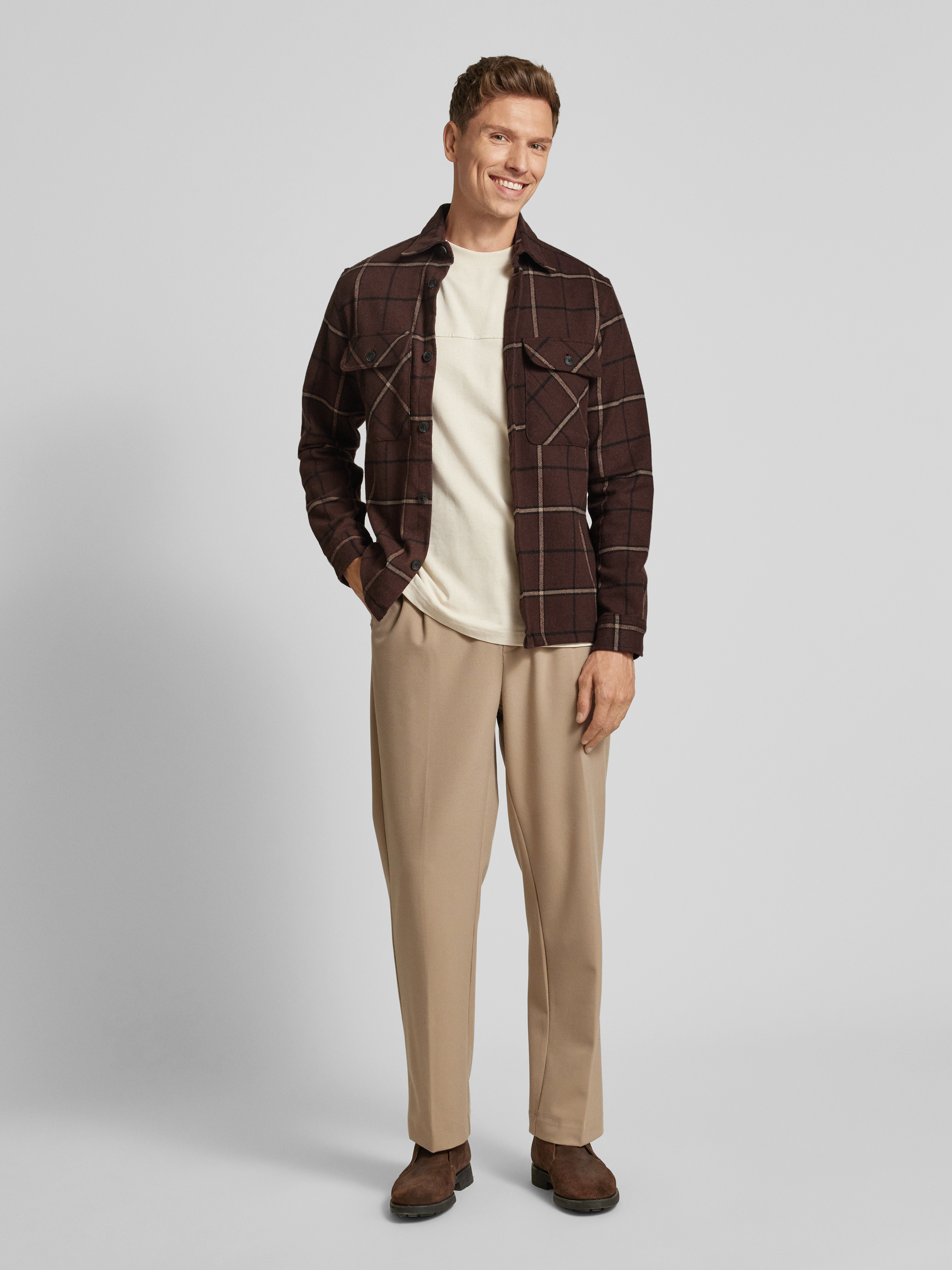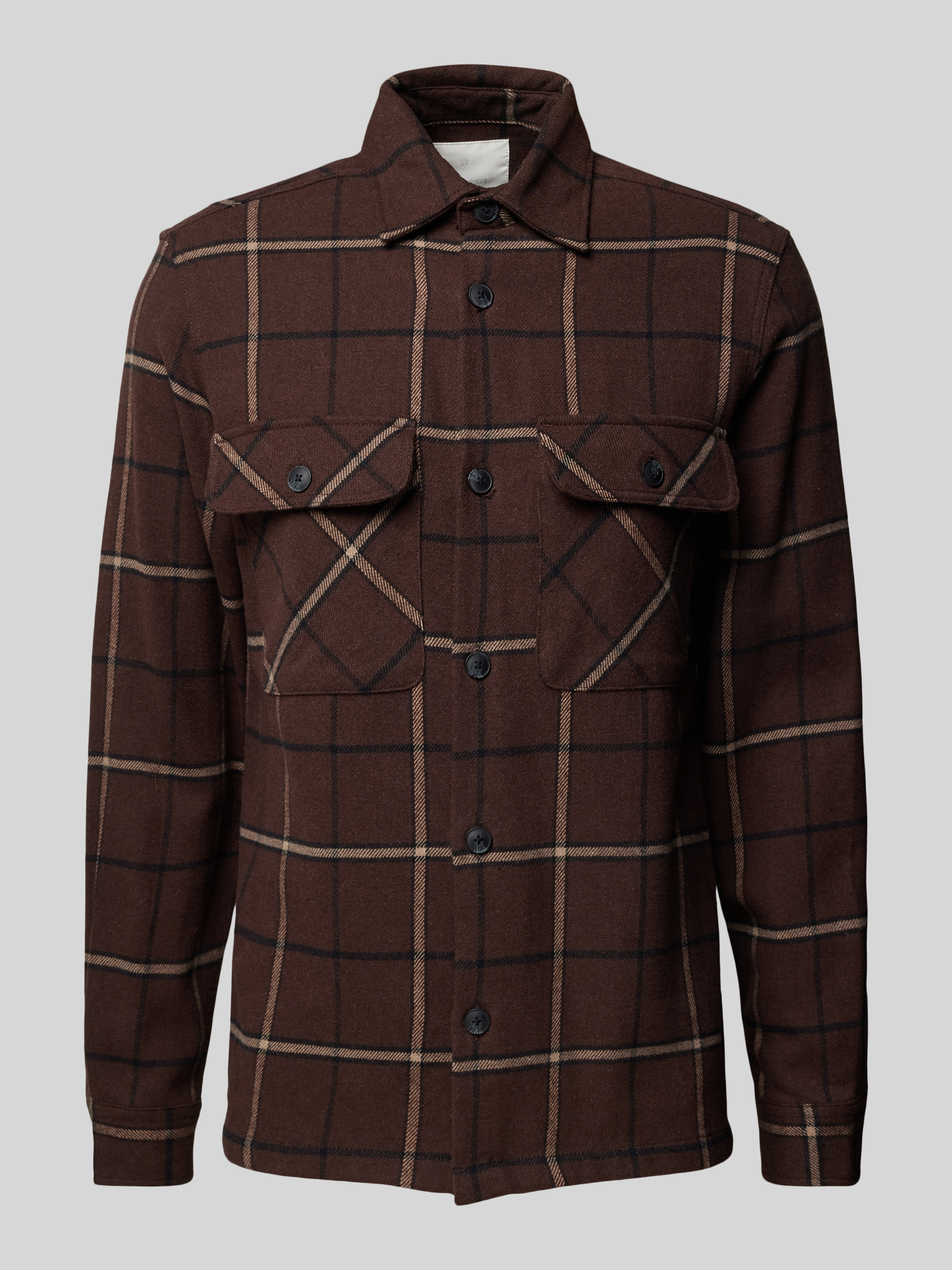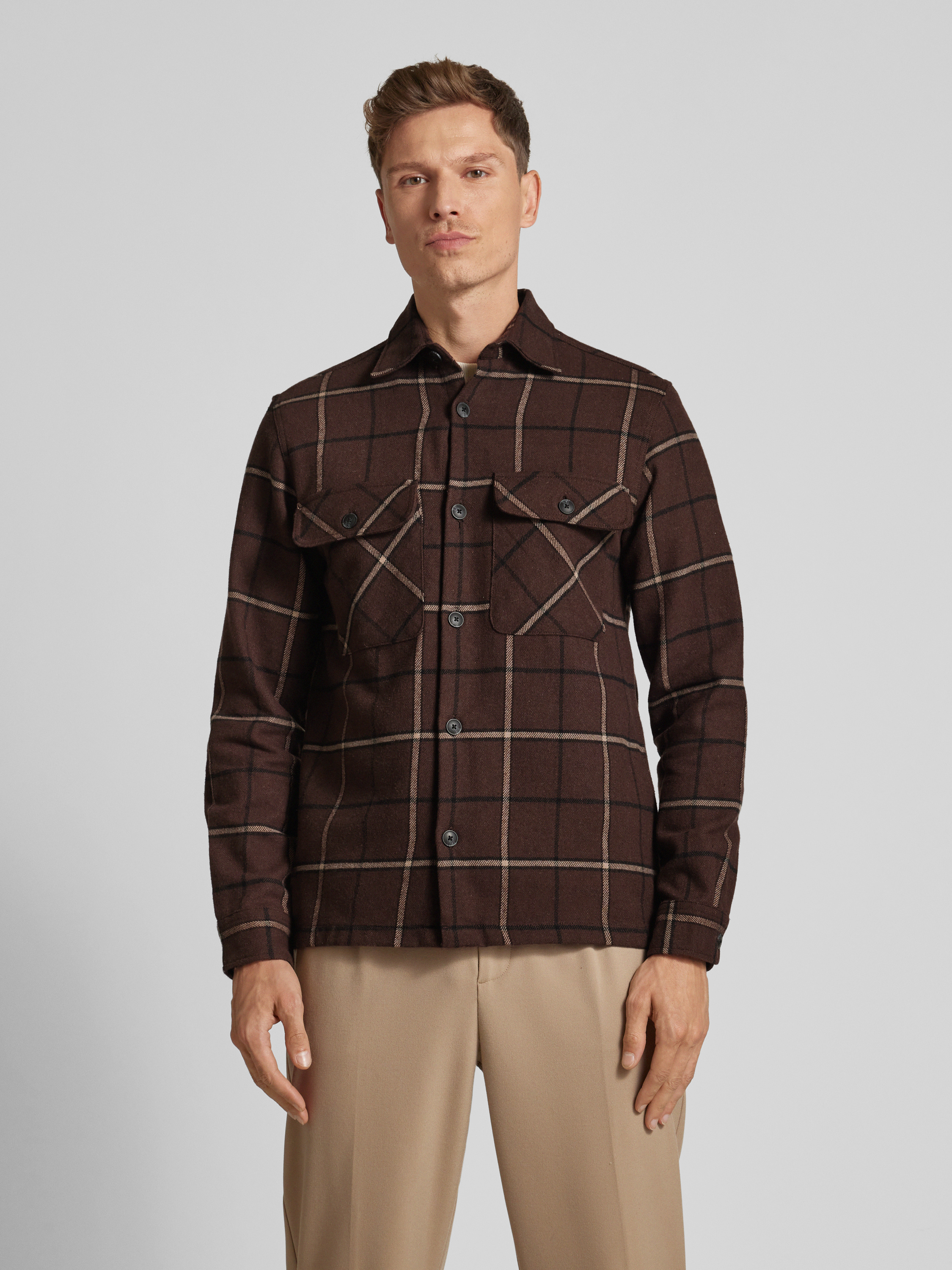 Slim fit overhemdjack met kentkraag, model 'RAYMOND' in donkerbruin