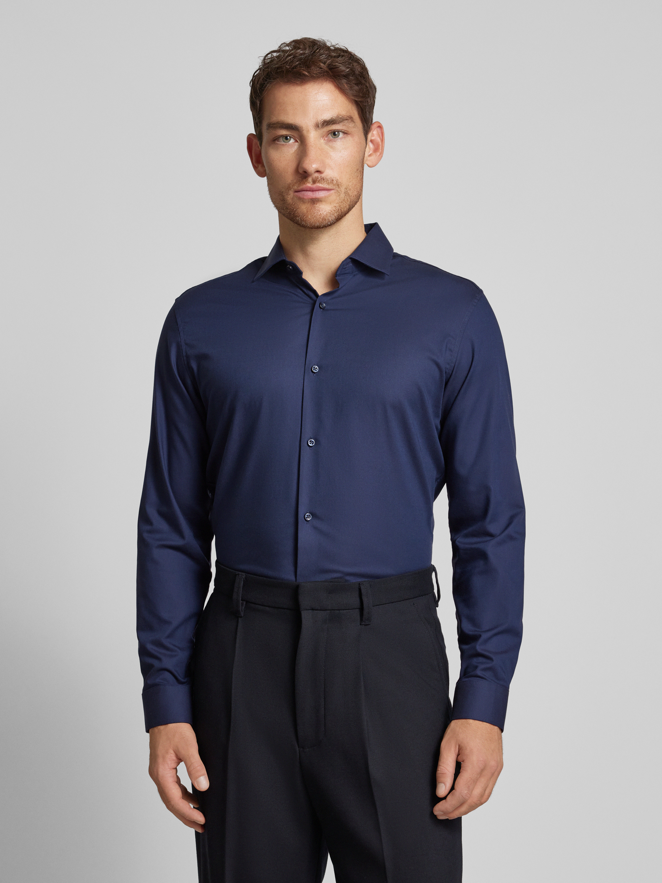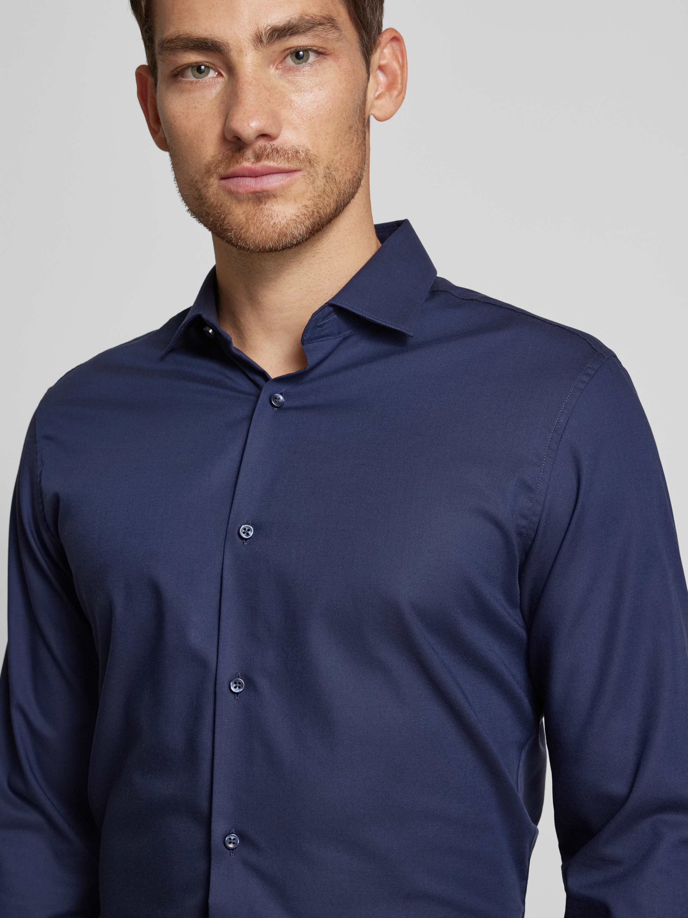 Jack & Jones PremiumSlim fit vrijetijdsoverhemd met kentkraag, model 'PARKER' in marineblauw