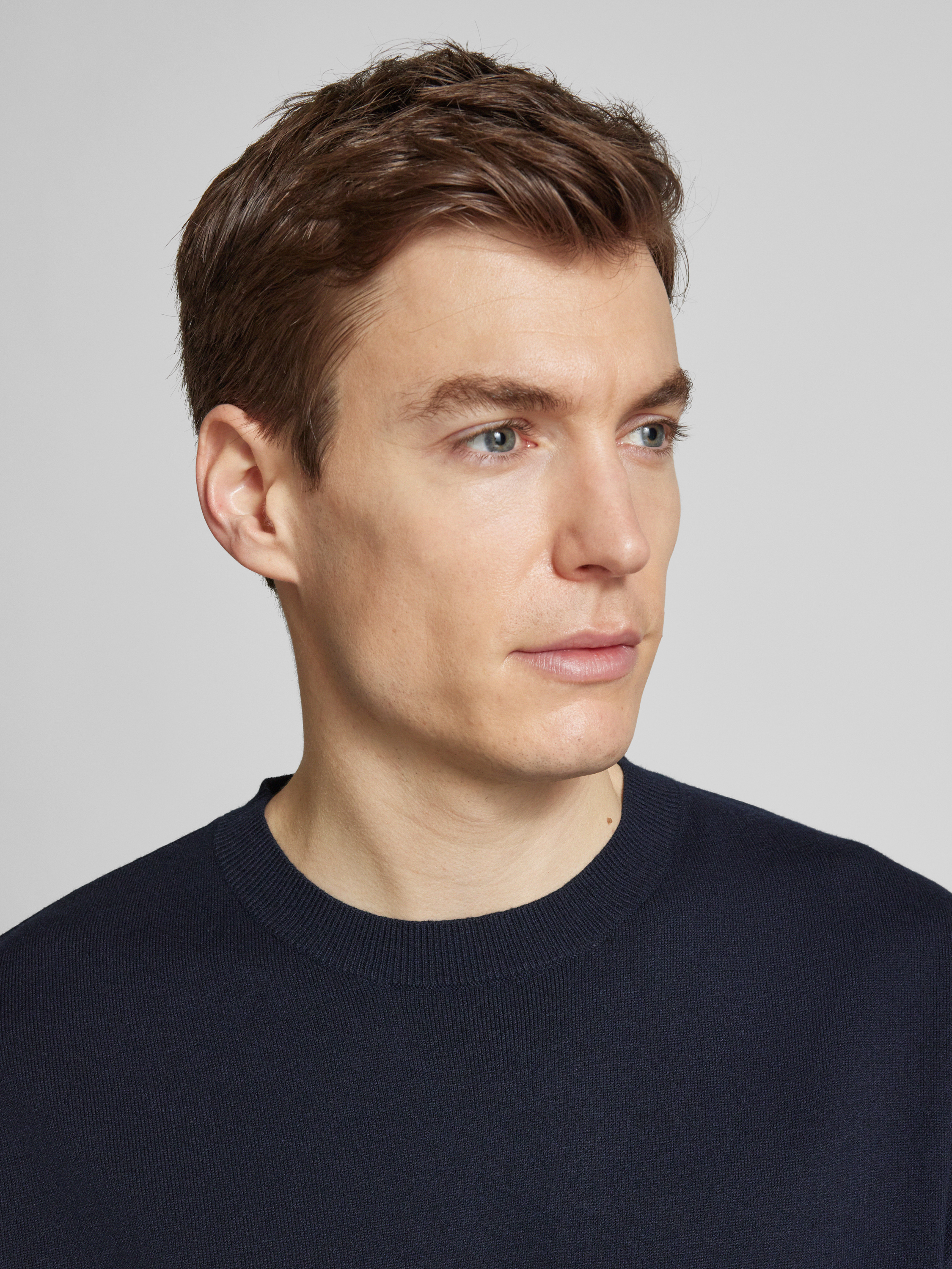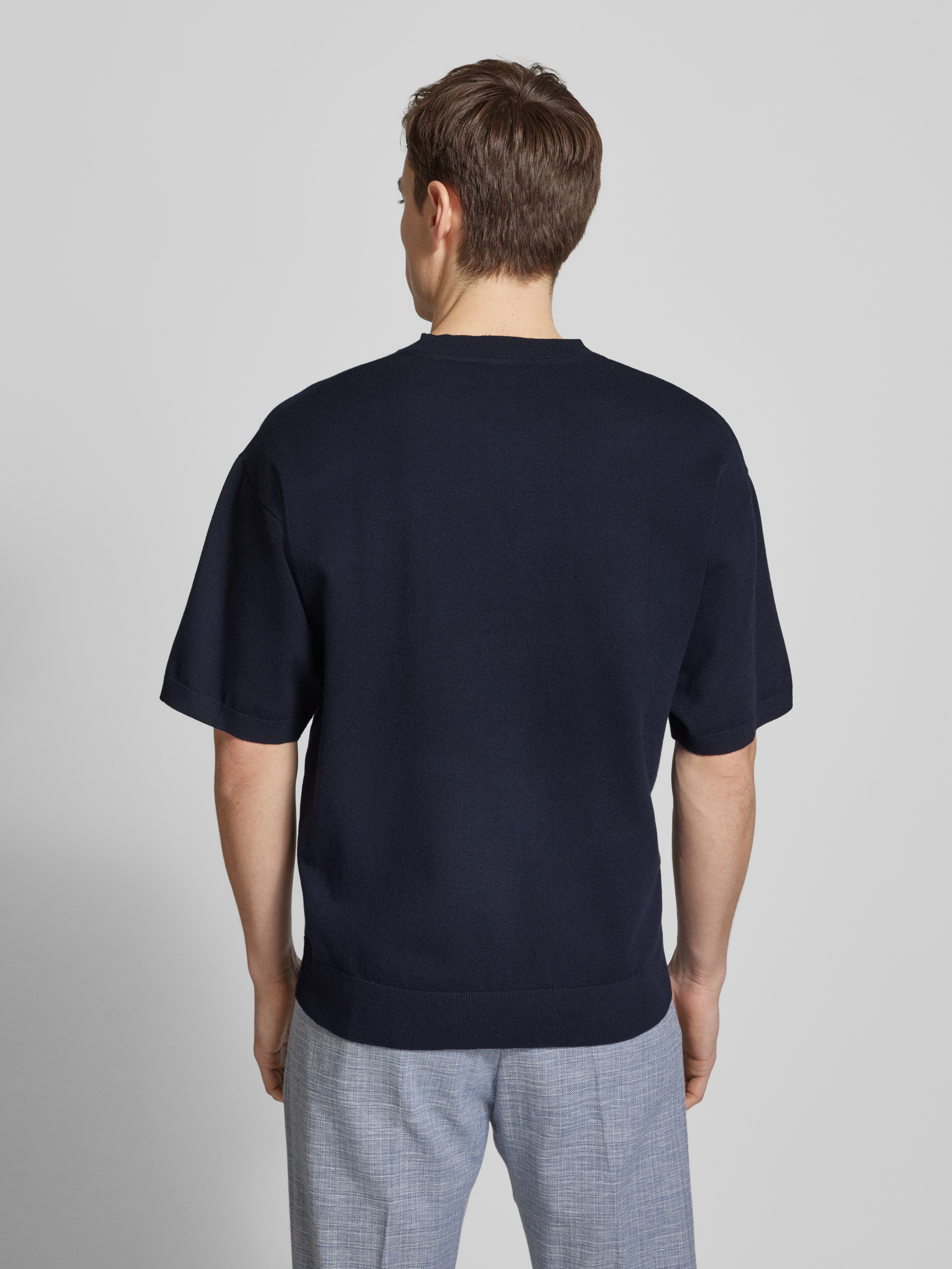 T-shirt in gebreide look met ribboorden in donkerblauw