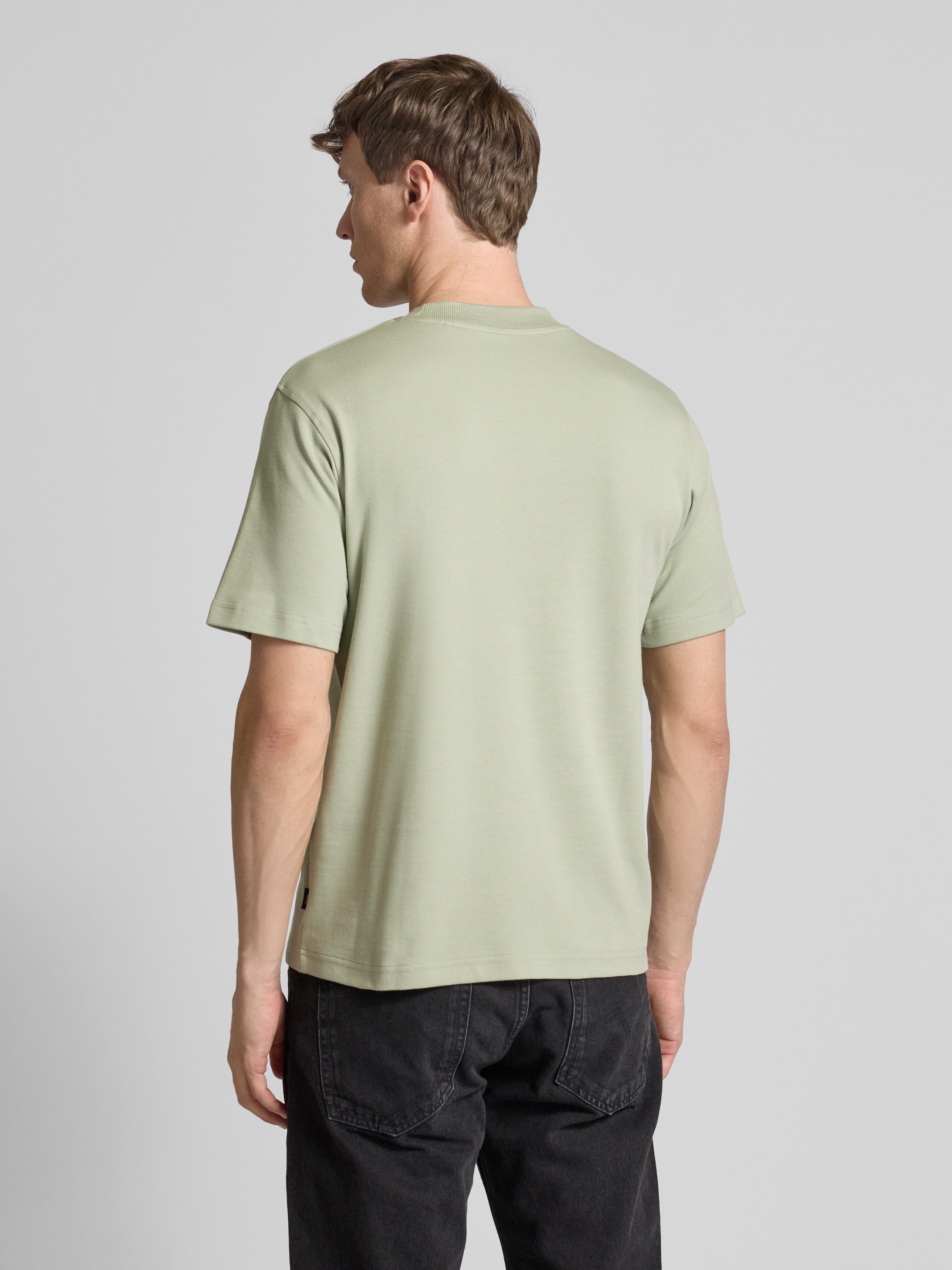 T-shirt met labelprint, model 'LACHAD' in lindegroen