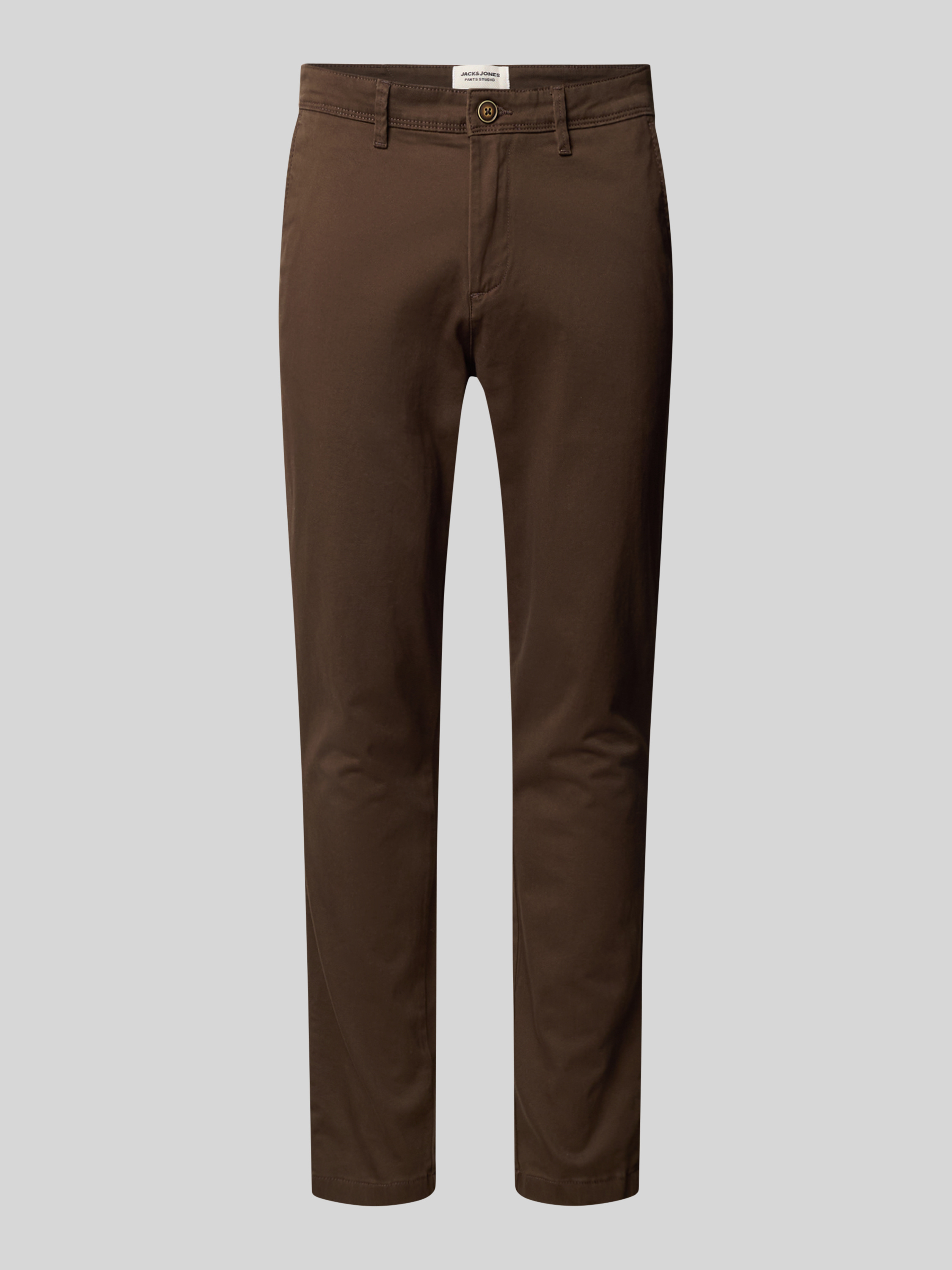 Regular fit chino met stretch, model 'MARCO' in donkerbruin