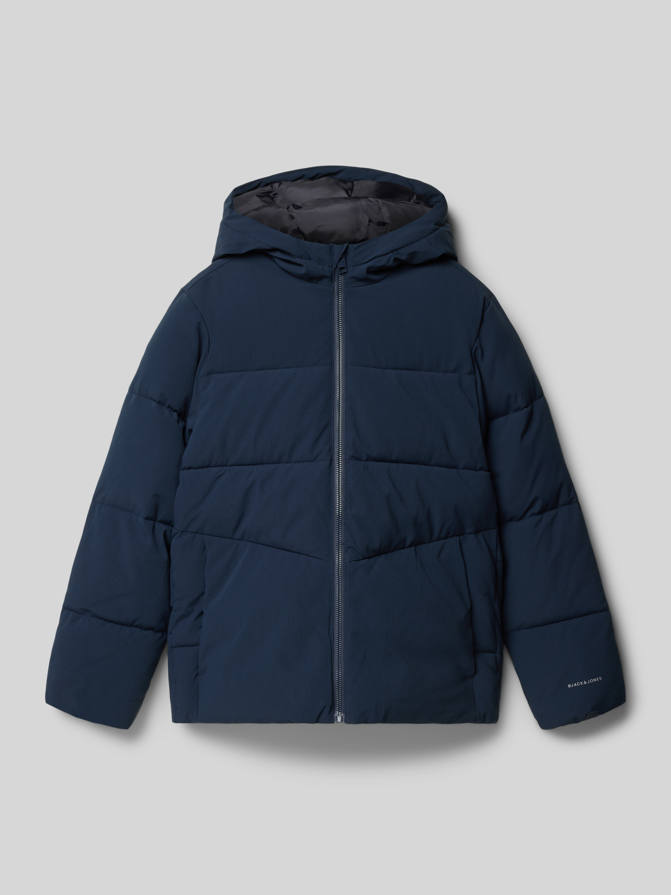 Regular fit gewatteerd jack met logoprint, model 'Global' in marineblauw