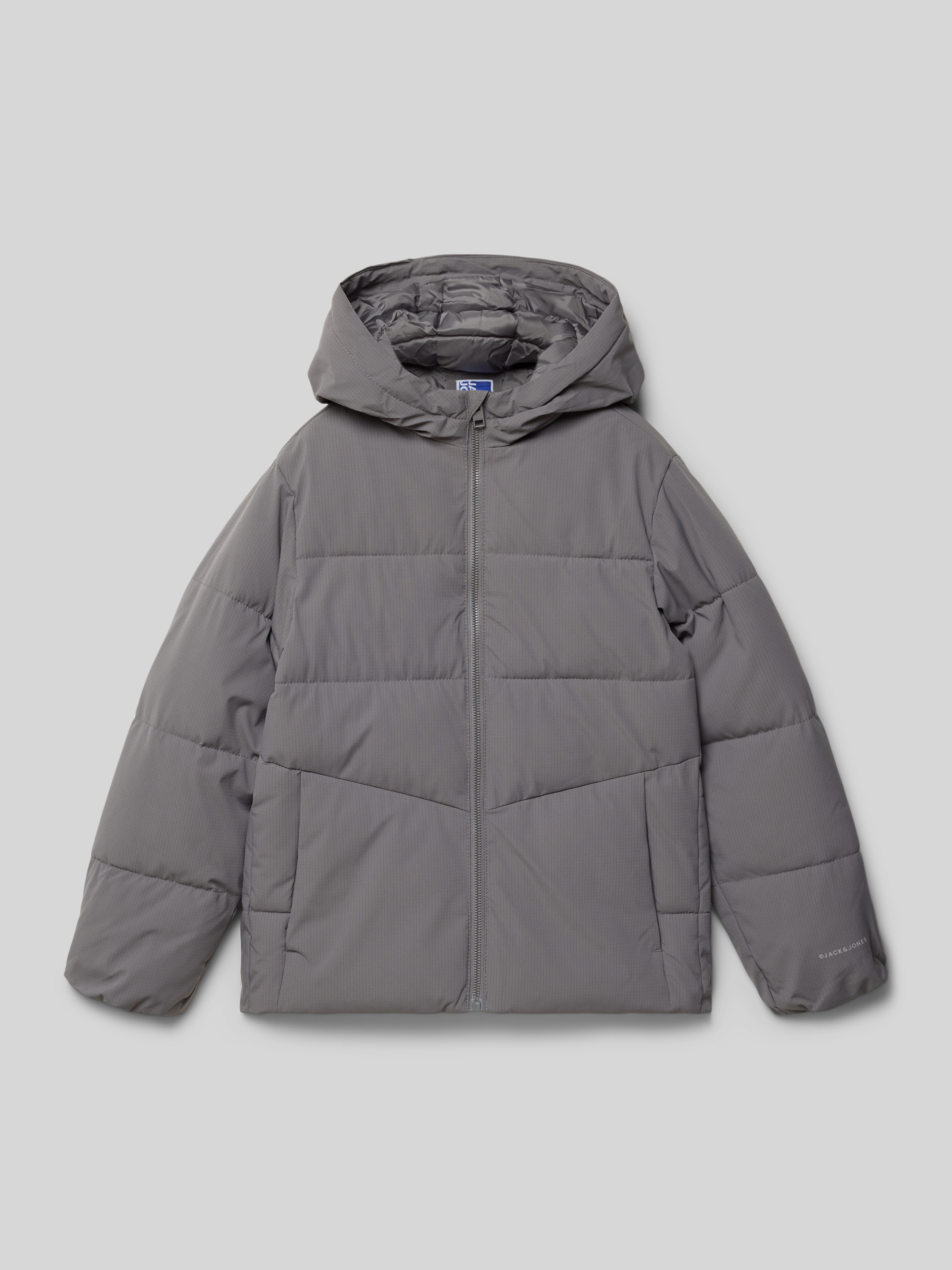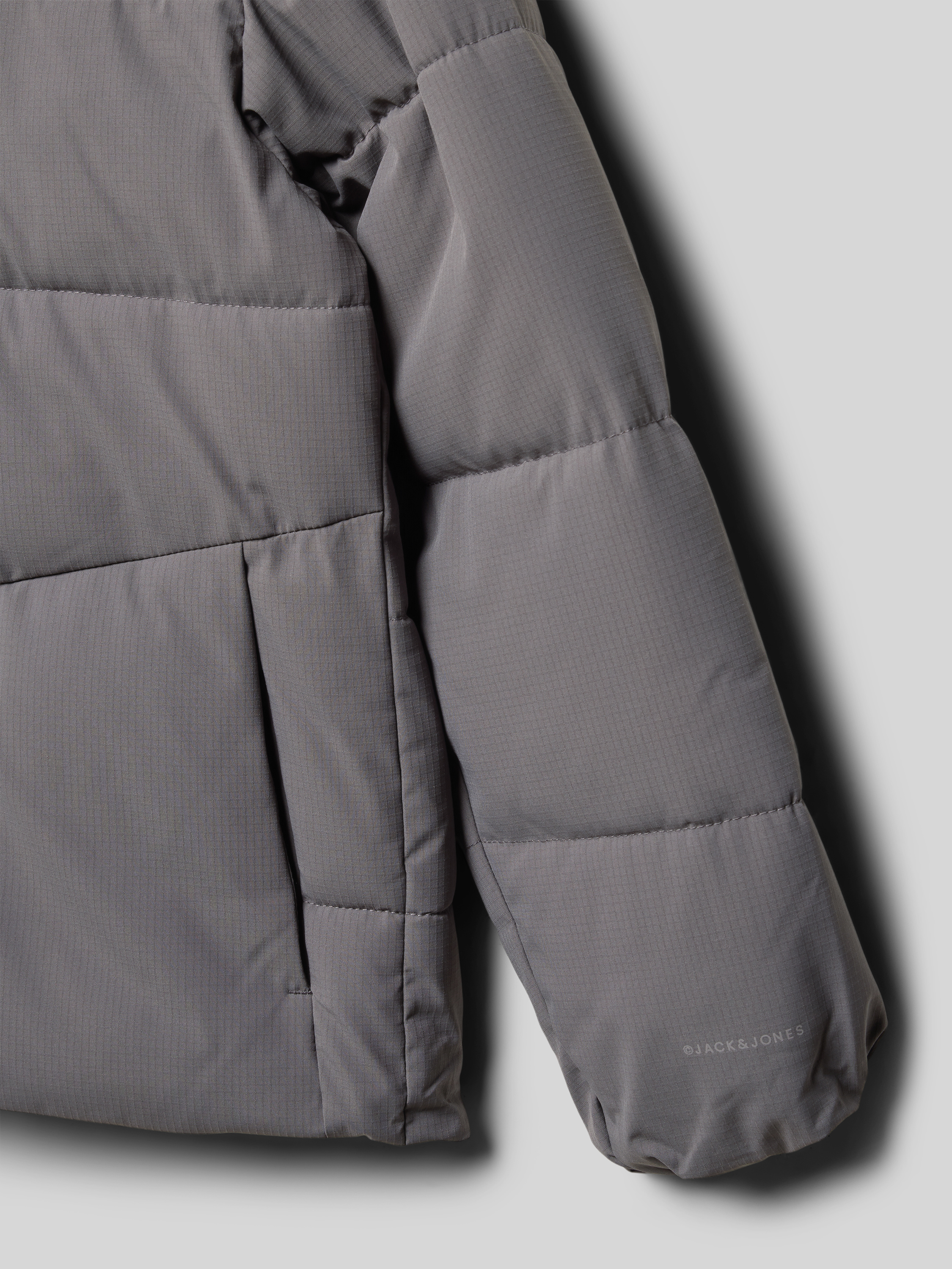 Regular fit gewatteerd jack met logoprint, model 'Global' in middengrijs