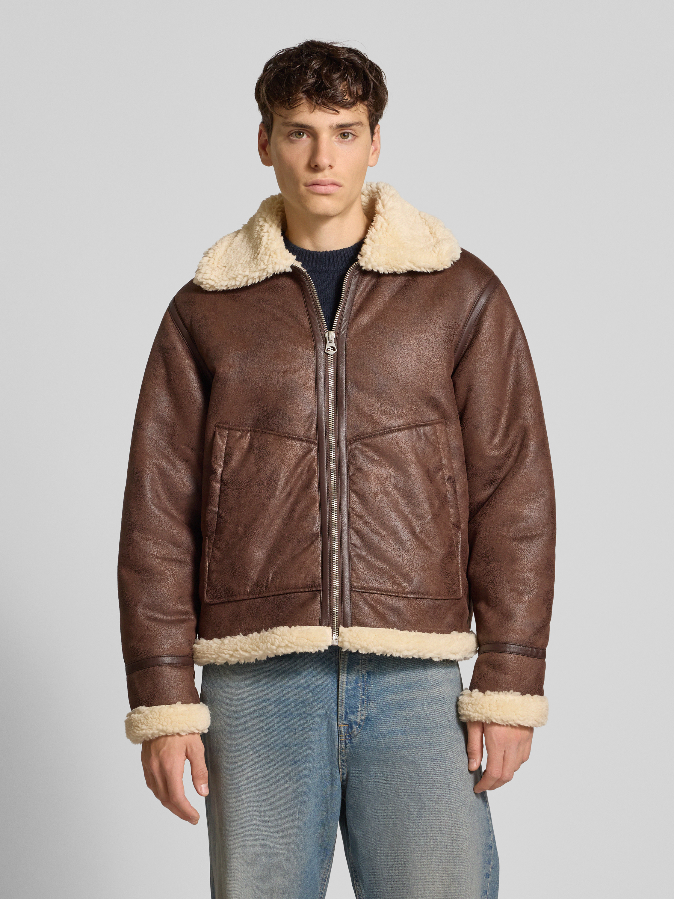 Regular fit jack in leerlook, model 'Liverpool' in donkerbruin