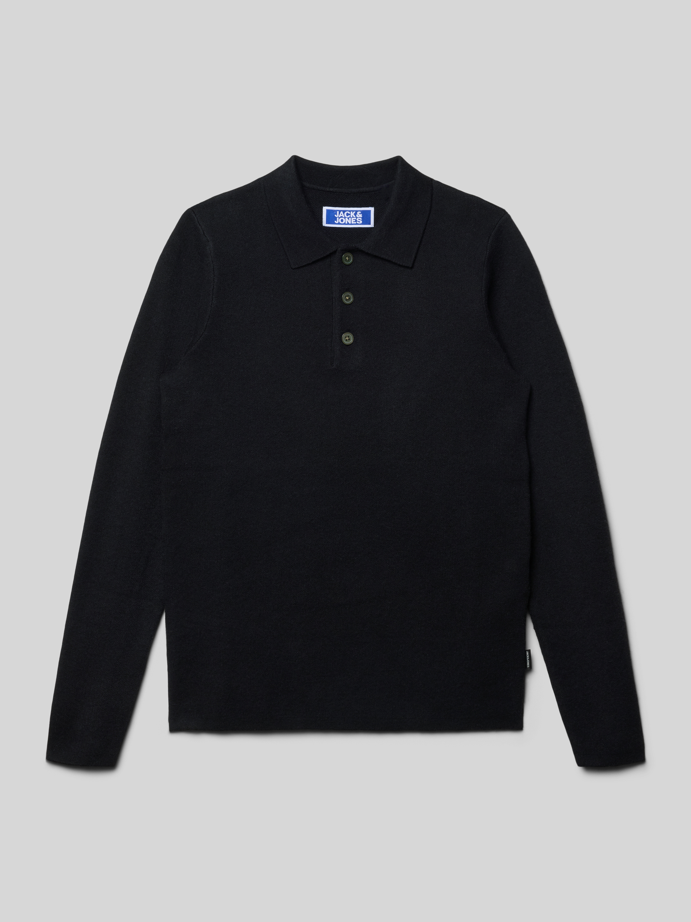 Regular fit poloshirt in gebreide look, model 'Bradfort' in zwart