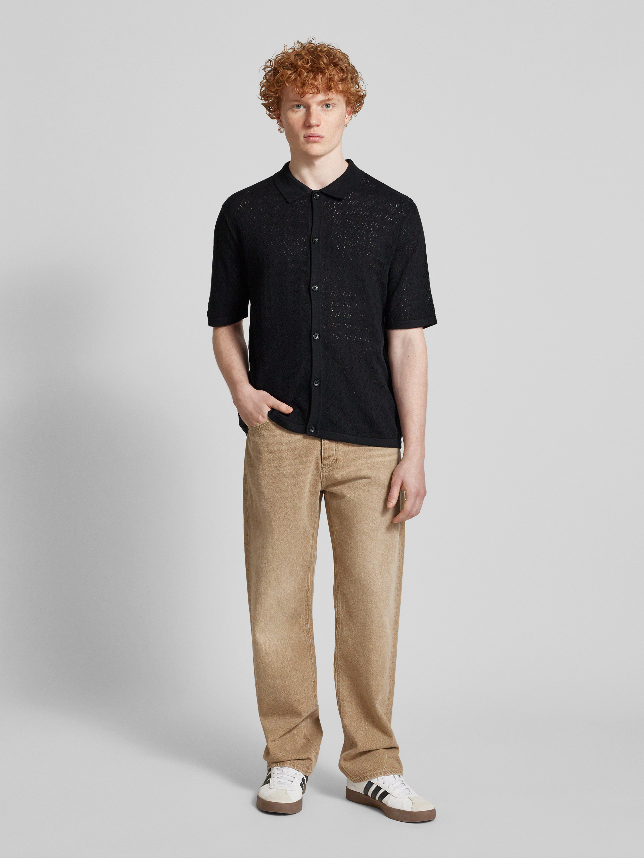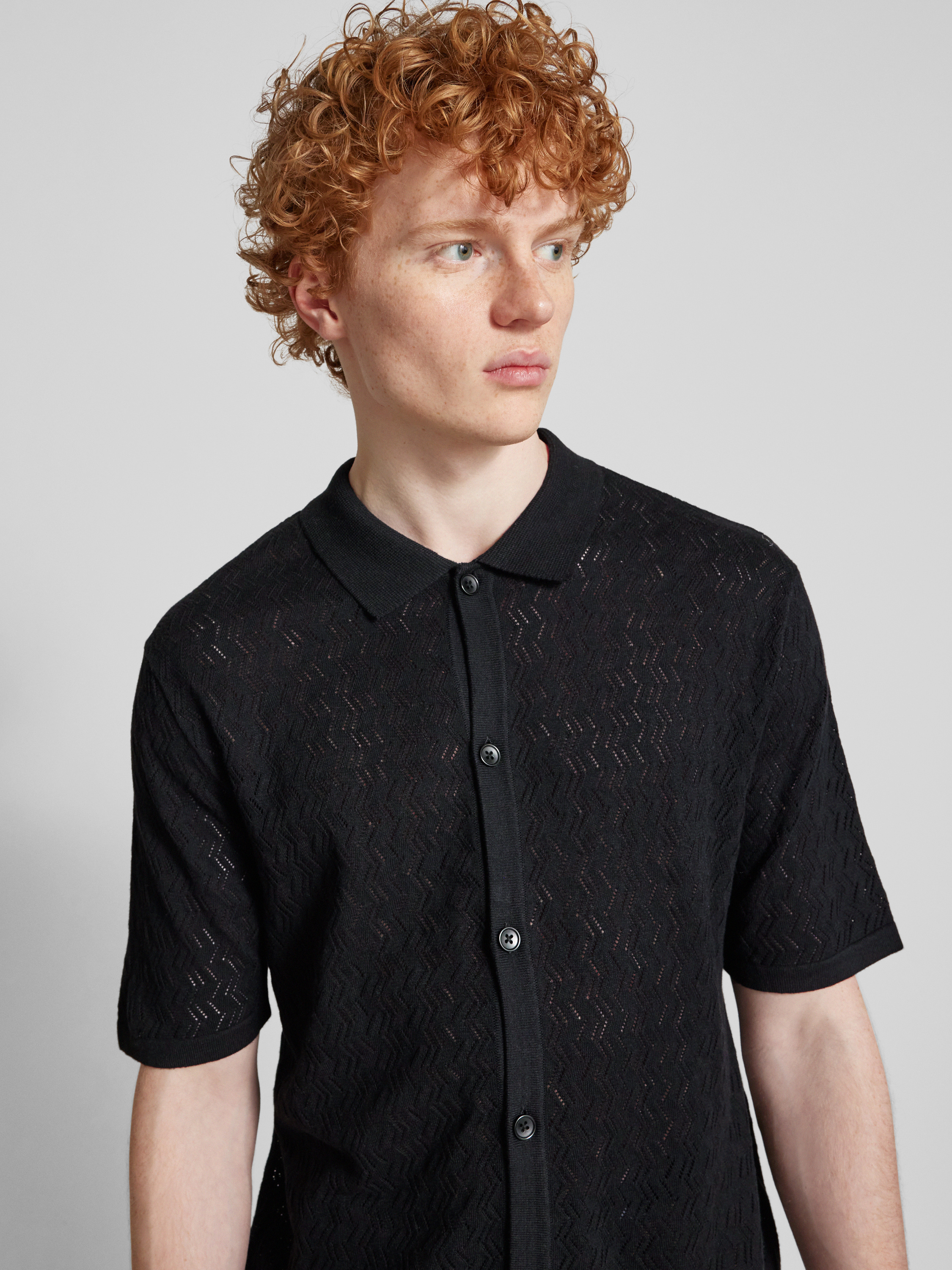 Regular fit vrijetijdsoverhemd met polokraag, model 'TYLER' in zwart