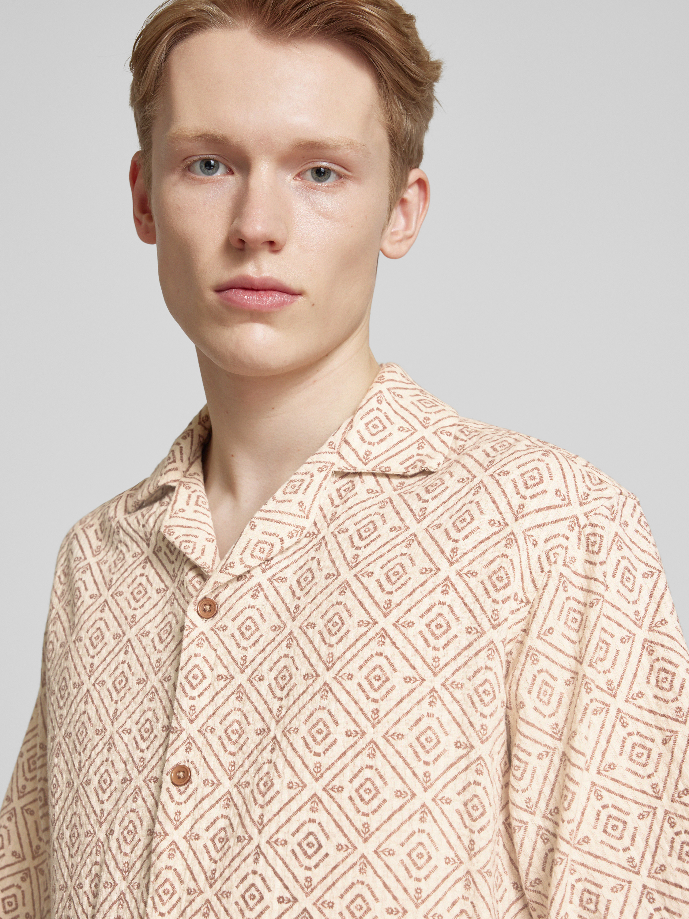 Regular fit vrijetijdsoverhemd met resortkraag, model 'BLUVINCENT' in zand