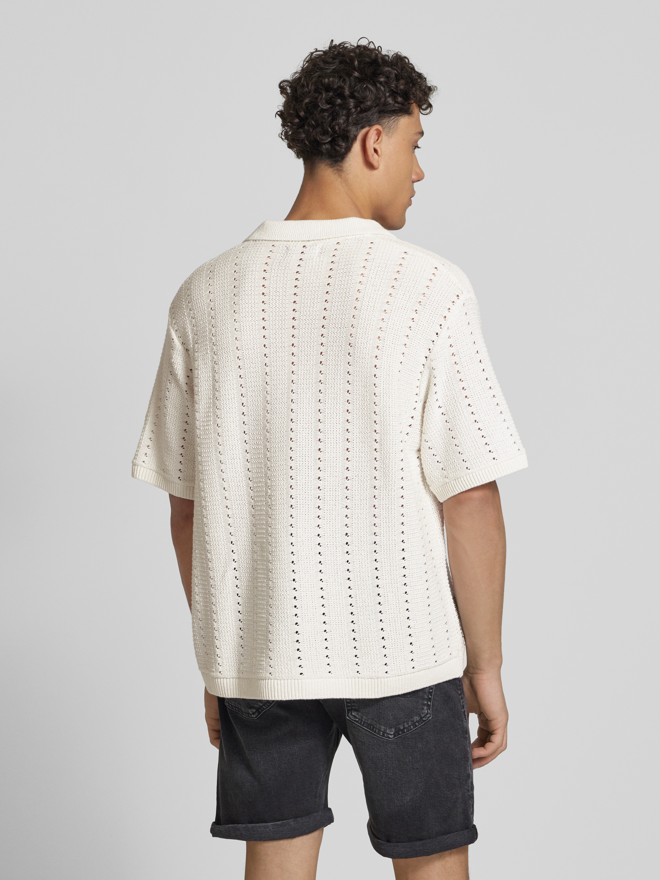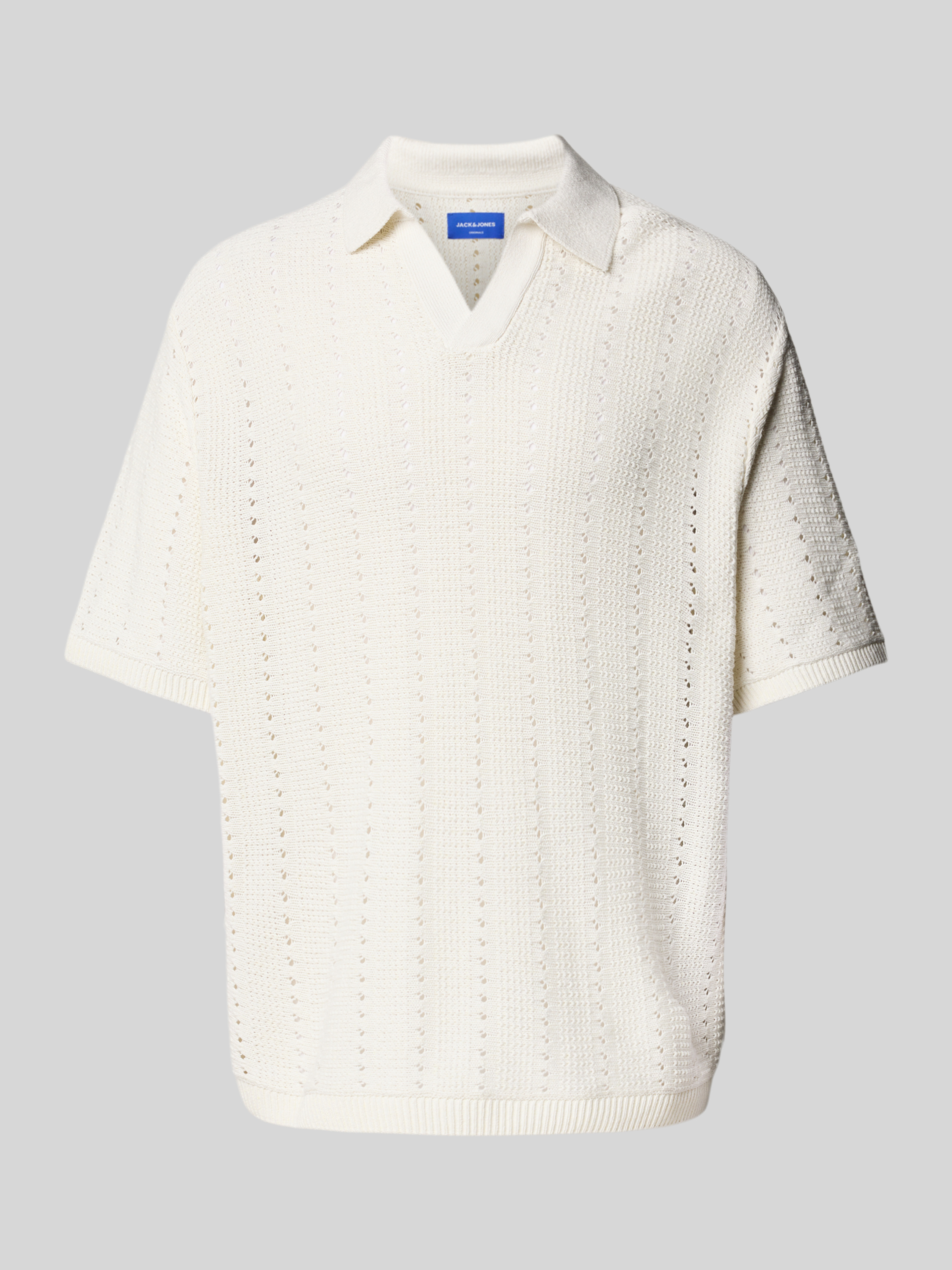 Relaxed fit poloshirt met ajourpatroon, model 'PAROS' in offwhite