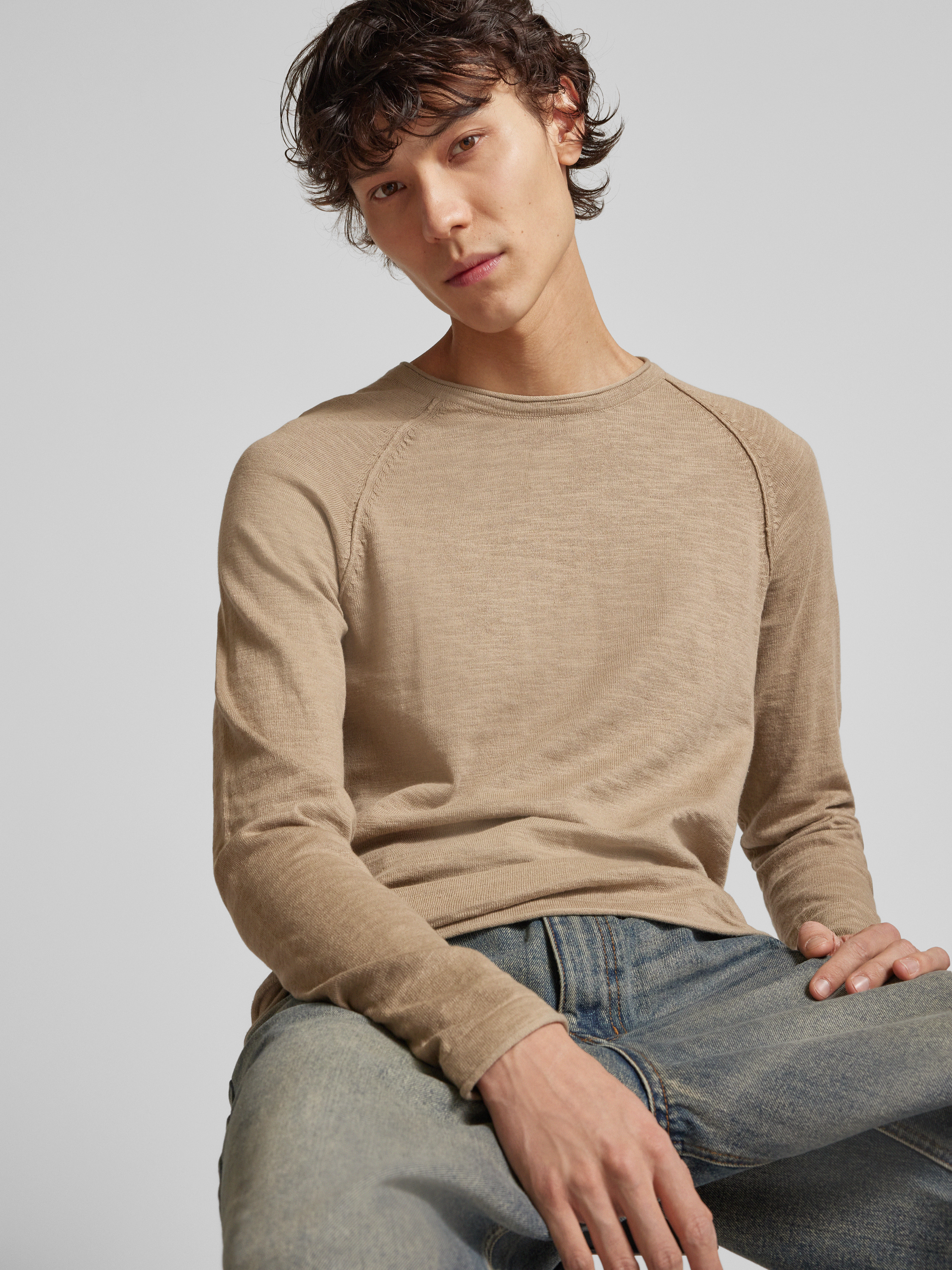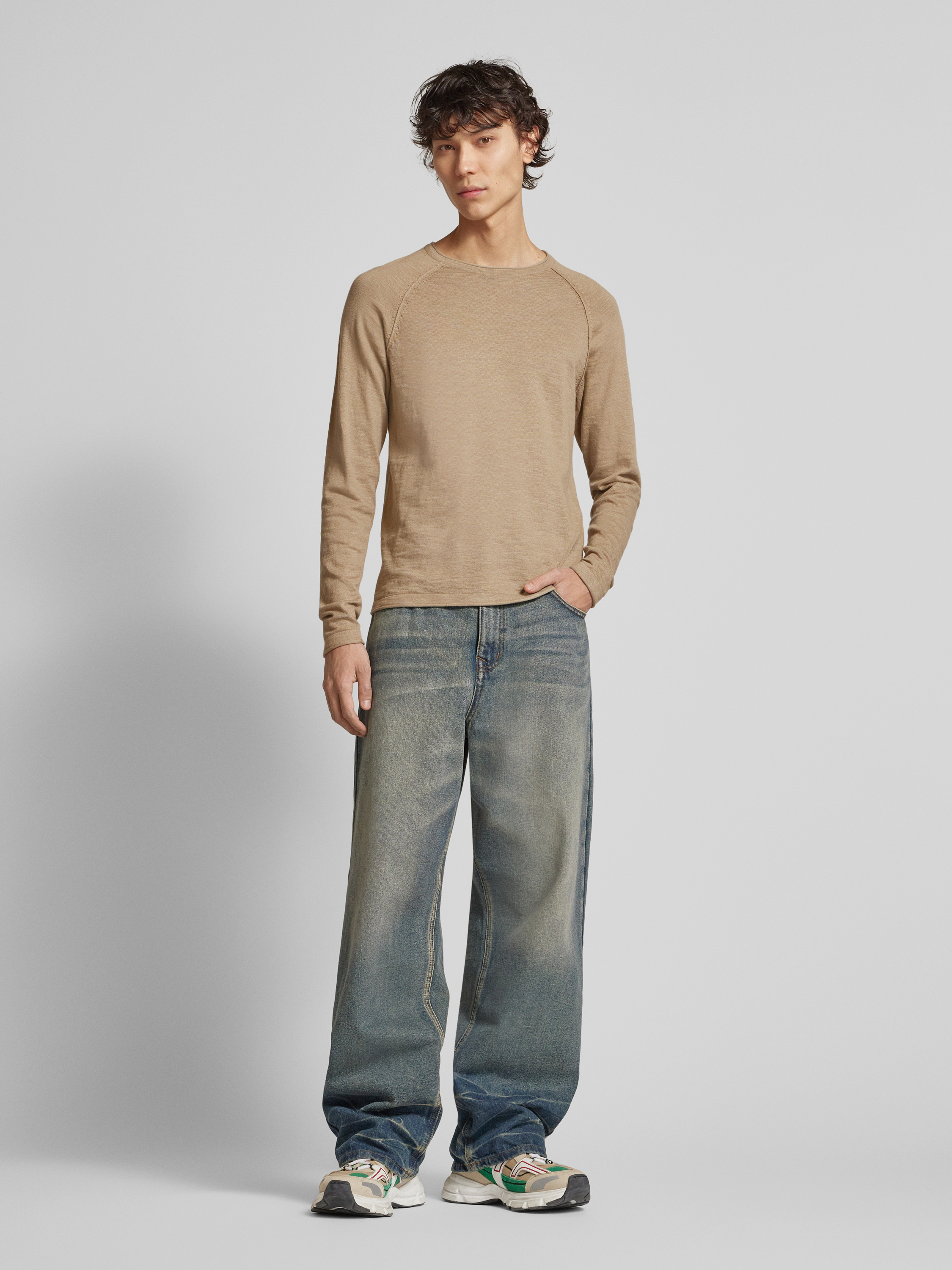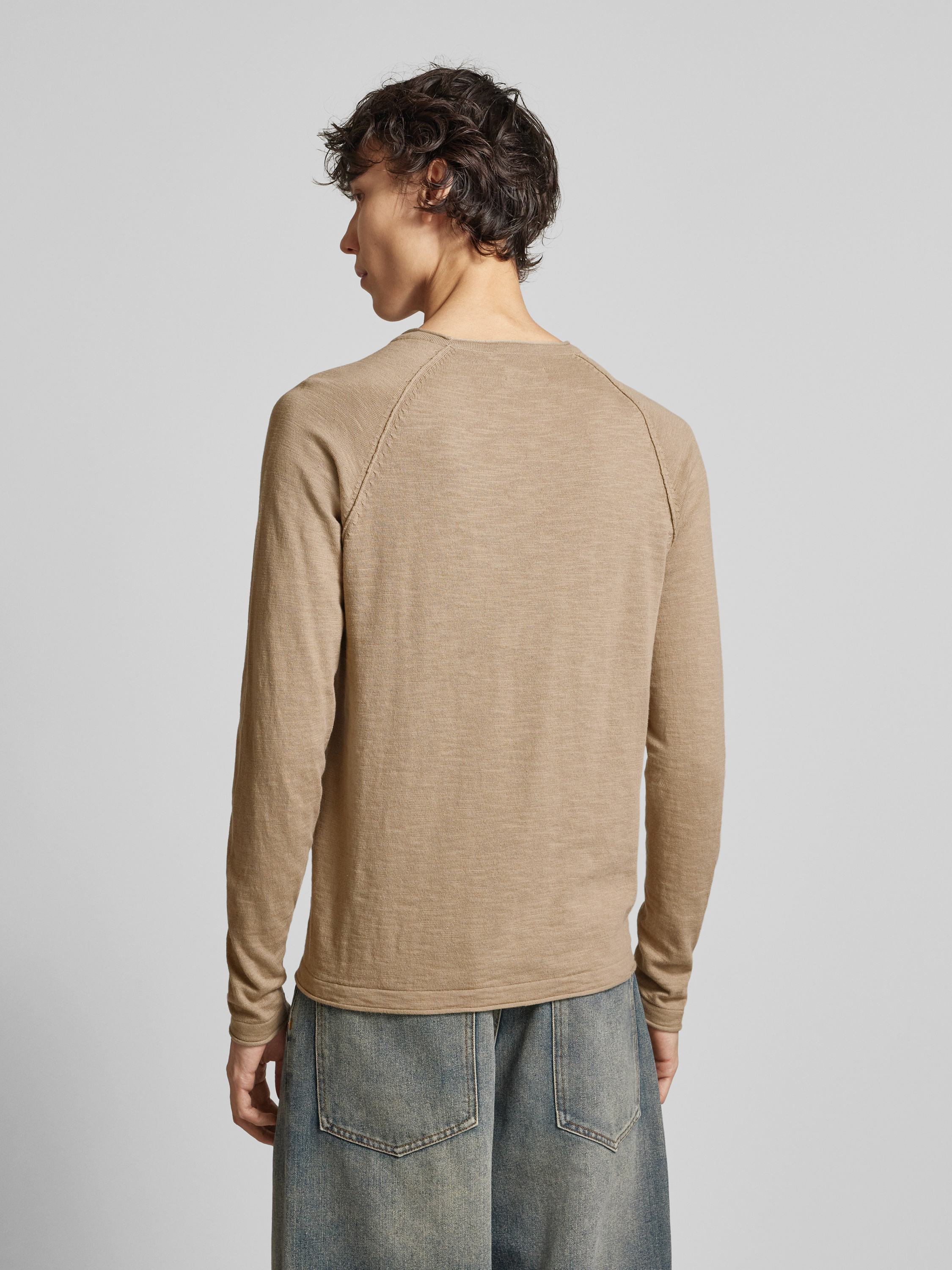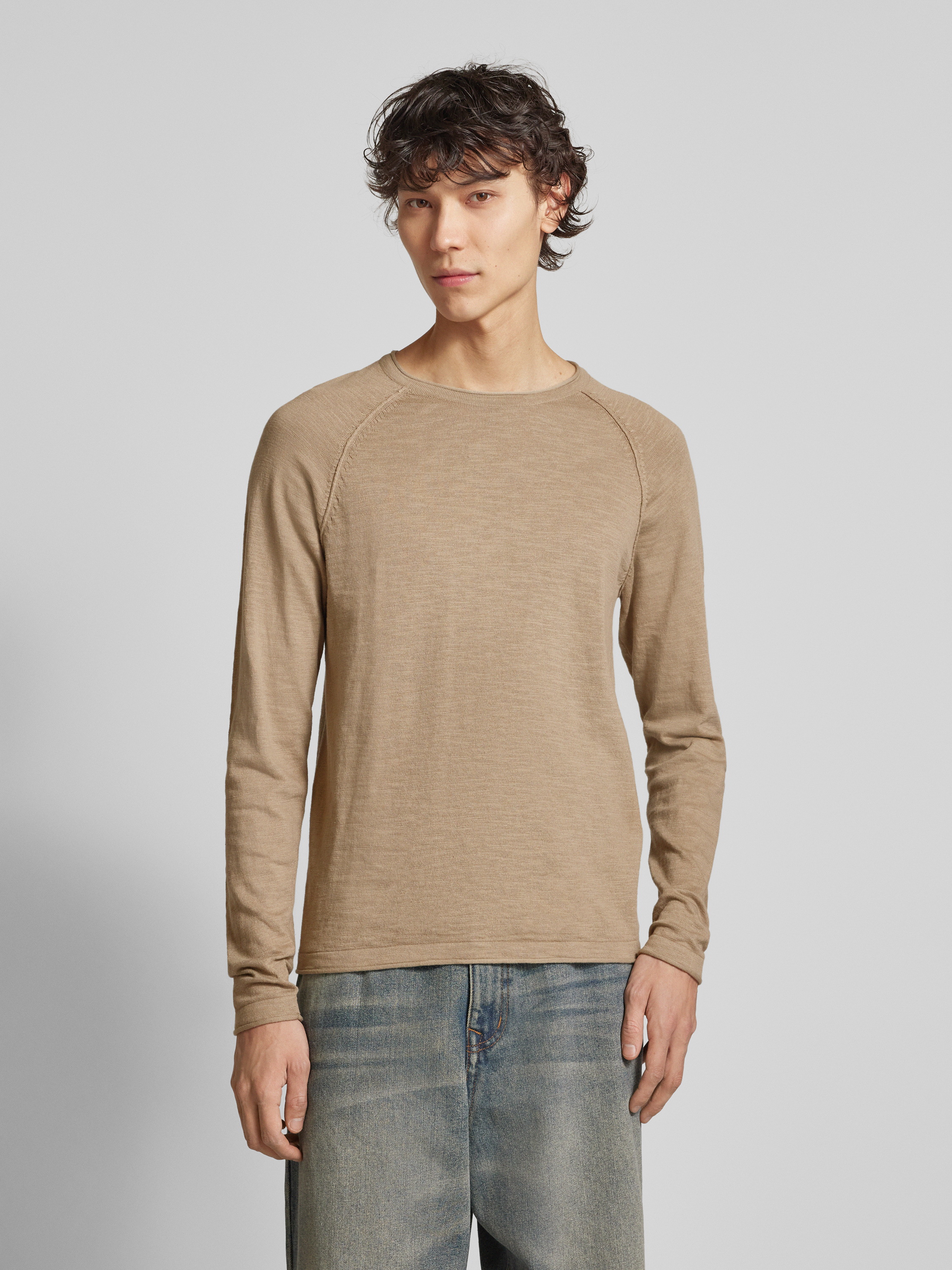 Shirt met lange mouwen en geribde ronde hals, model 'BREEZE' in beige