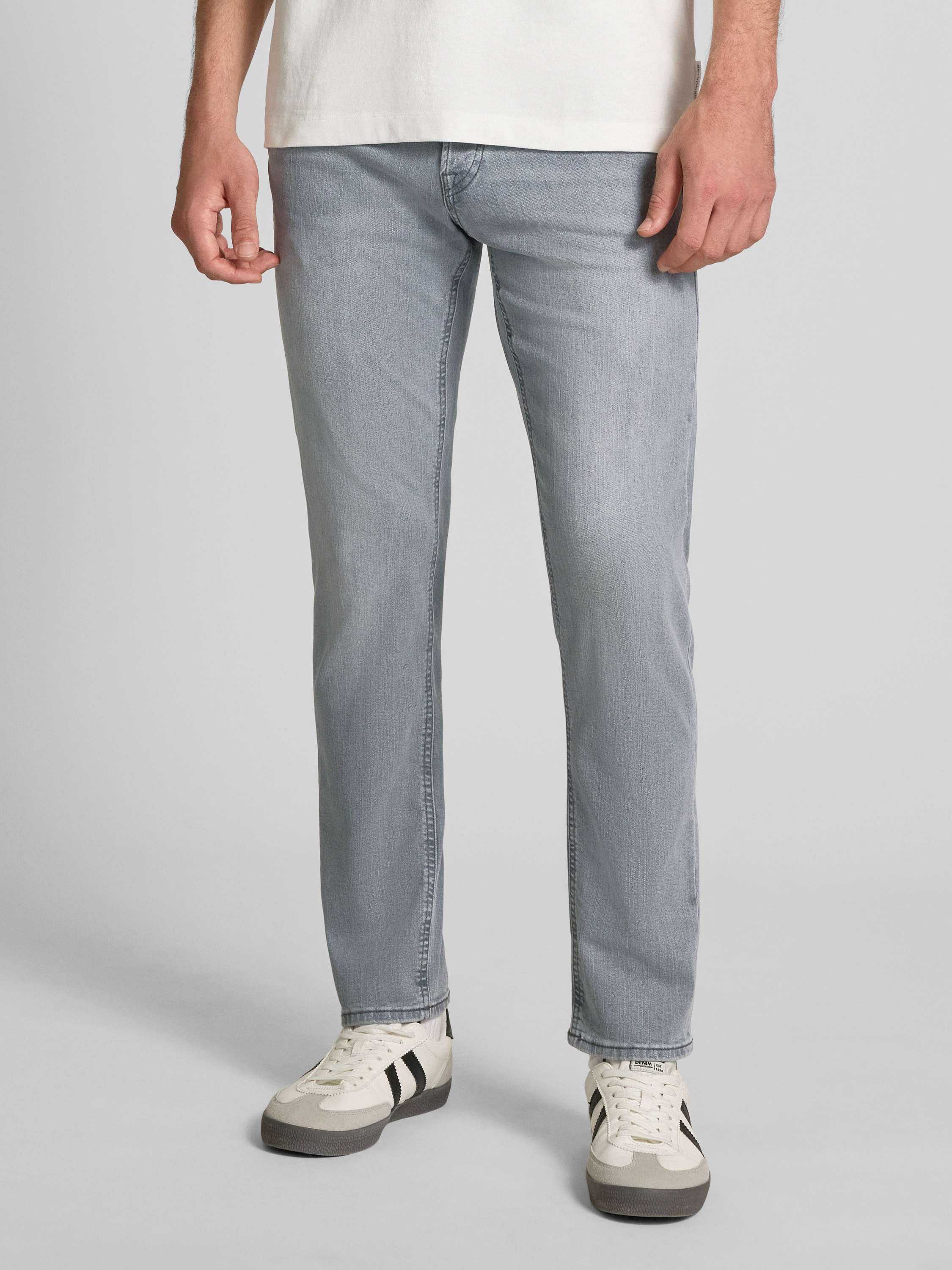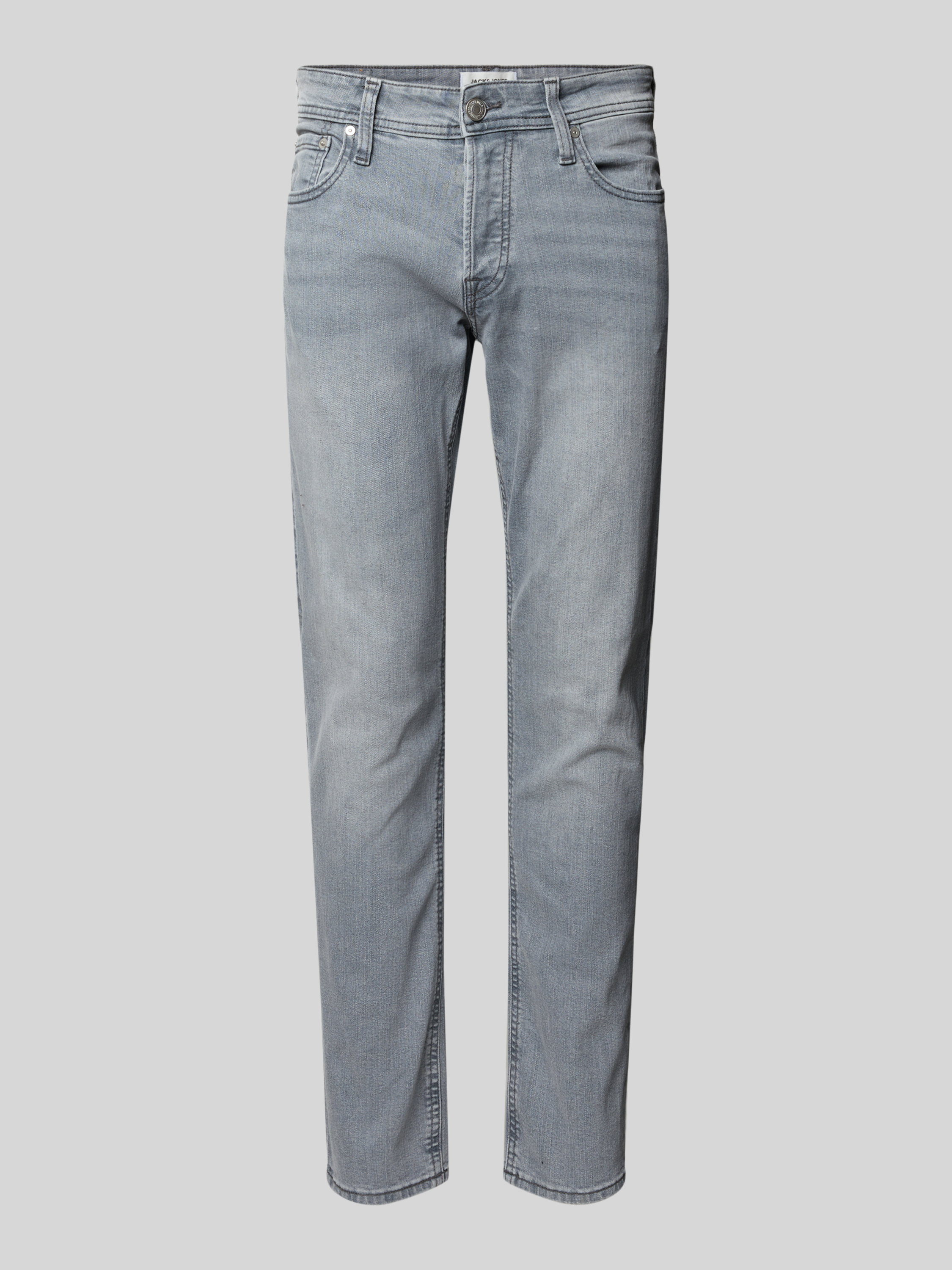 Slim fit jeans met knoopsluiting, model 'Glenn' in lichtgrijs
