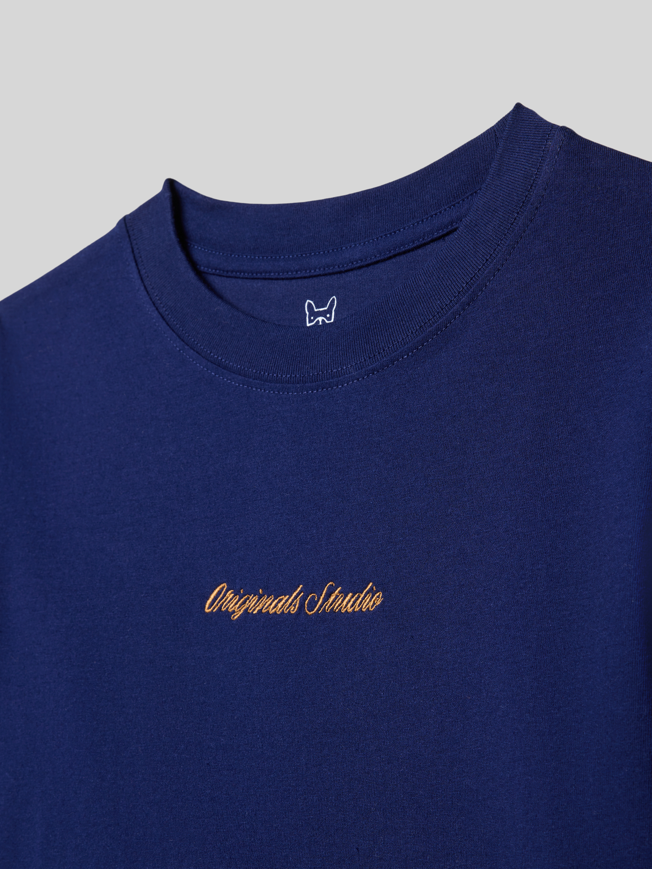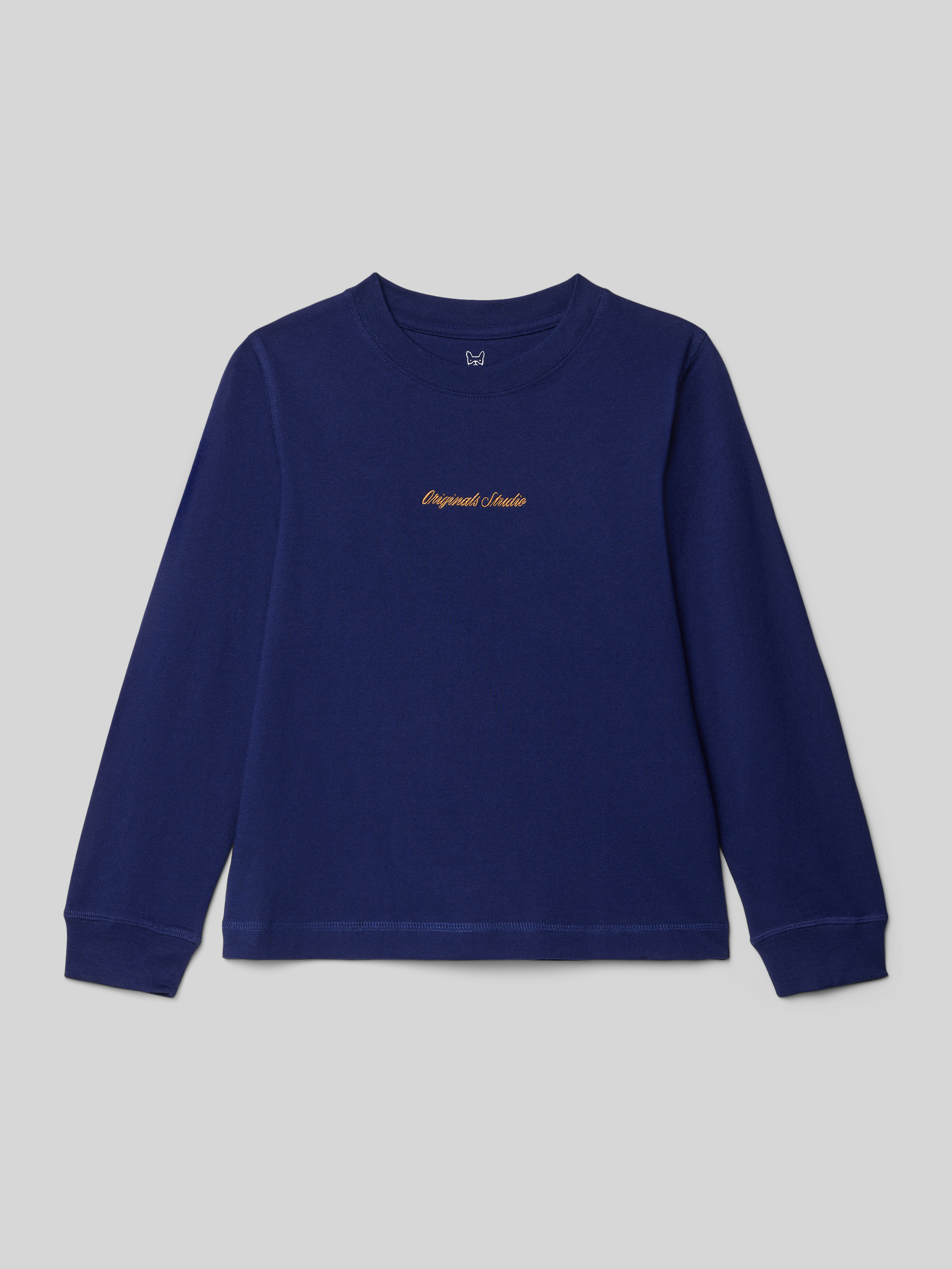 Sweatshirt met labelstitching, model 'NORREBRO' in blauw