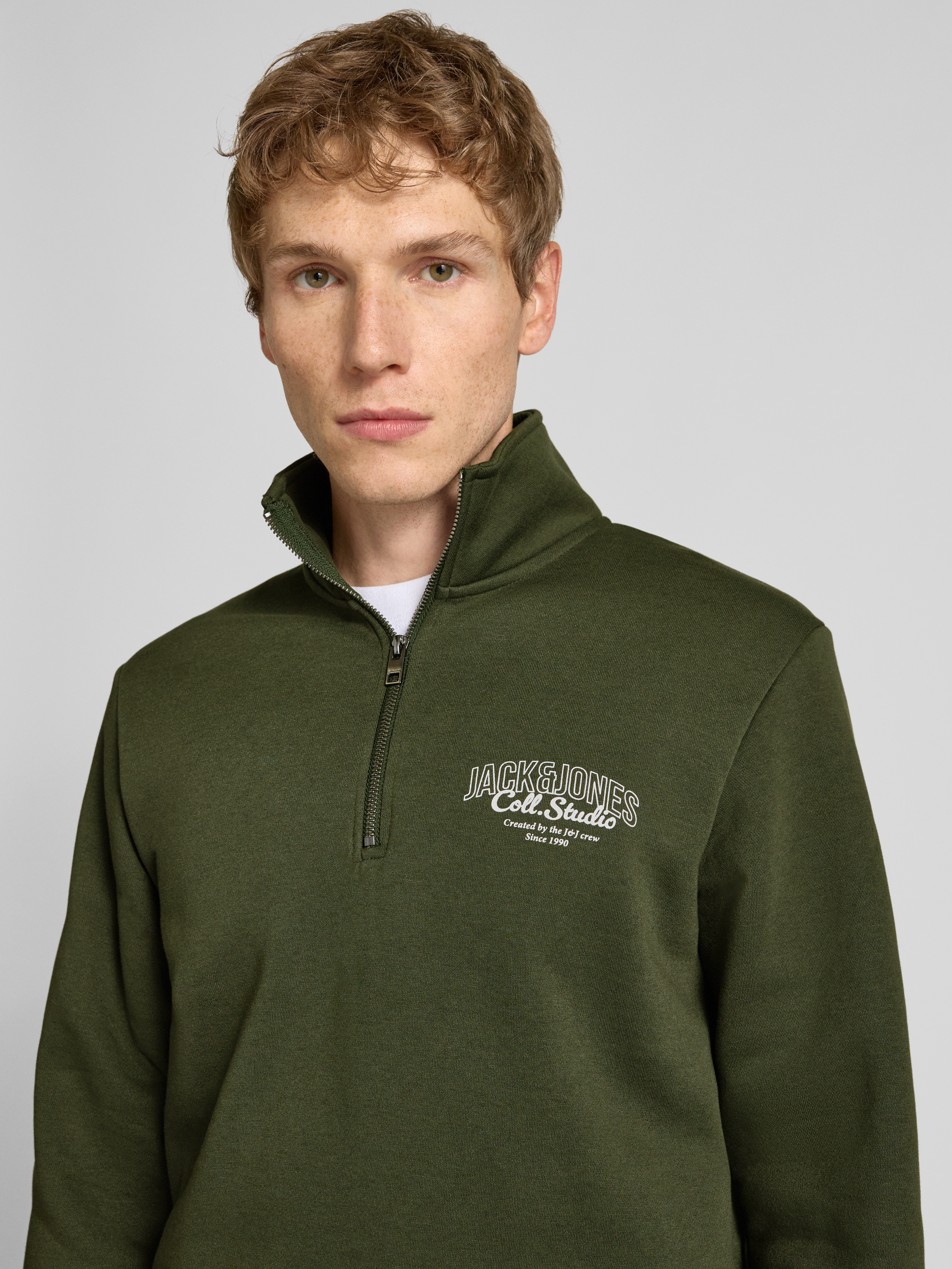 Sweatshirt met opstaande kraag, model 'AKOTO' in donkergroen