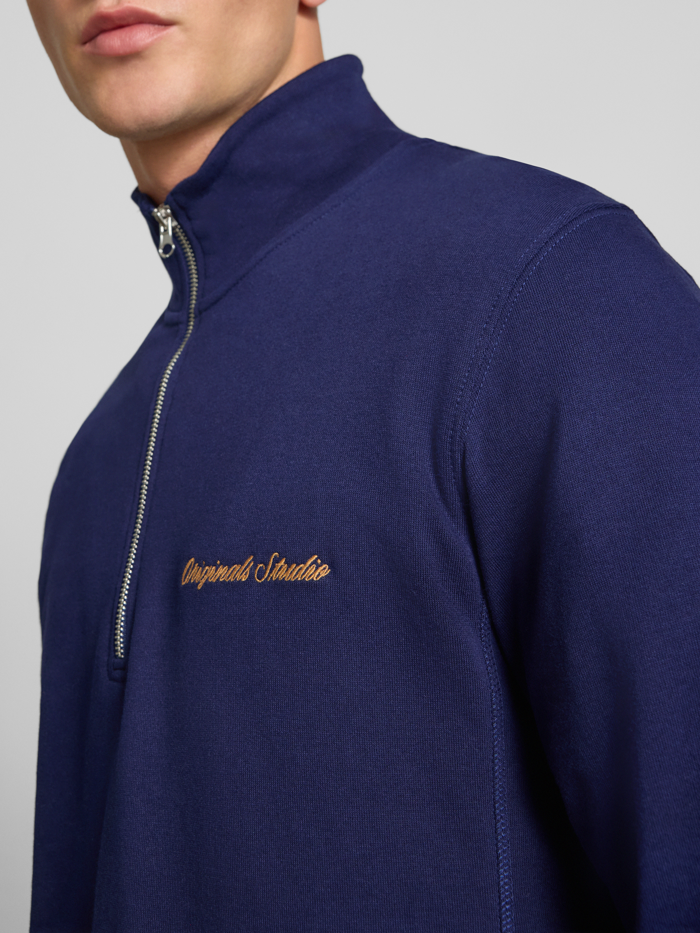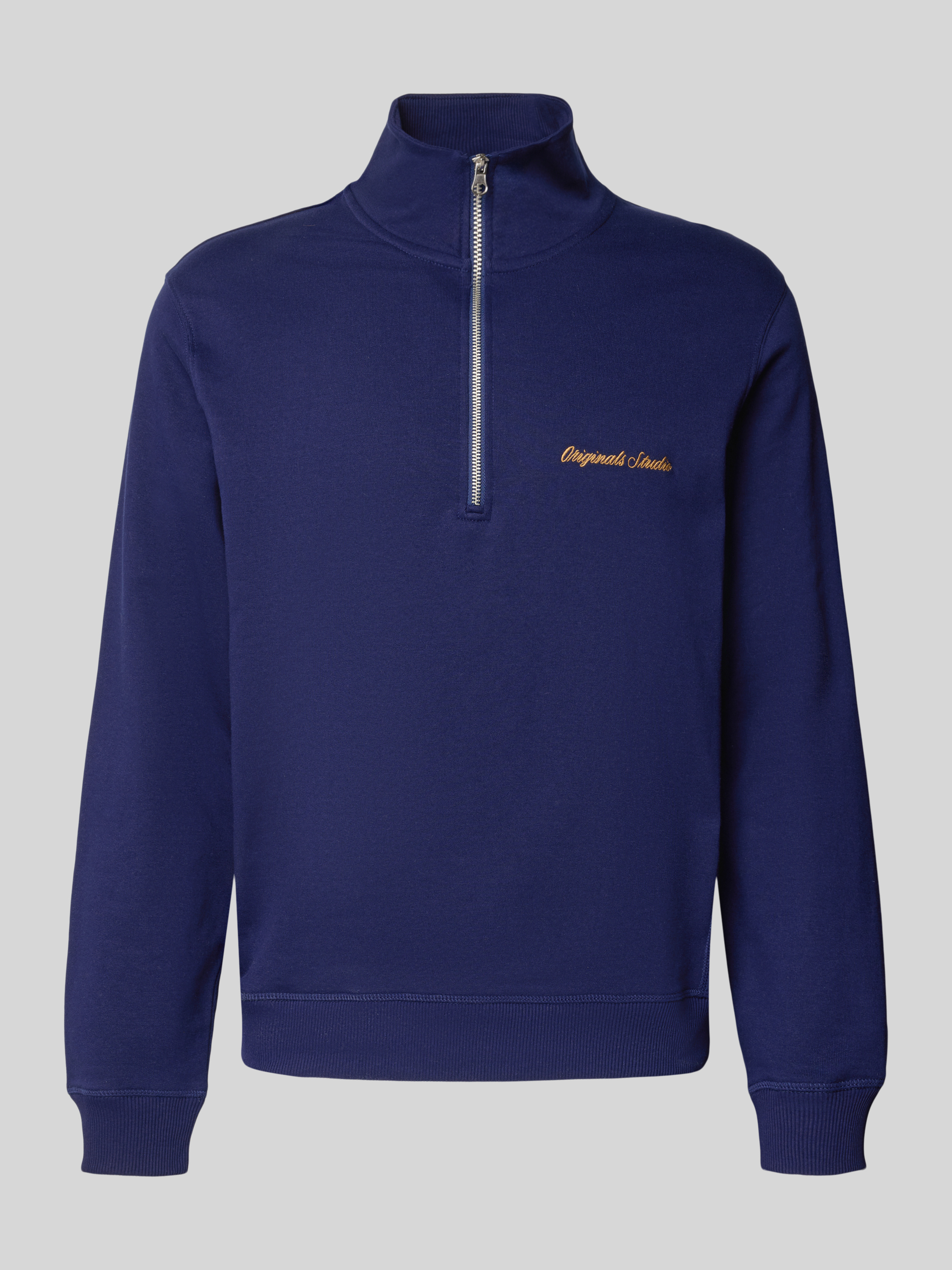 Sweatshirt met schipperskraag en labelstitching in donkerblauw