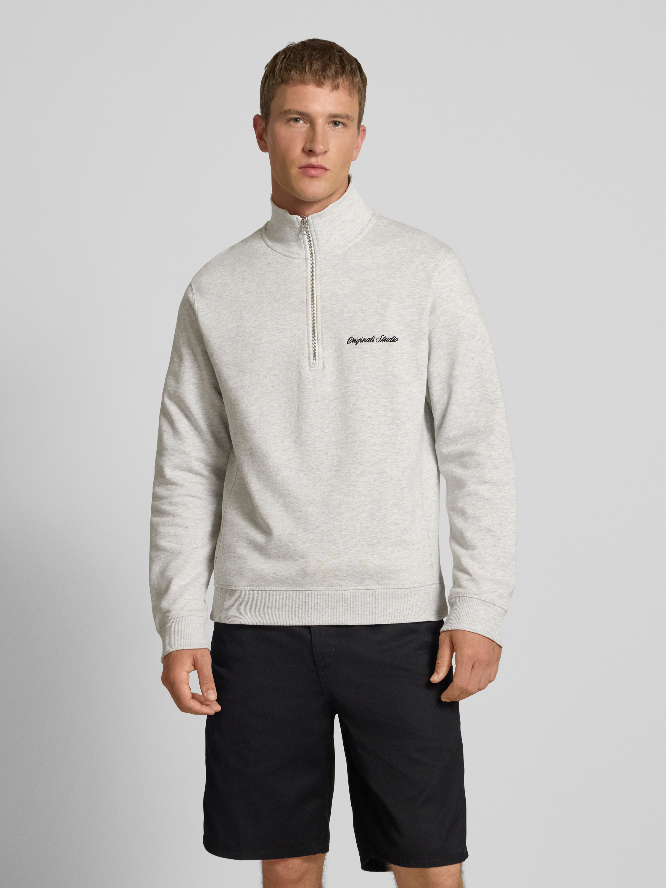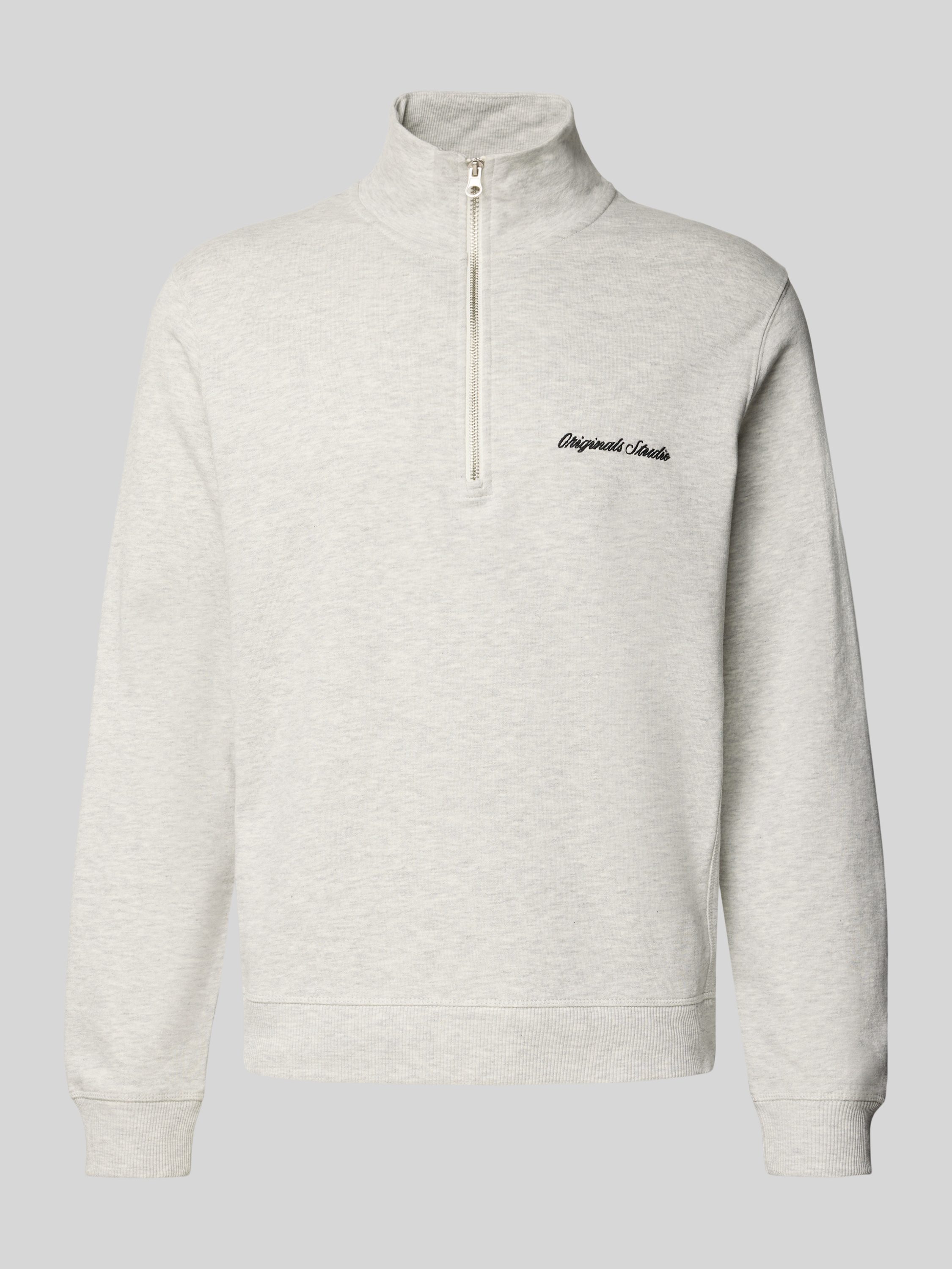 Sweatshirt met schipperskraag en labelstitching in offwhite gemêleerd