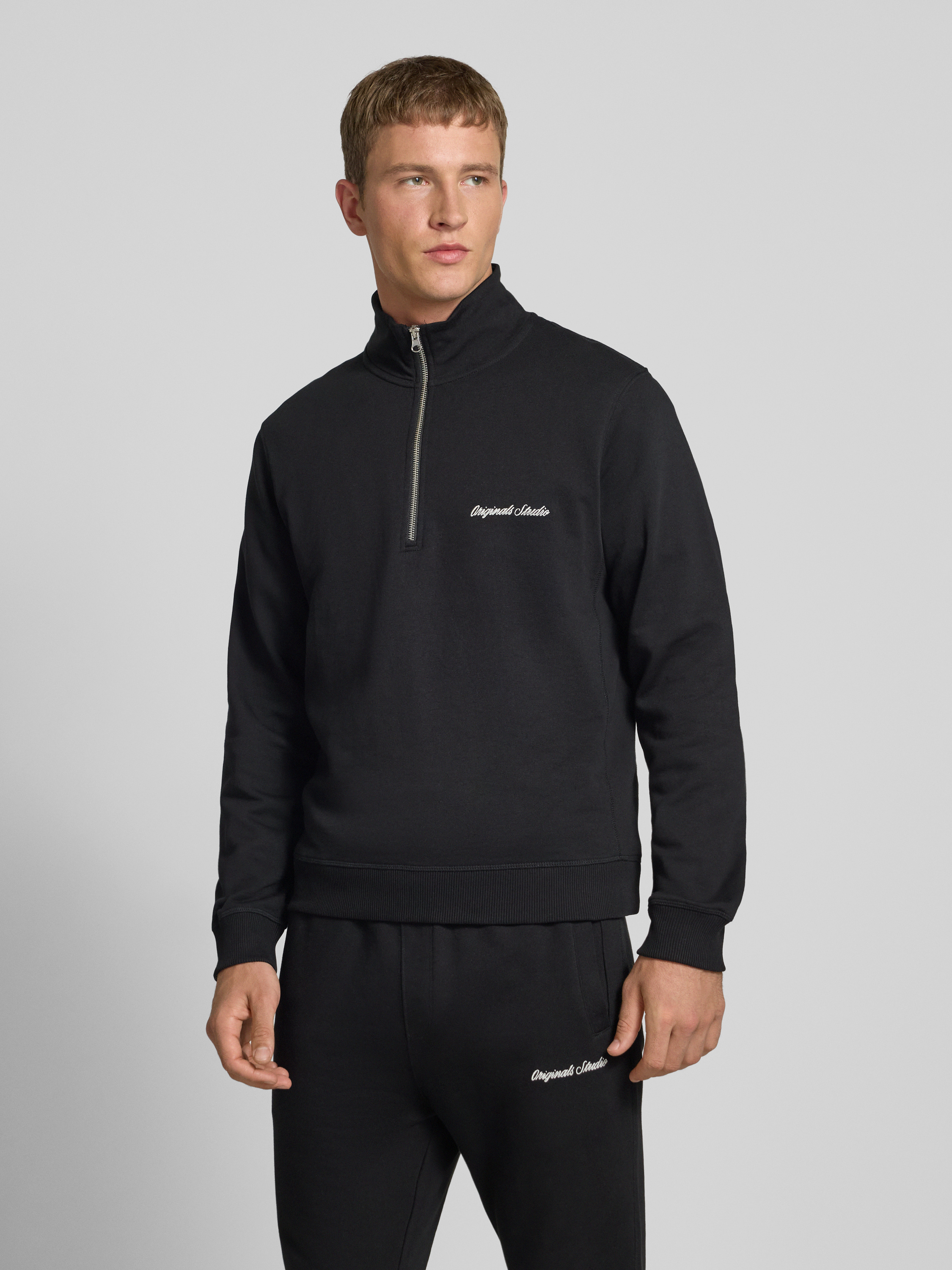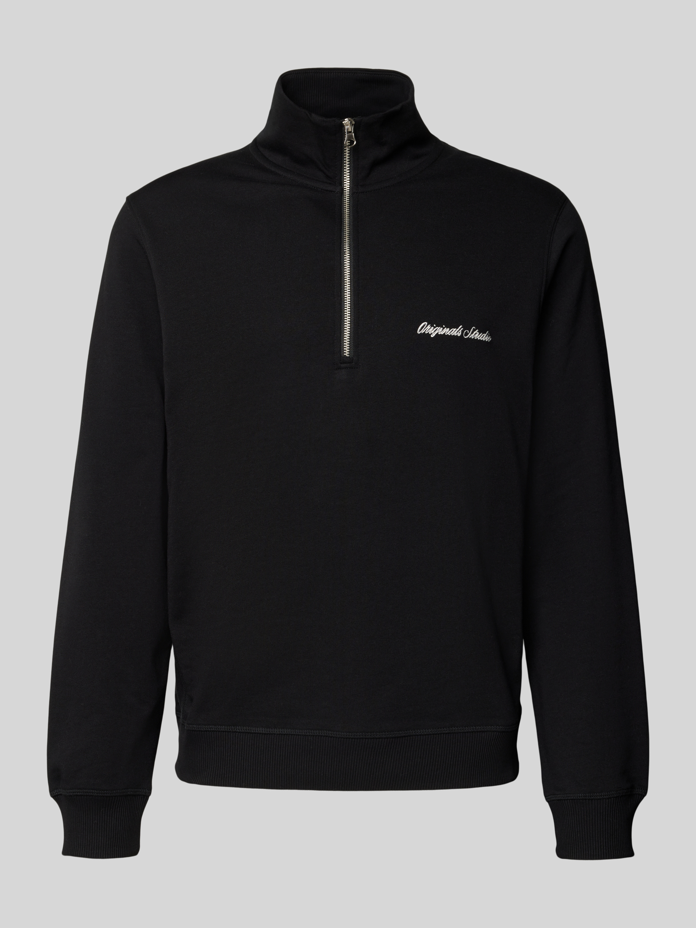 Sweatshirt met schipperskraag en labelstitching in zwart