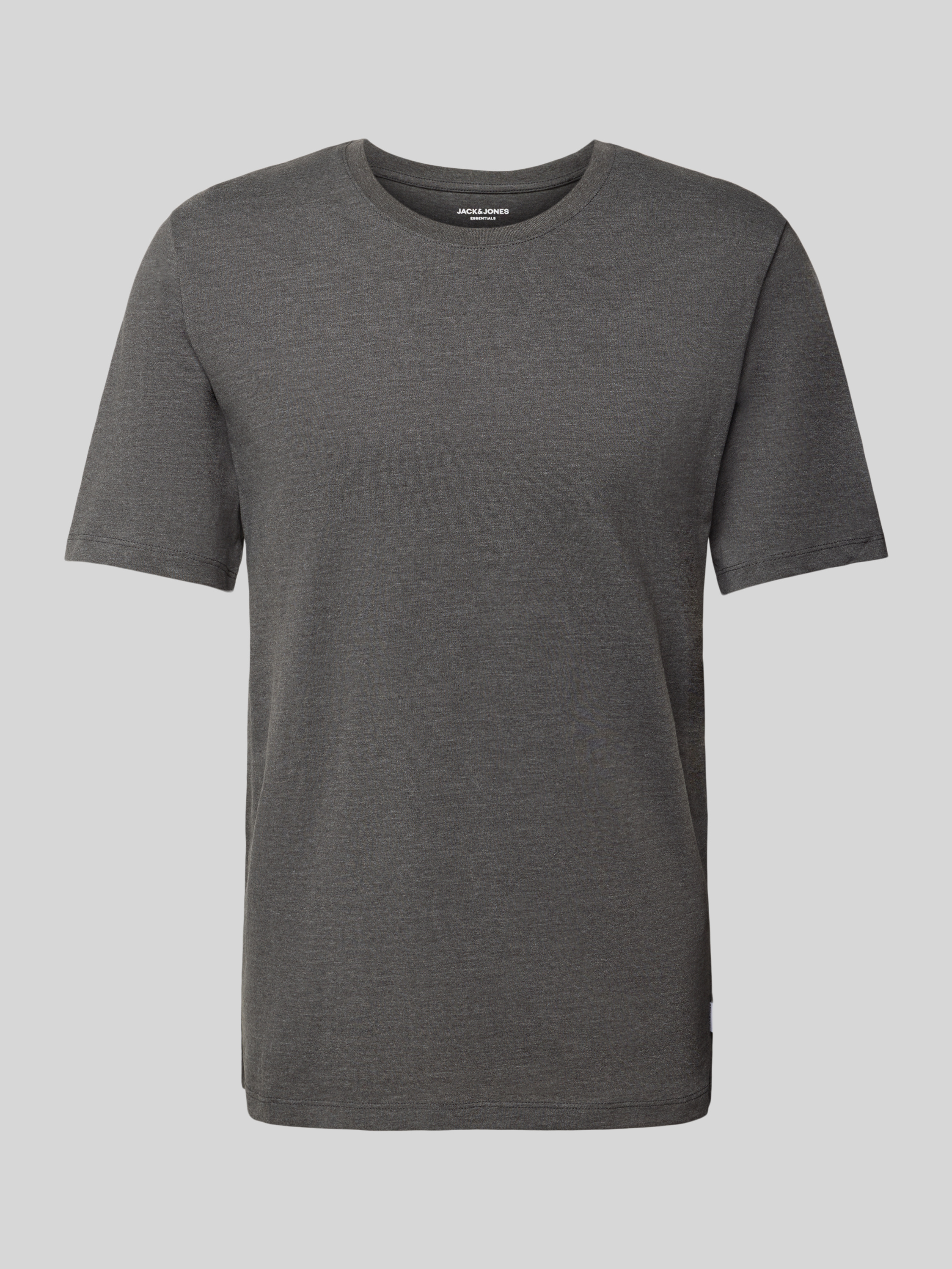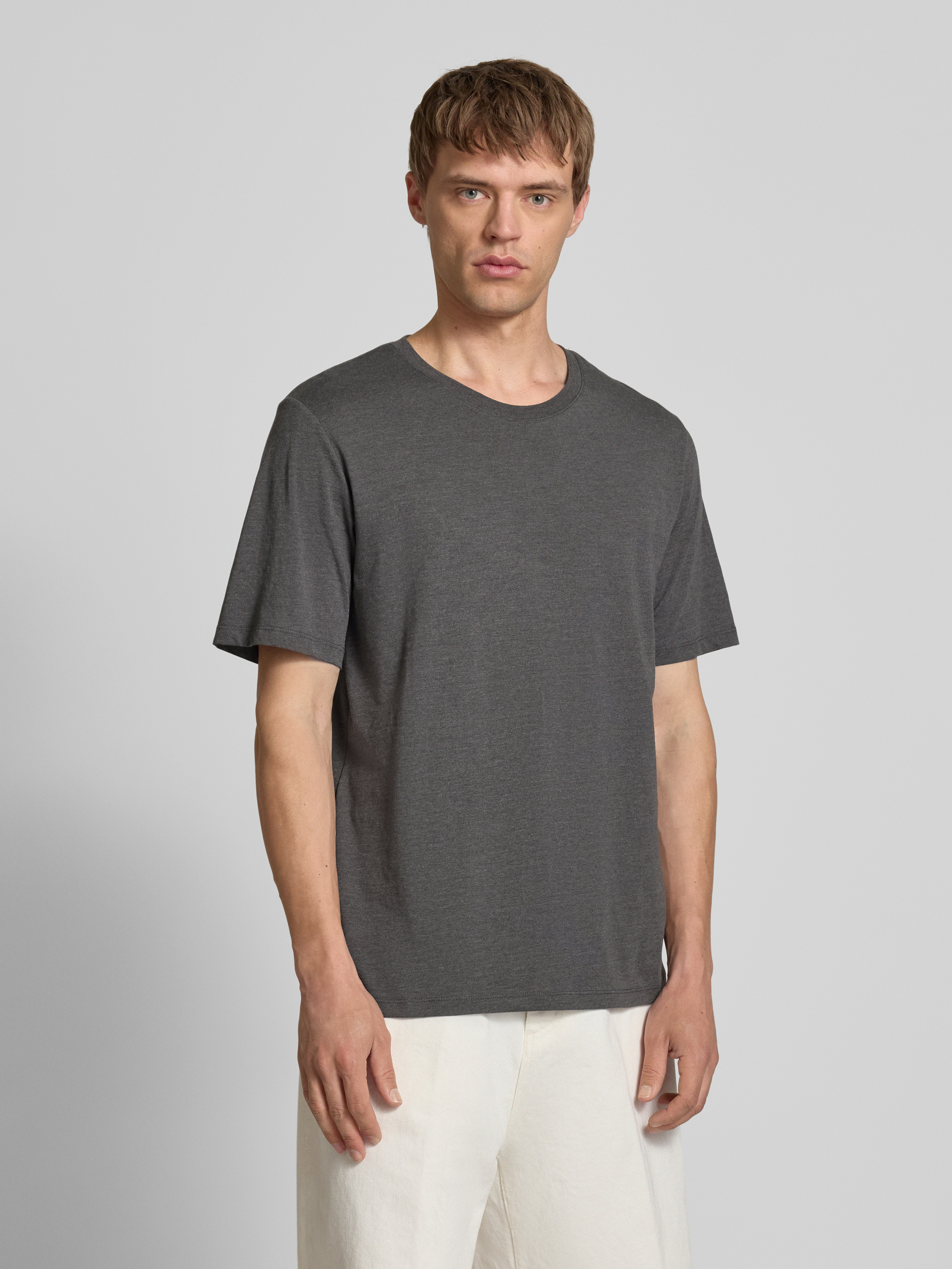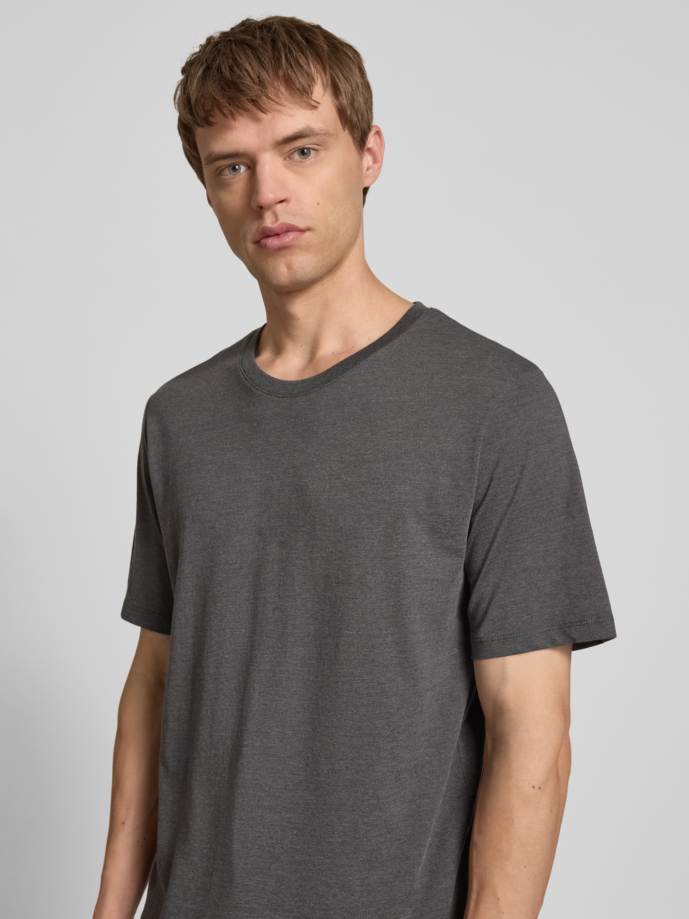 T-shirt met geribde ronde hals in antraciet gemêleerd