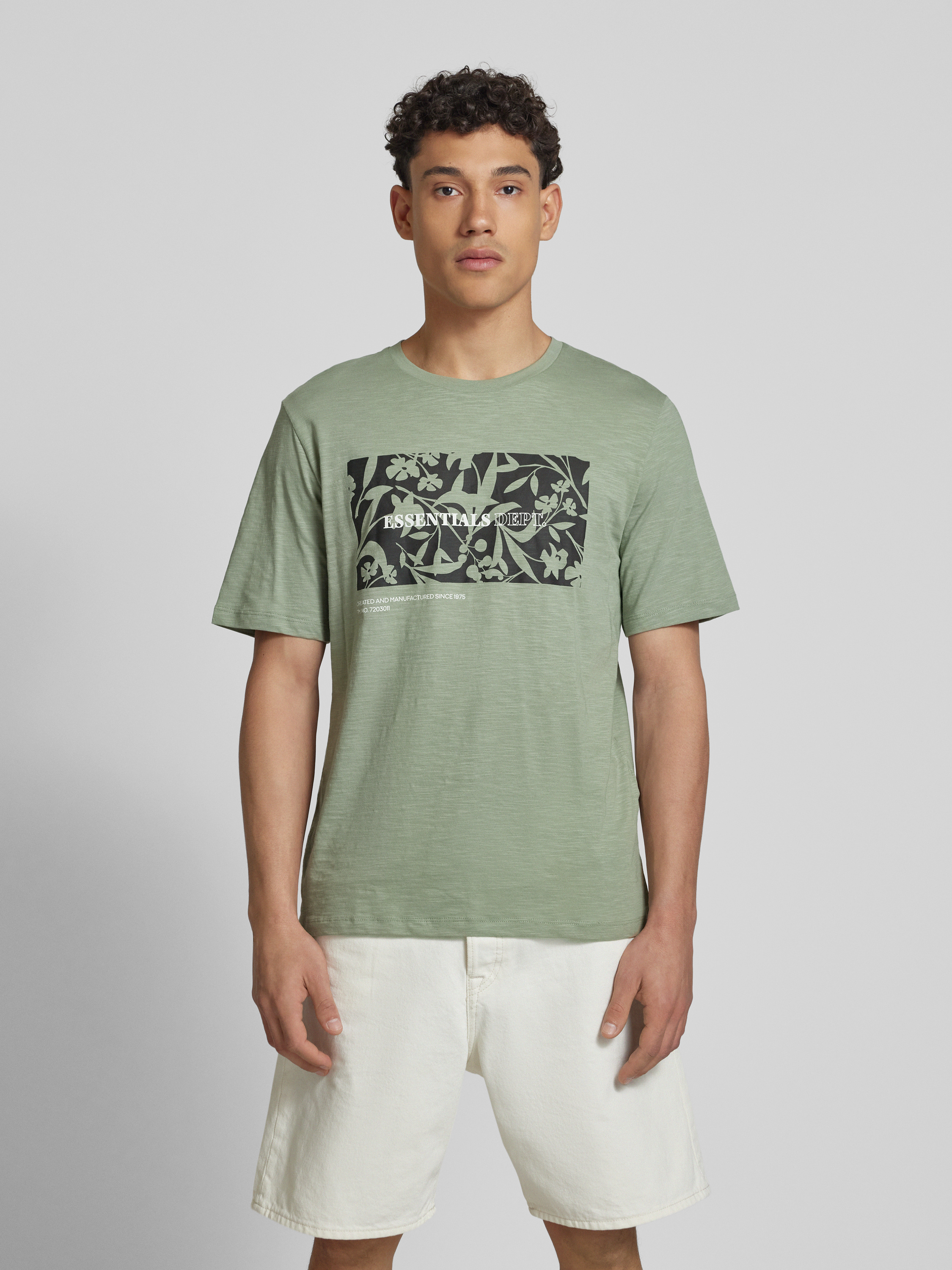 T-shirt met labelprint, model 'JEFF' in mintgroen