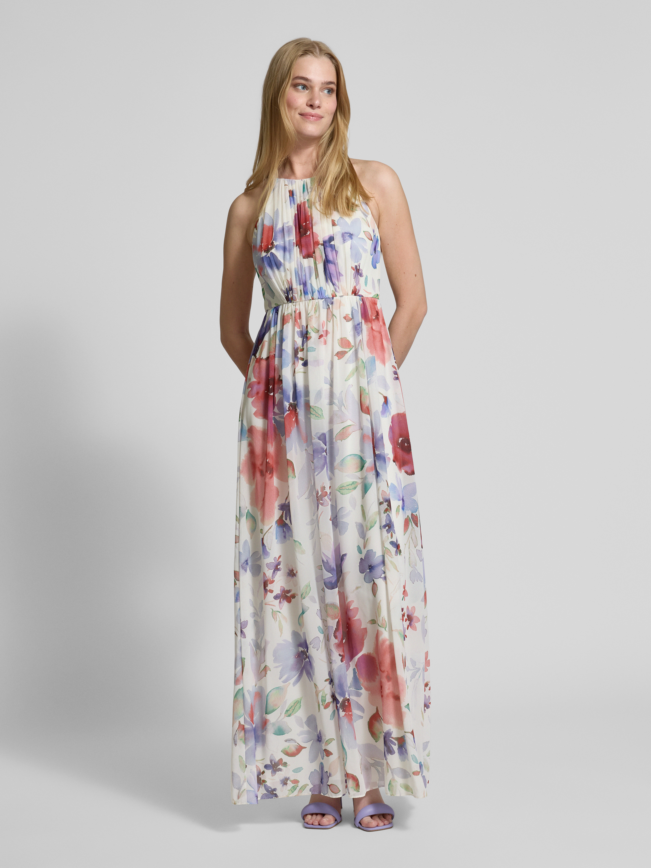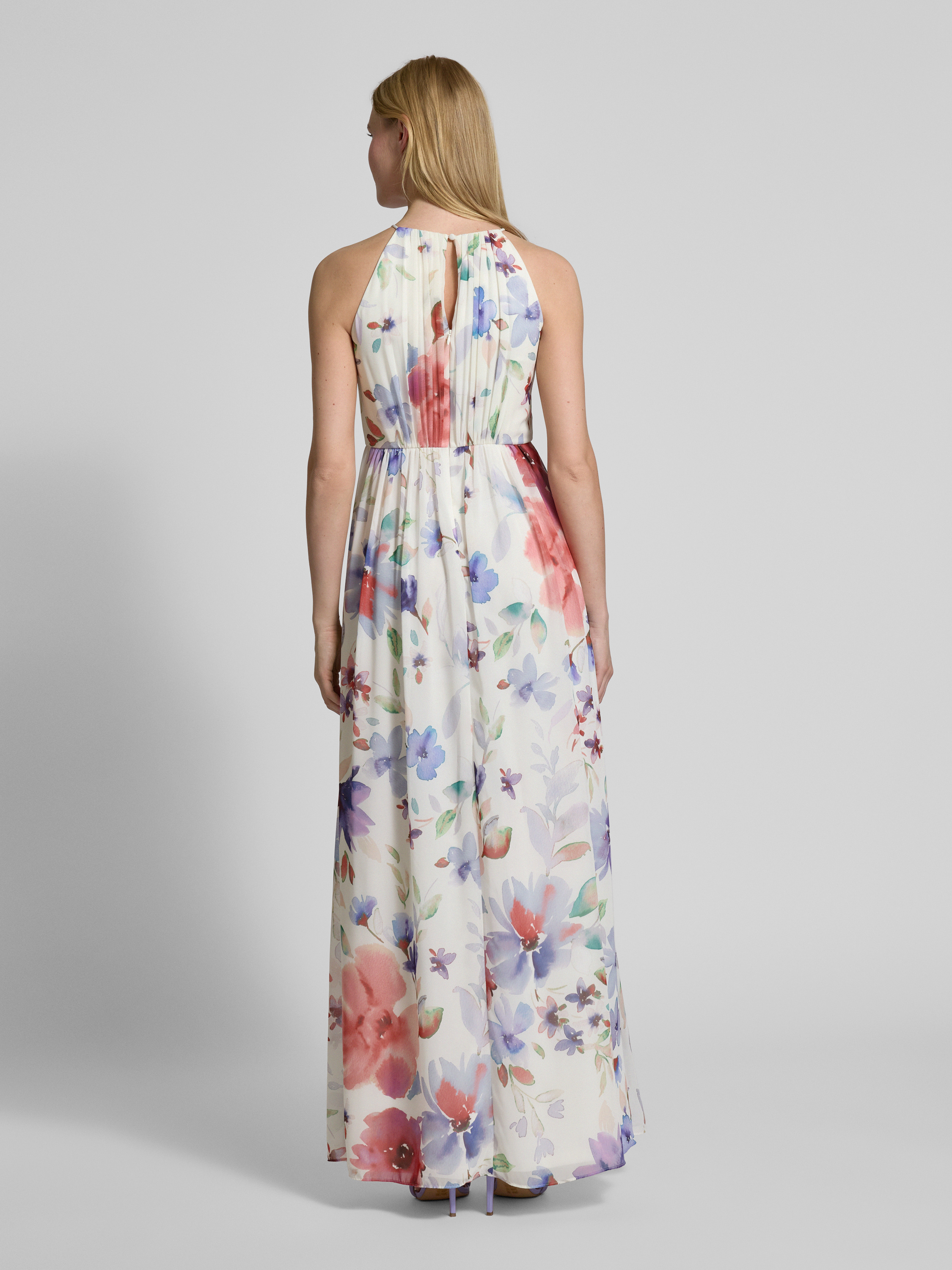 Avondjurk met plooien in ecru