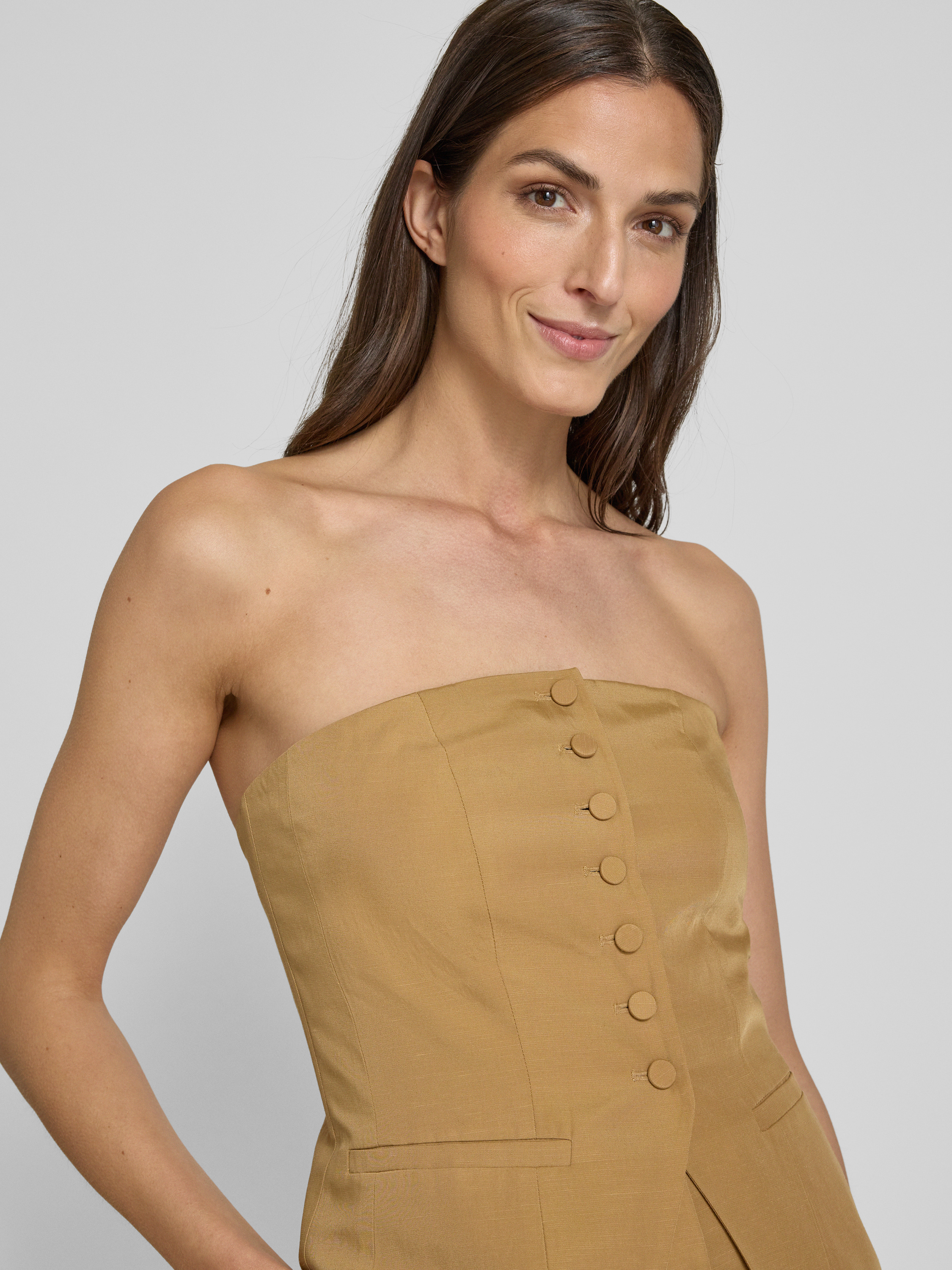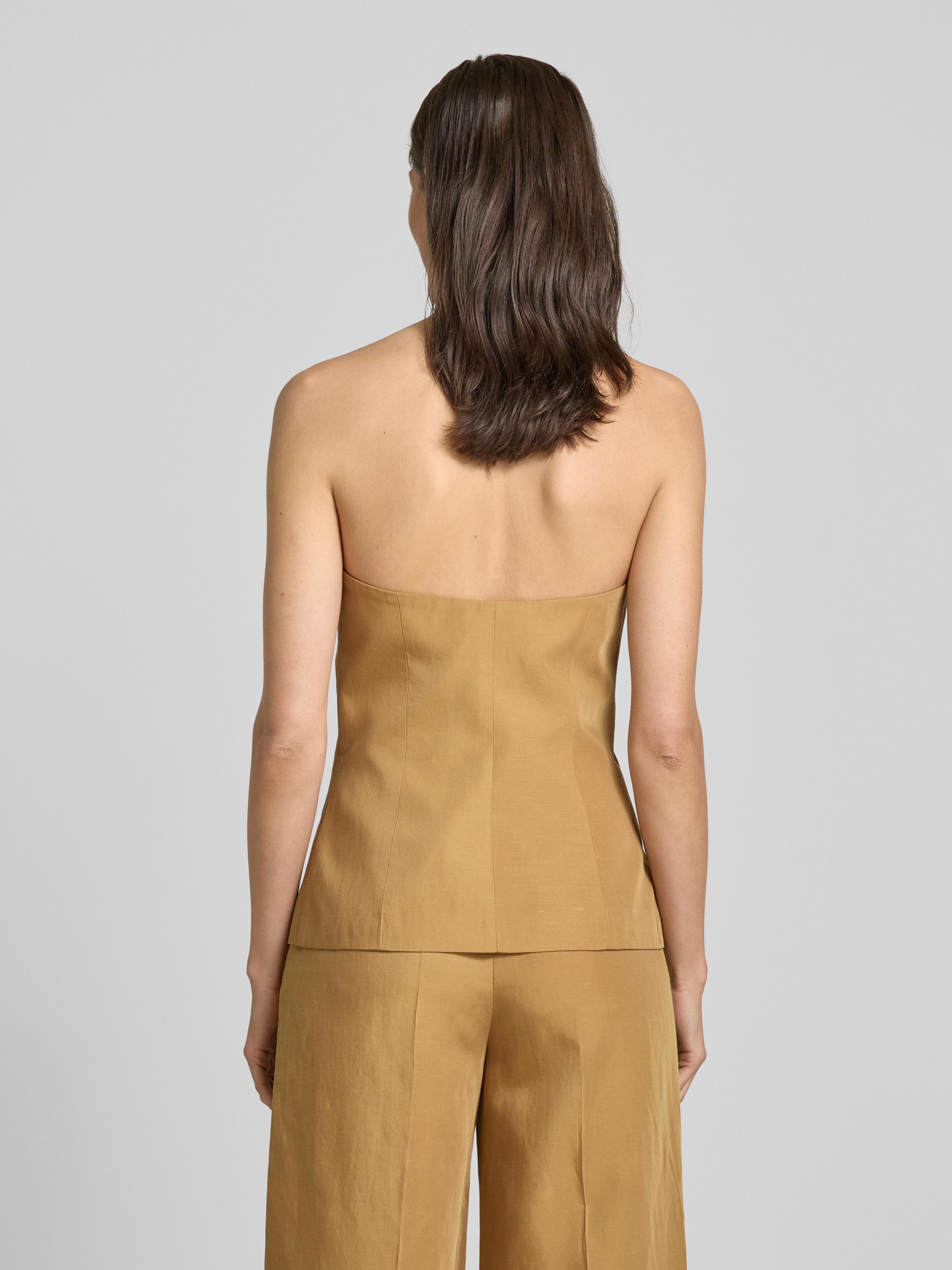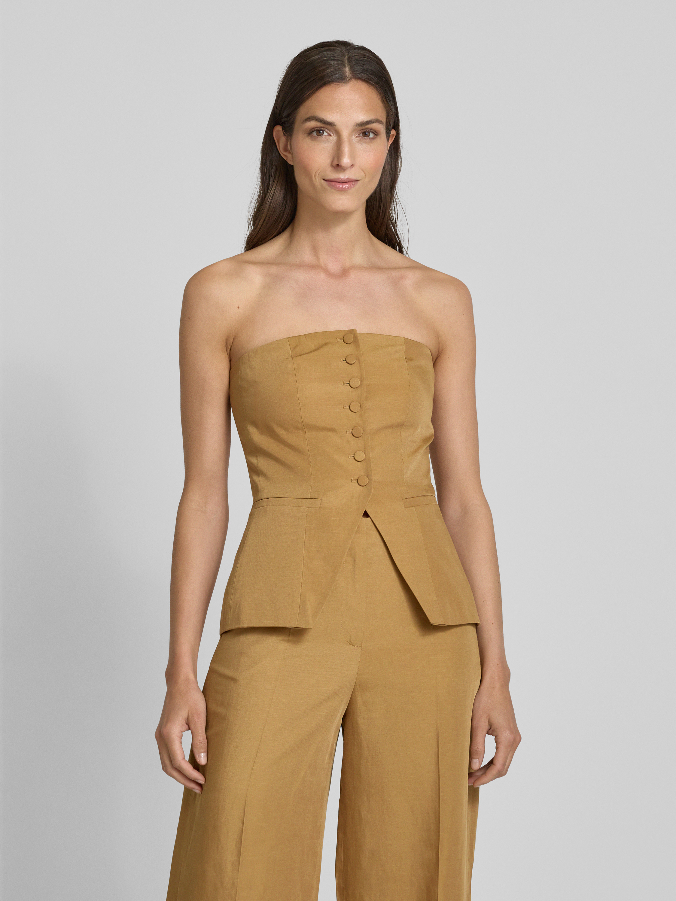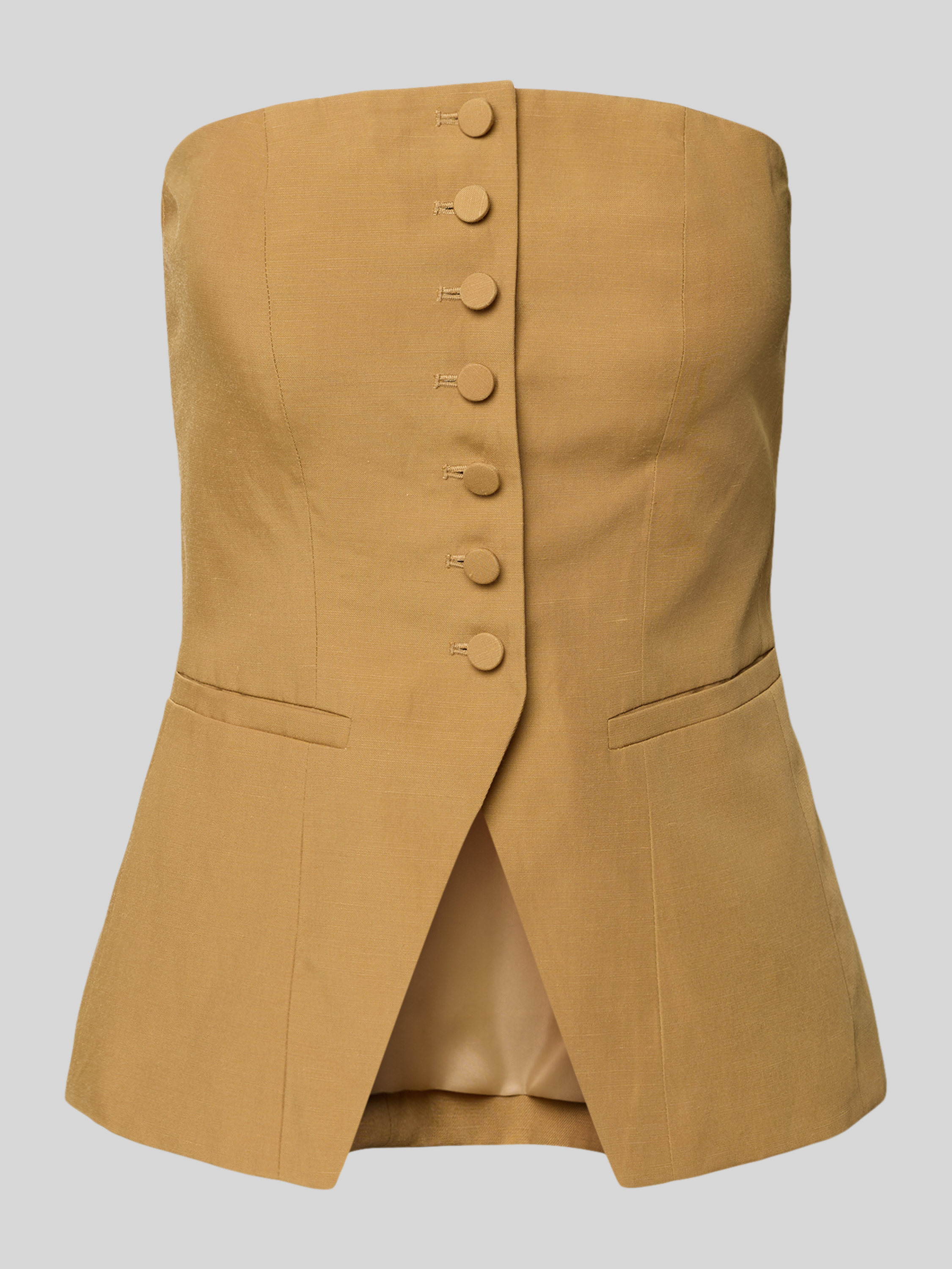 Bandeautop met doorknoopsluiting in mosterdgeel