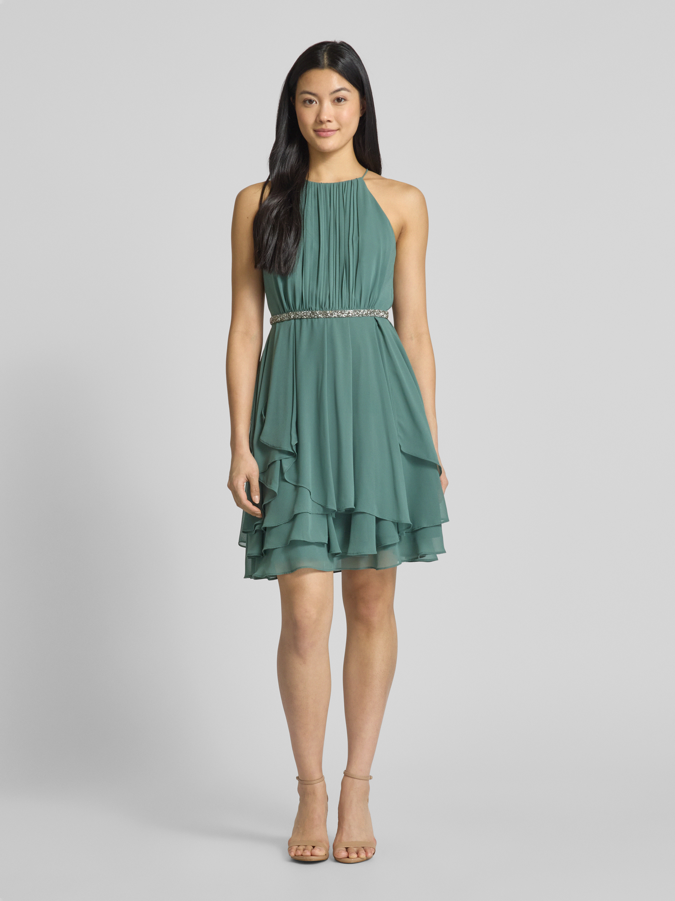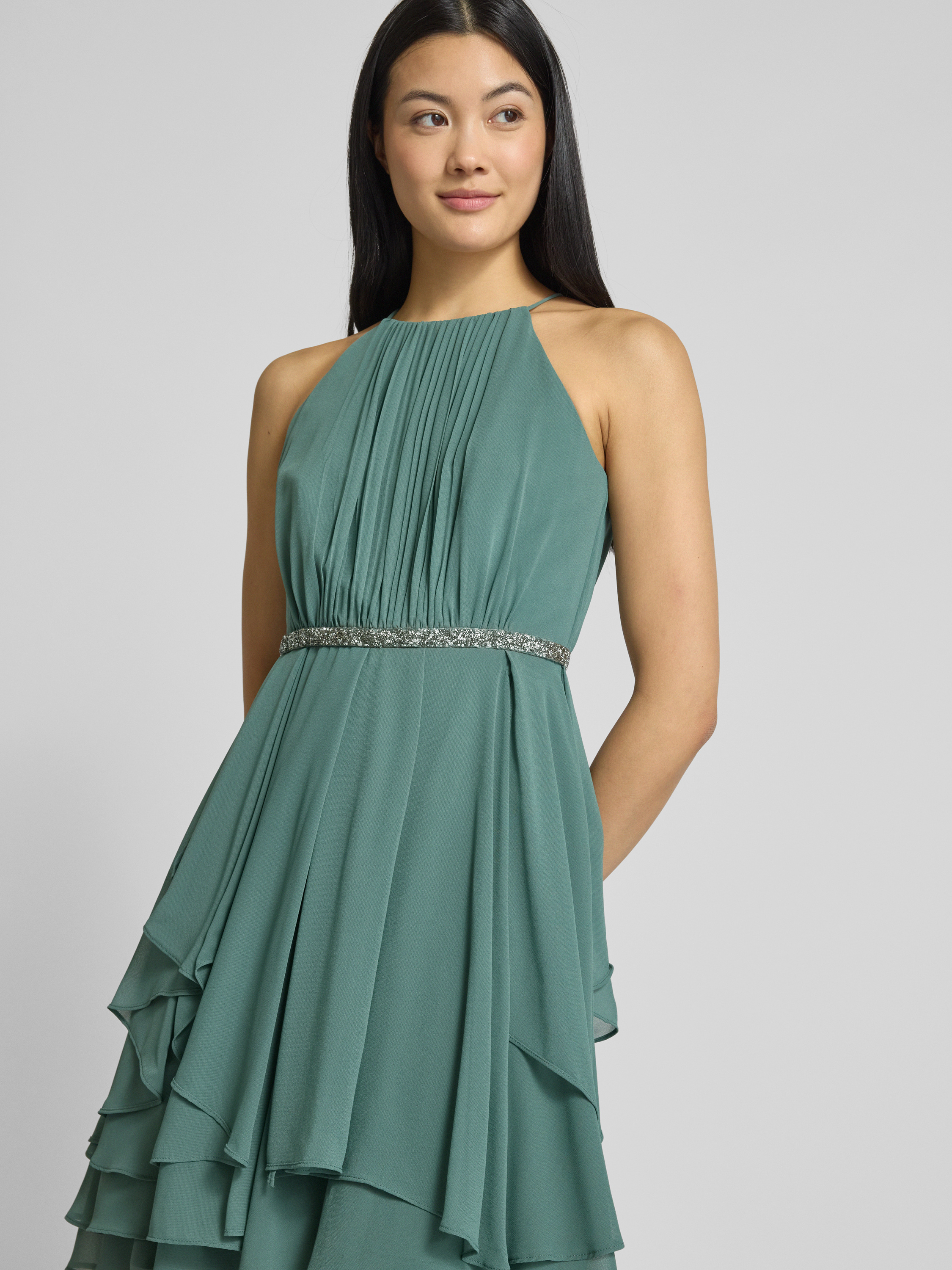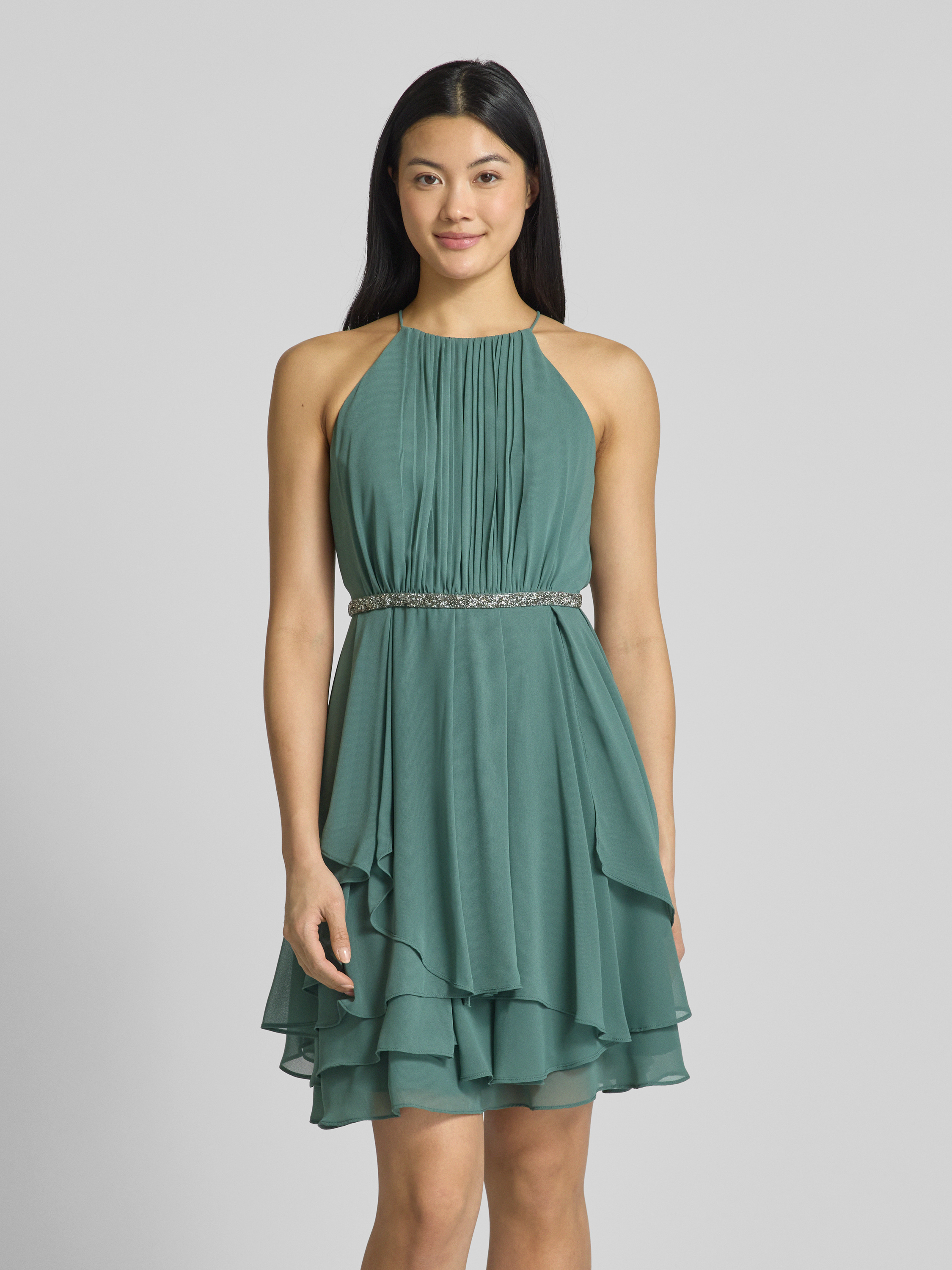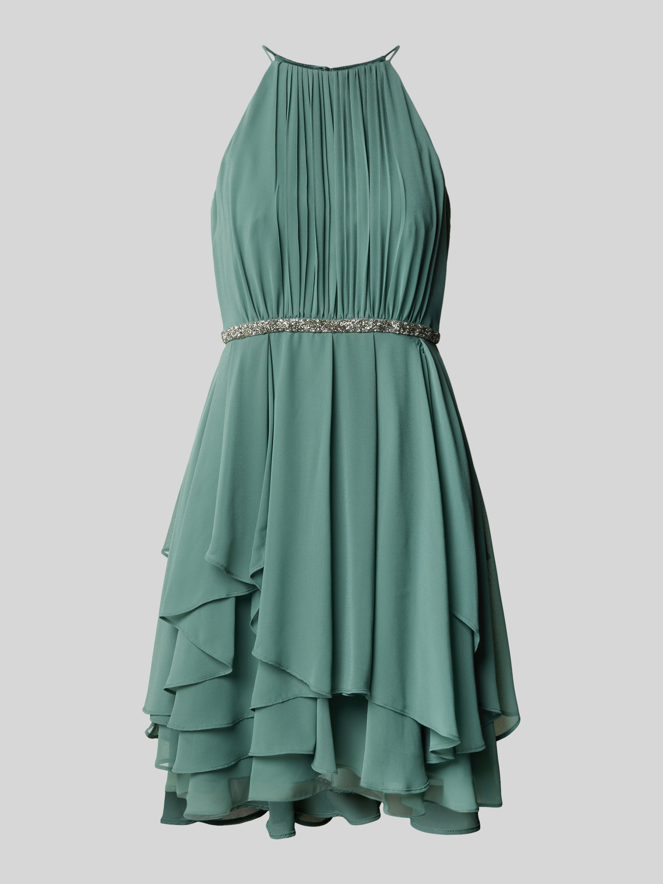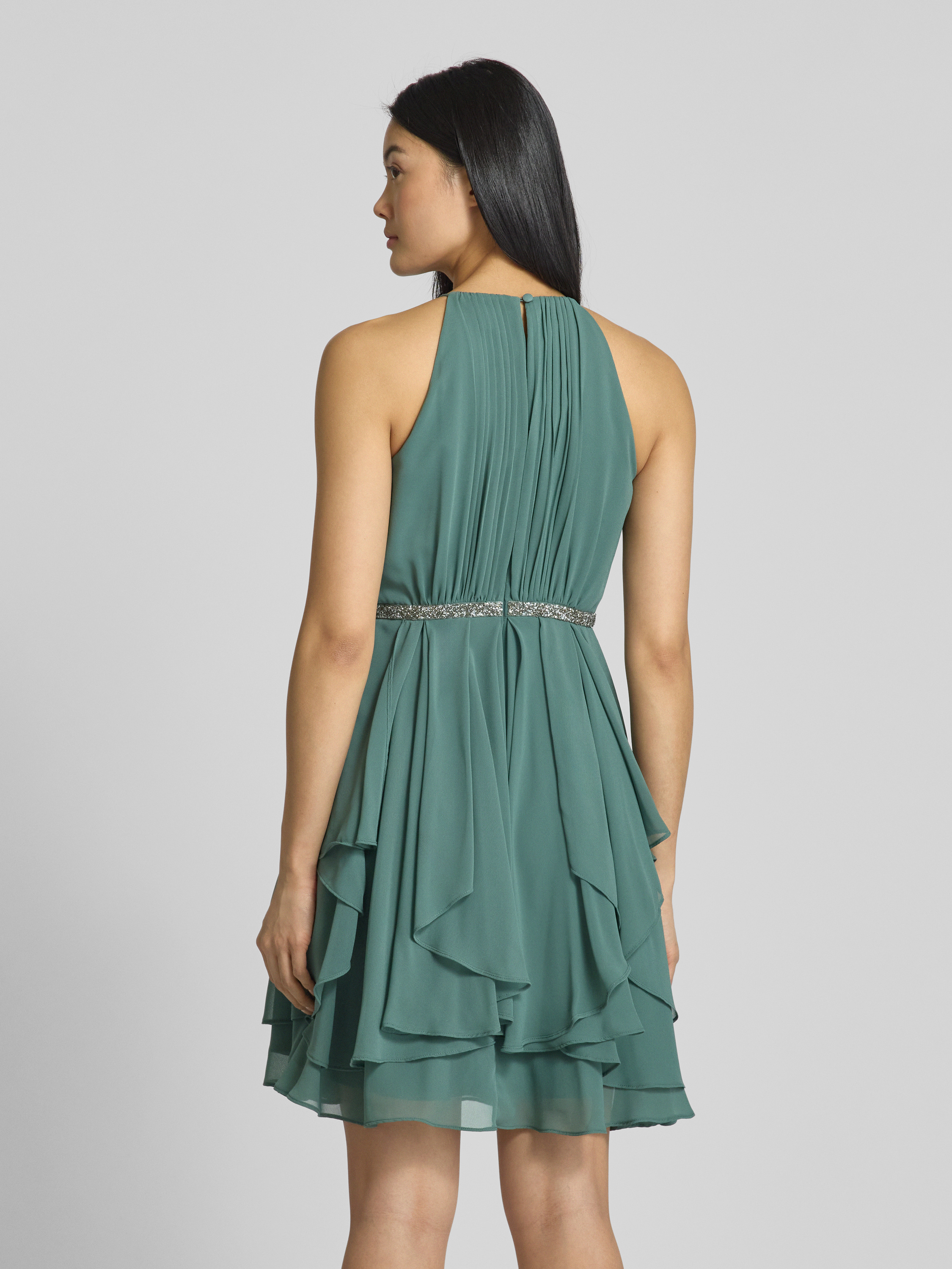 Cocktailjurk met plooien in rietgroen gemêleerd