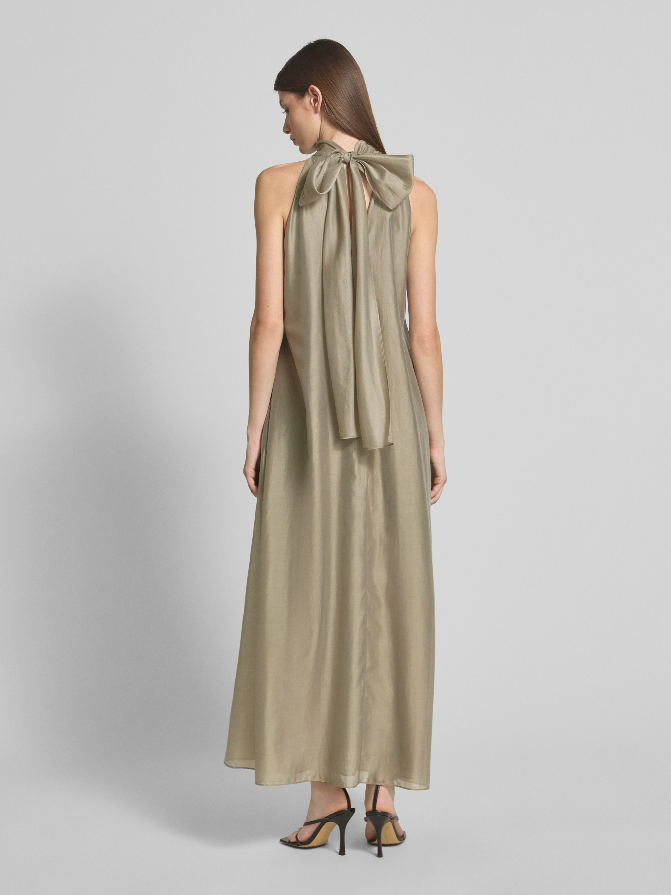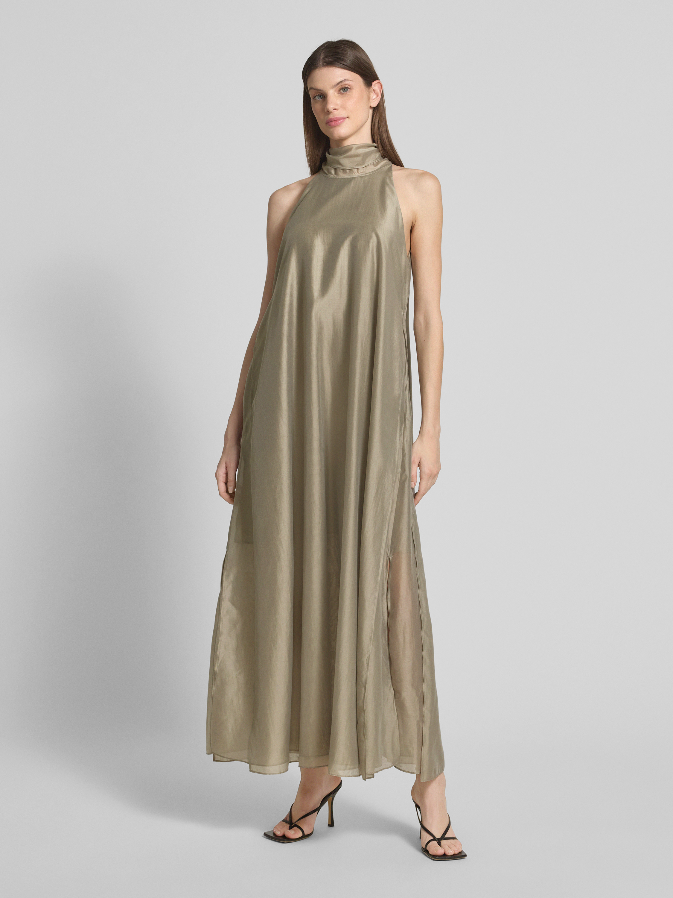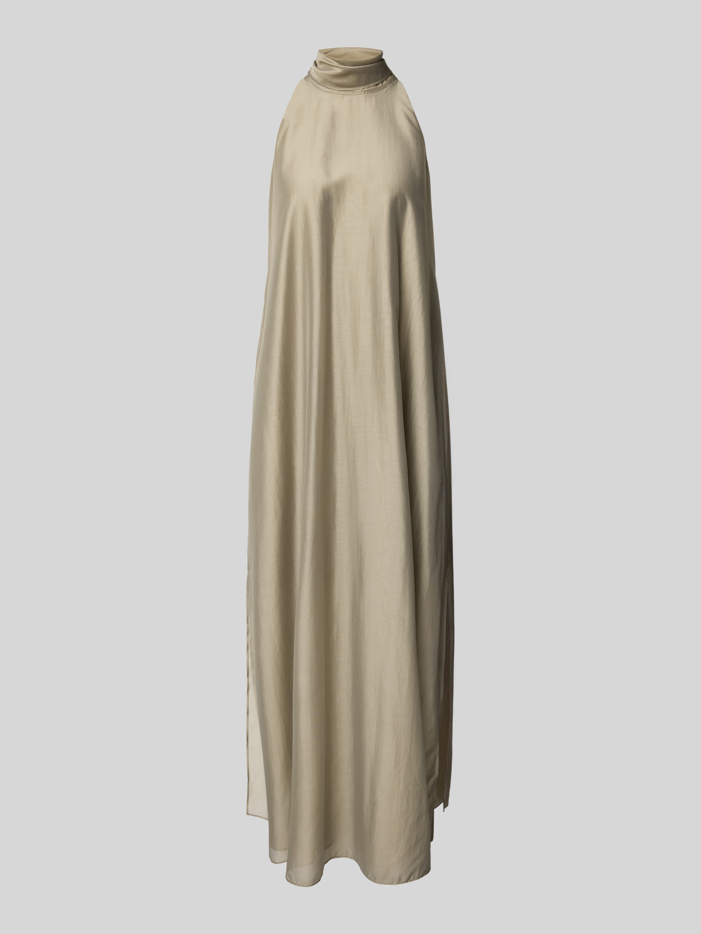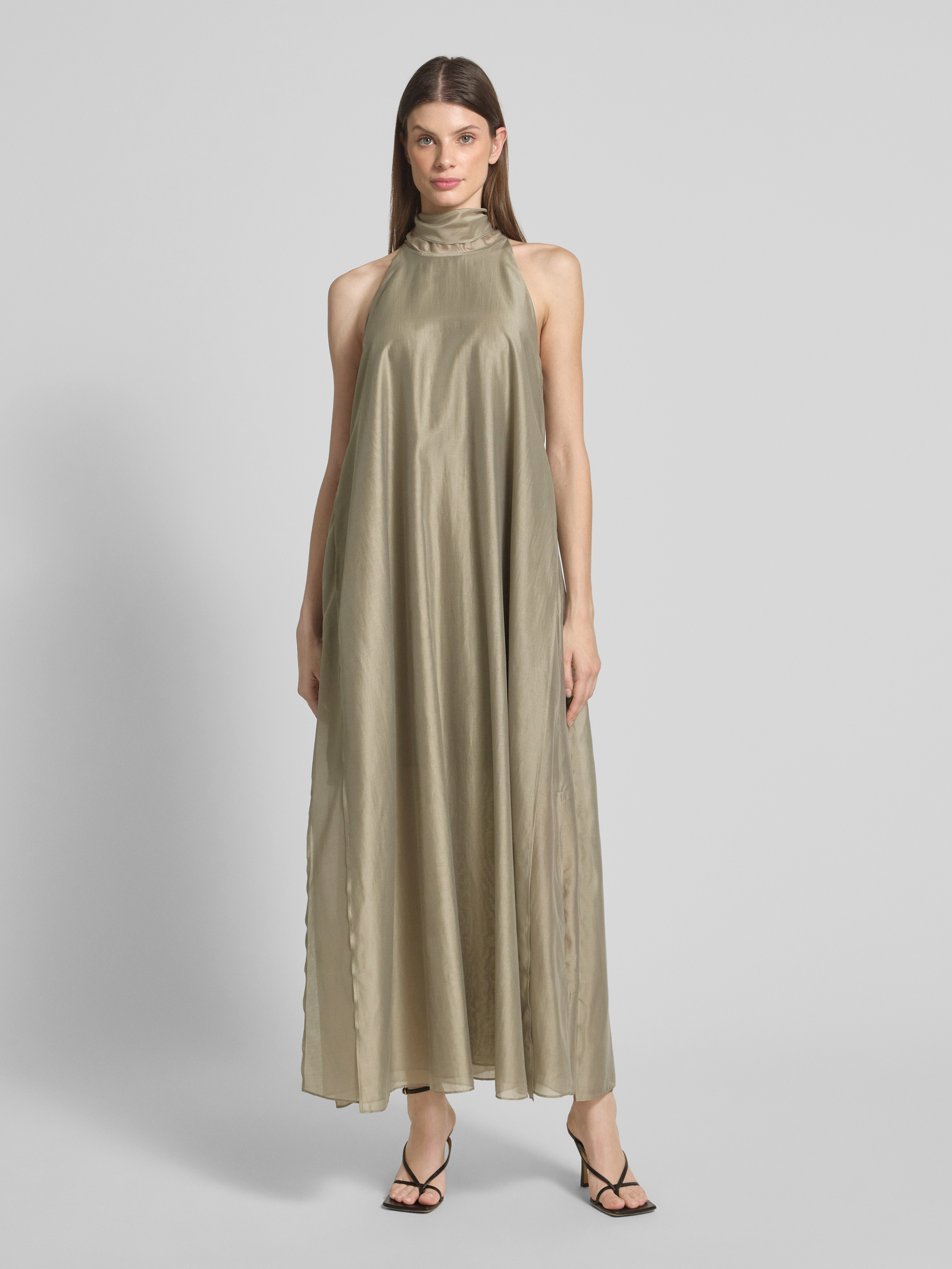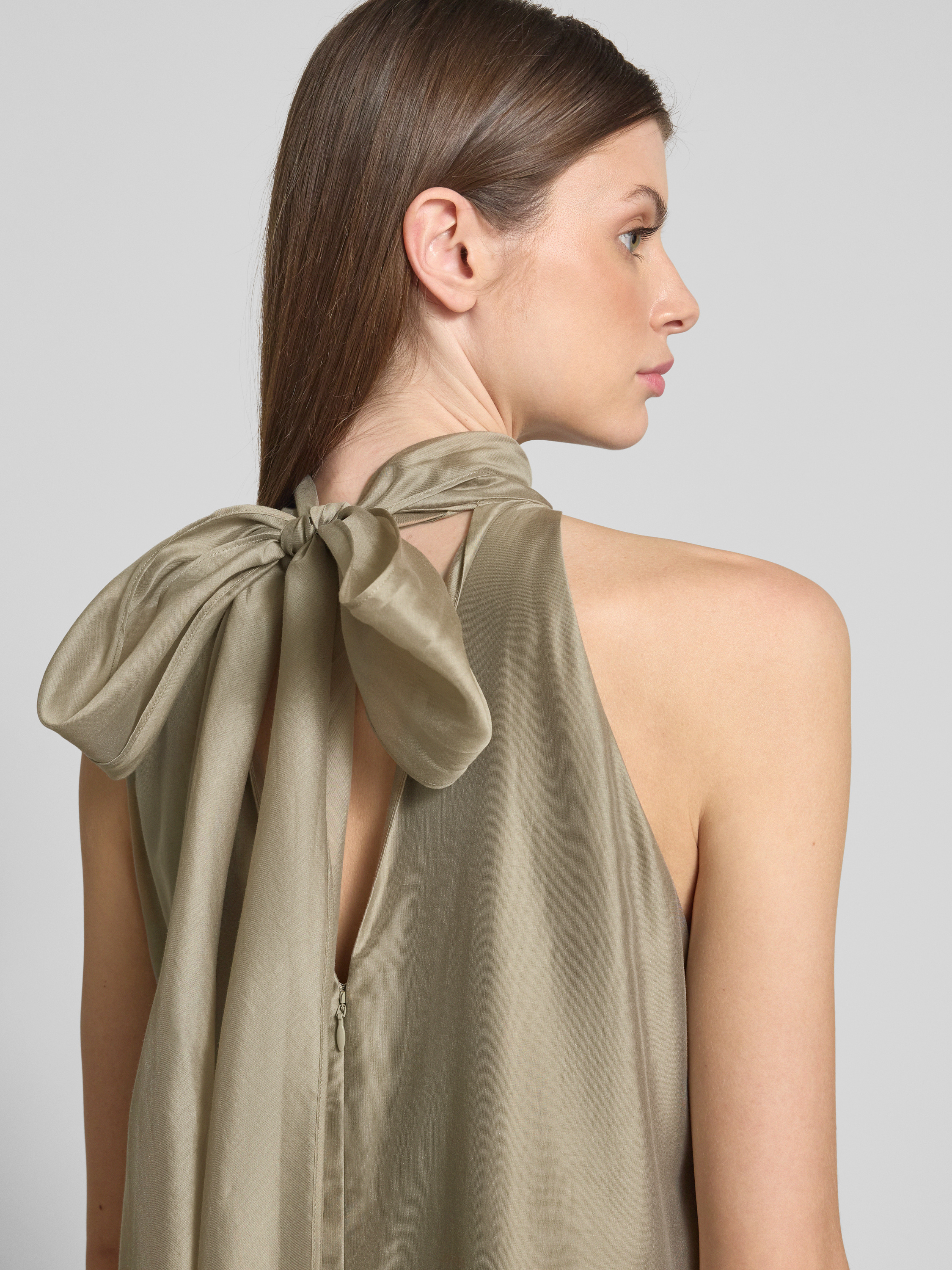 Cocktailjurk van lyocellmix met opstaande kraag in kaki