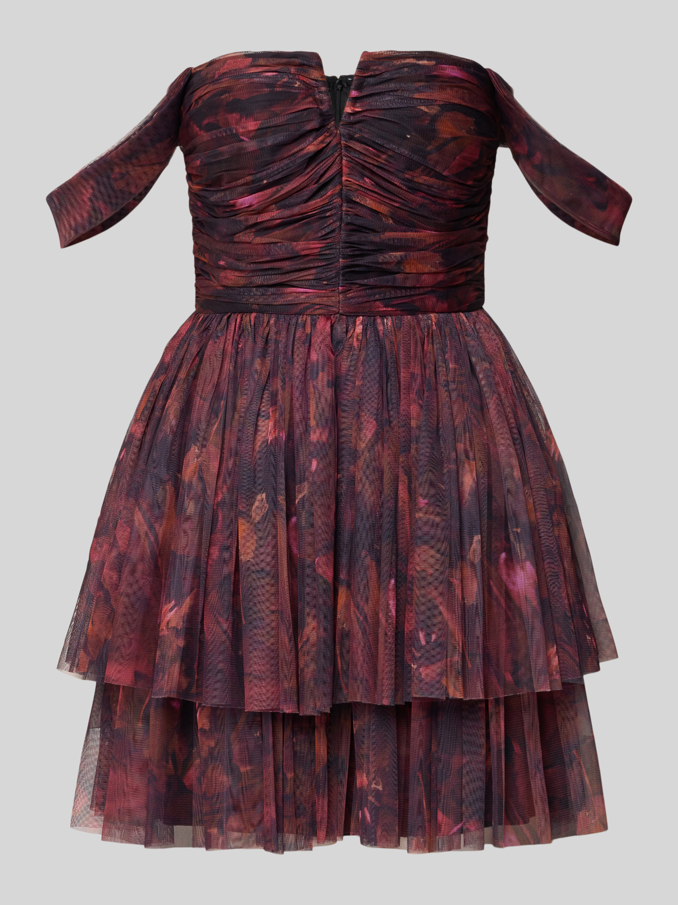 Cocktailjurk van mesh in off shoulder-look in chocoladebruin gemêleerd
