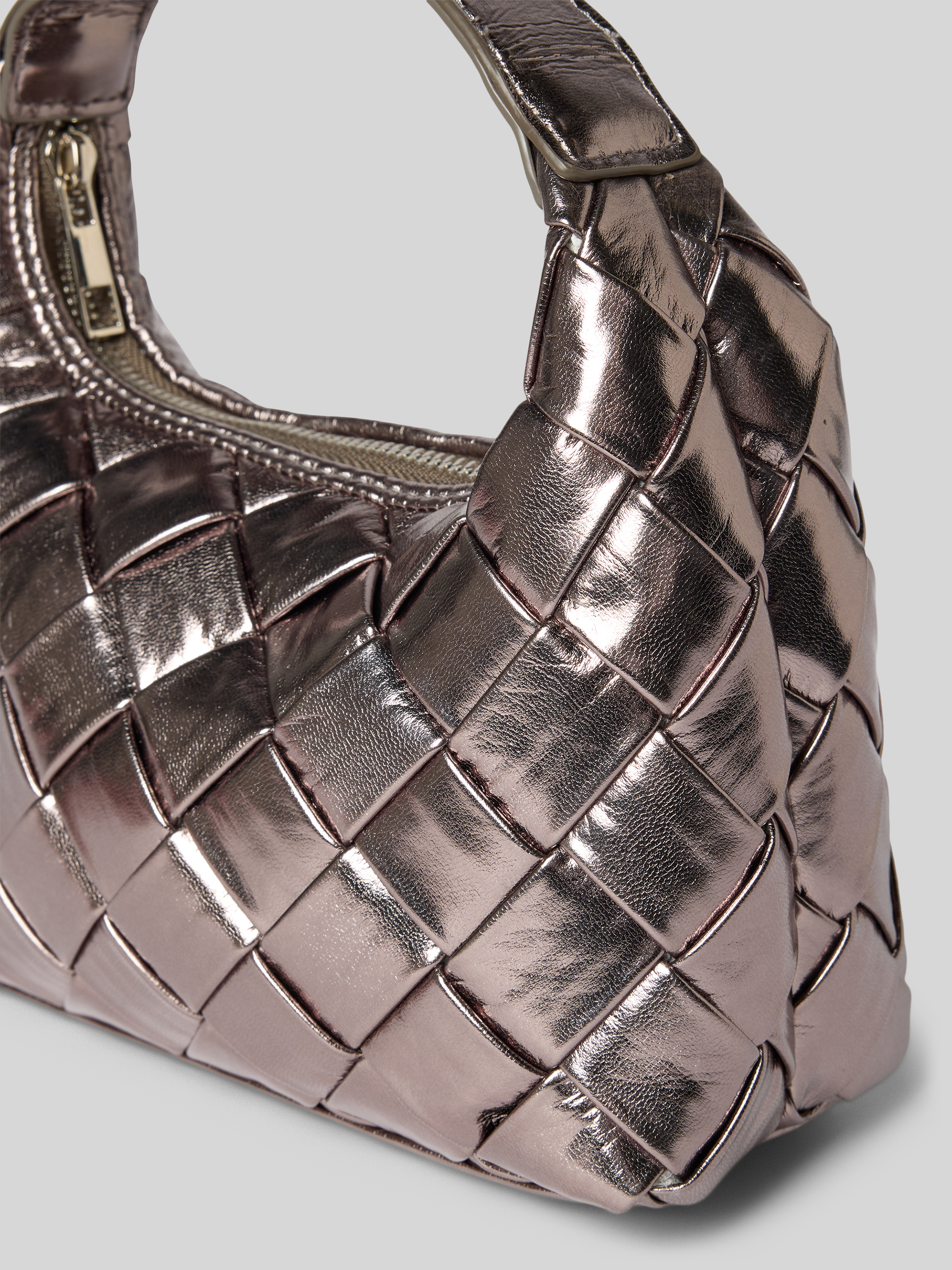 Handtas in gevlochten look met korte draagband in metallic bruin