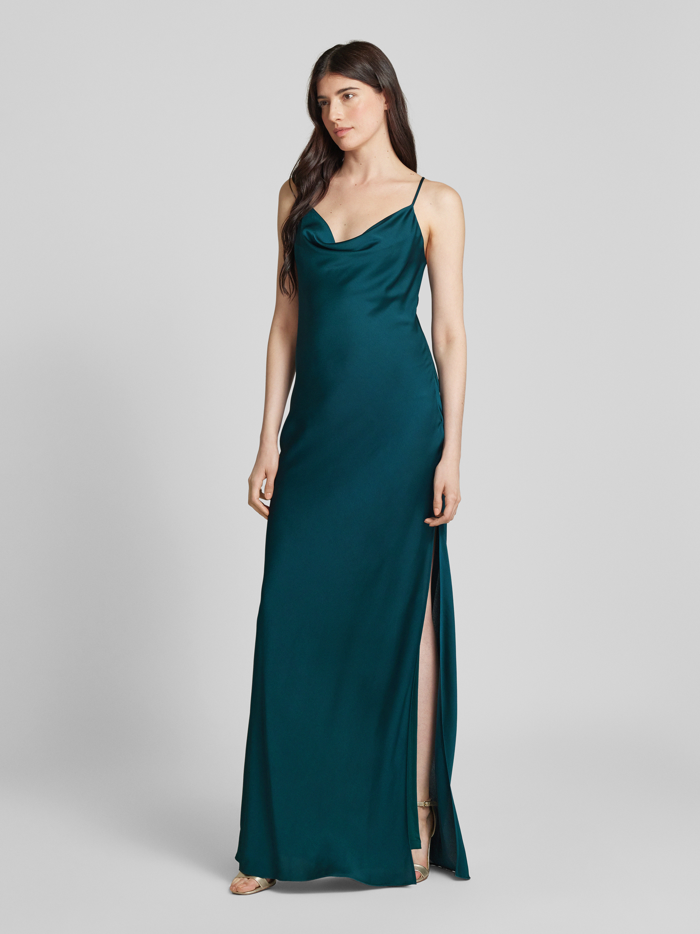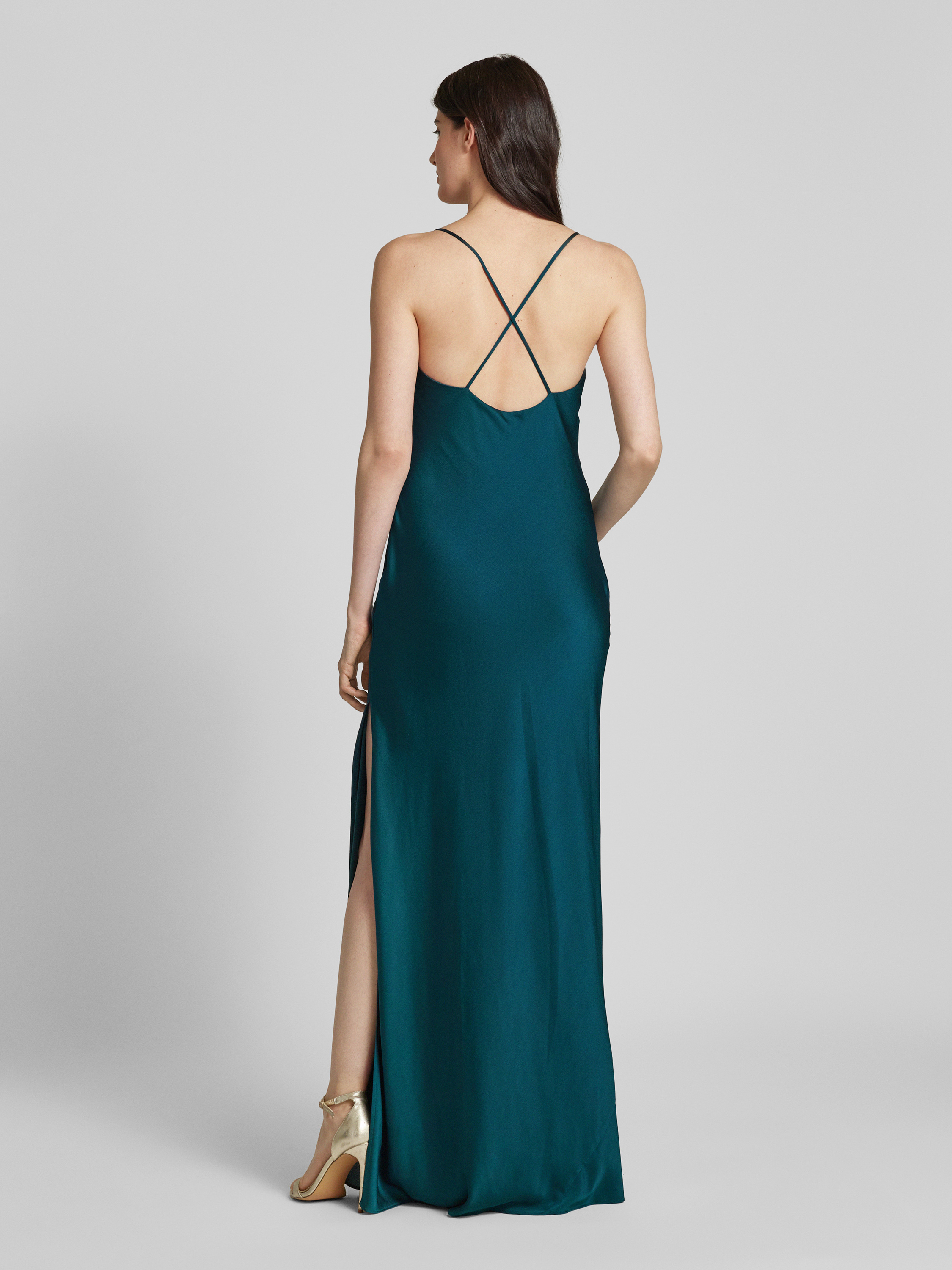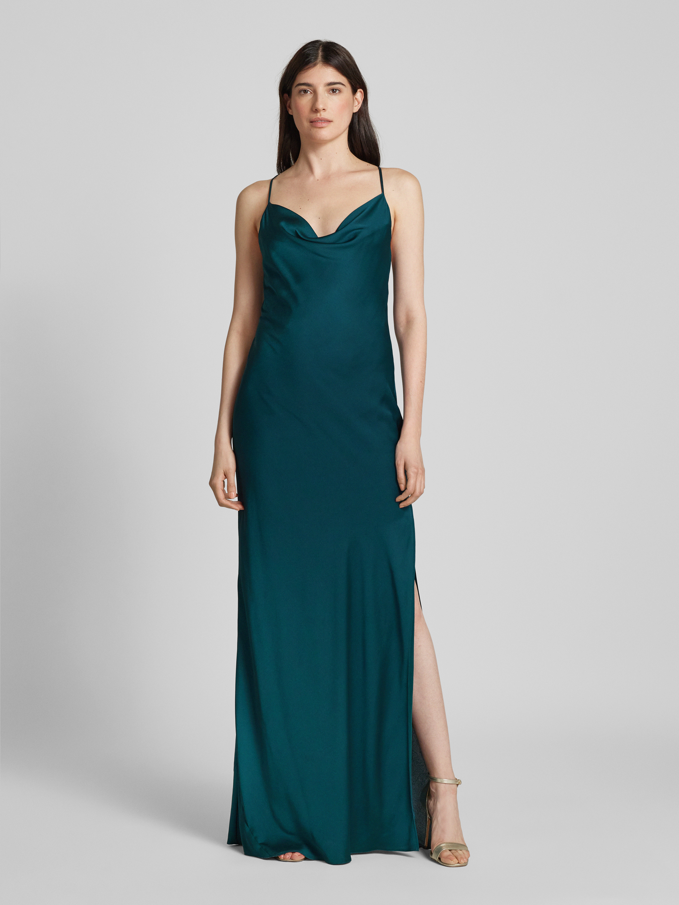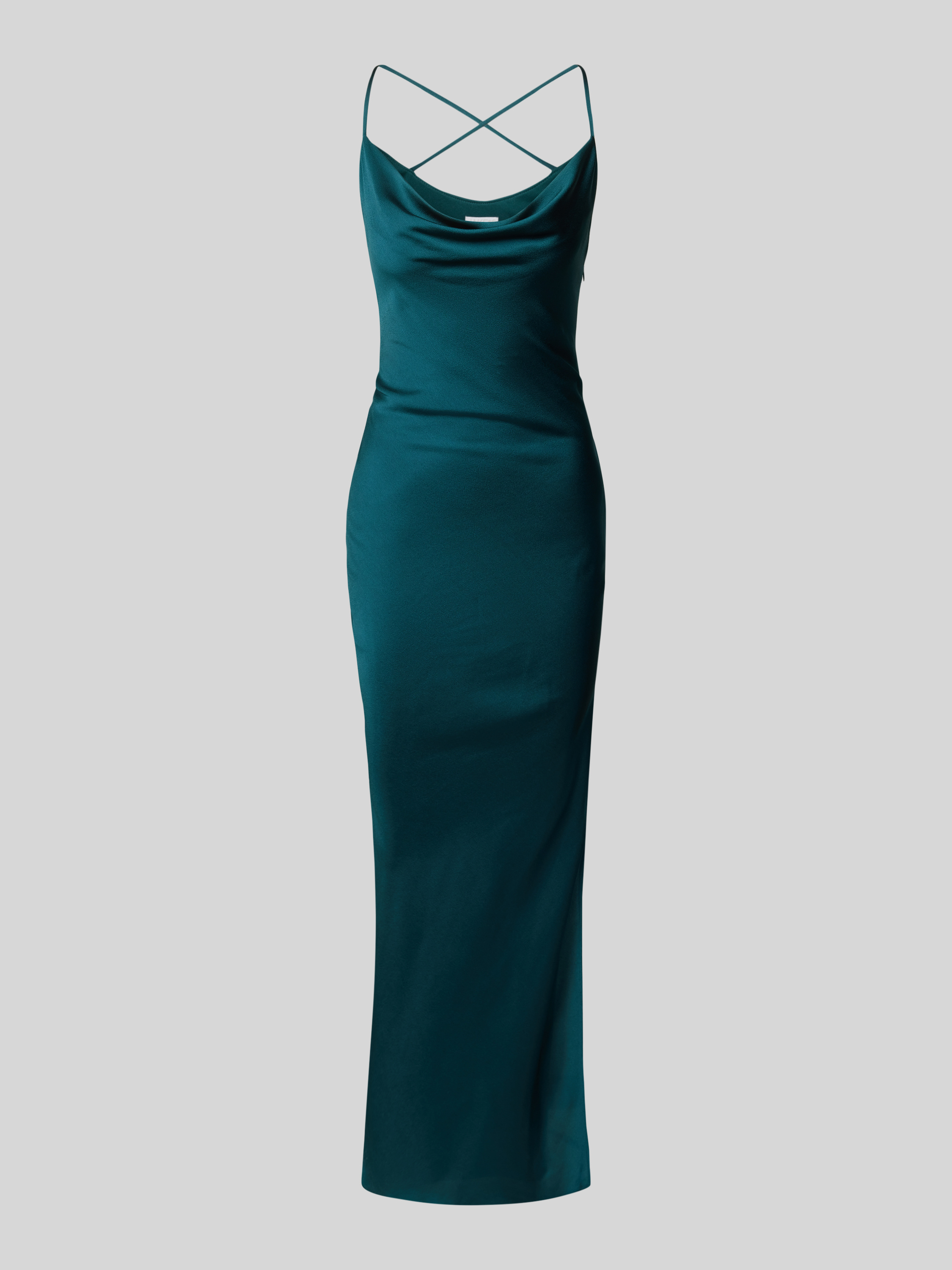 Maxi-jurk met cascadehals in donkergroen gemêleerd