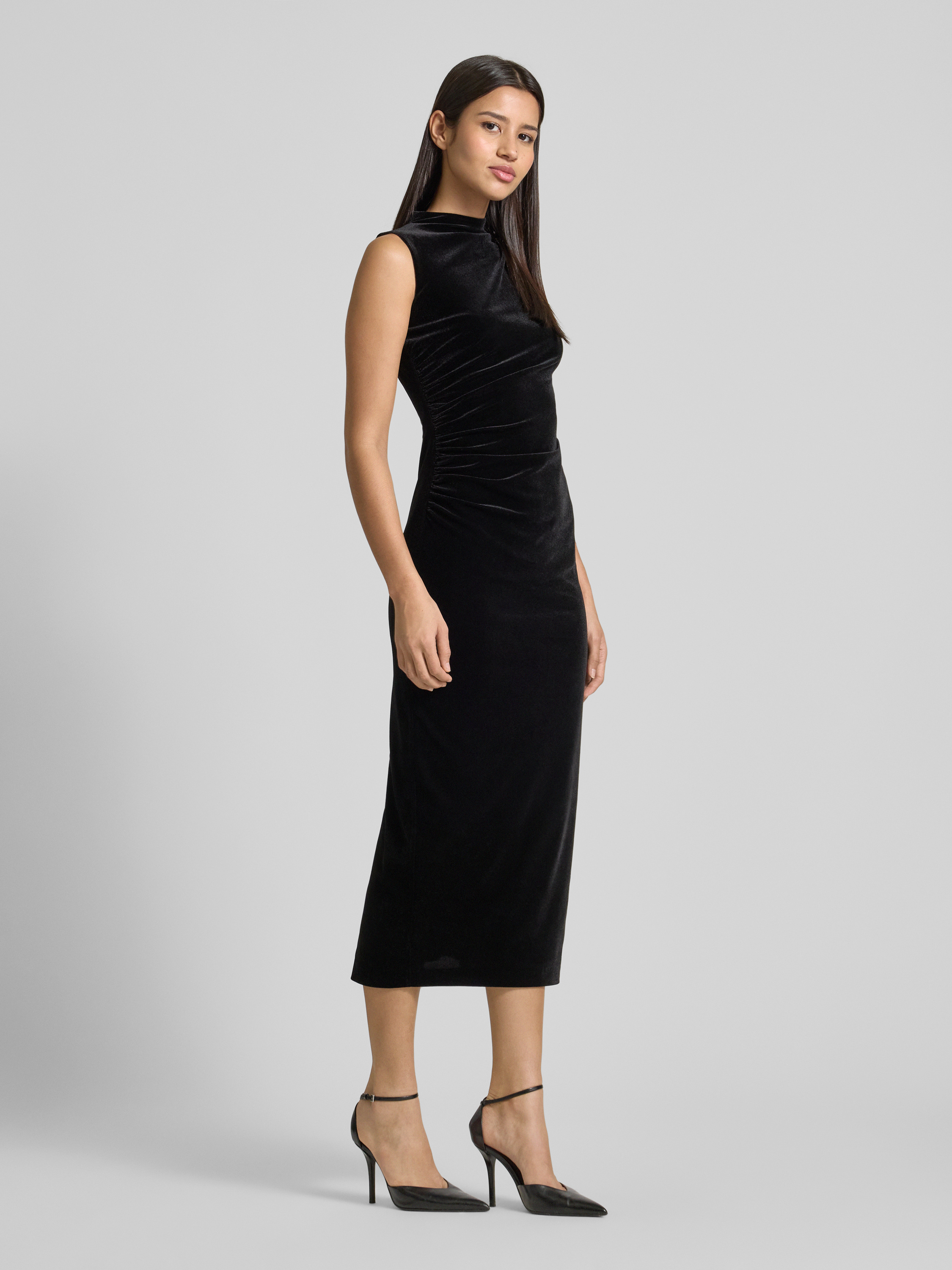 Slim fit cocktailjurk met plooien in zwart