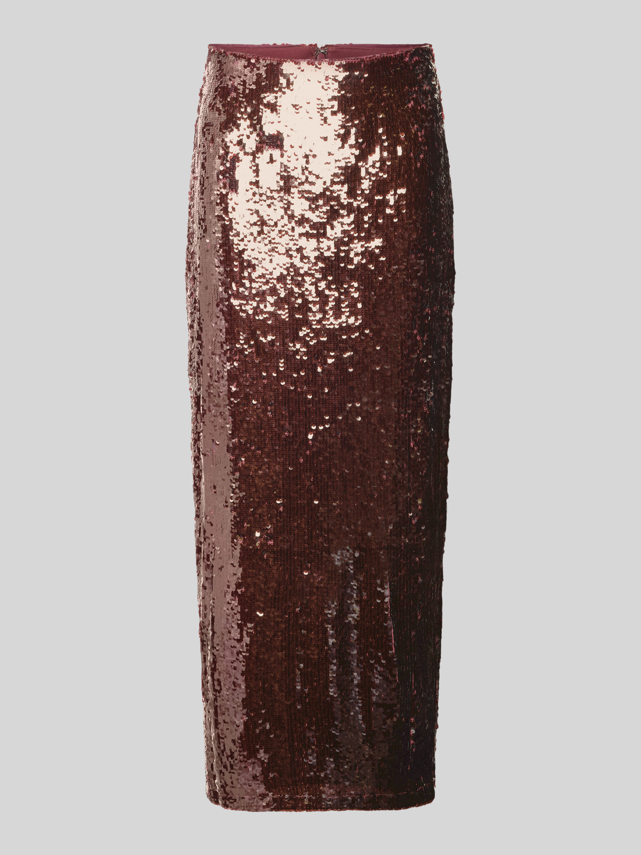 Slim fit midirok met pailletten in kersenrood gemêleerd