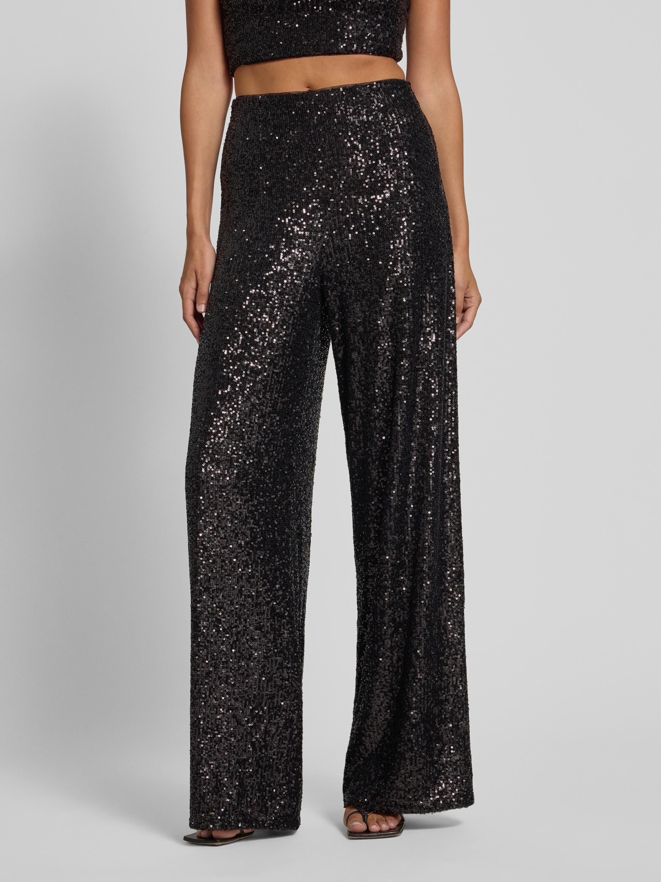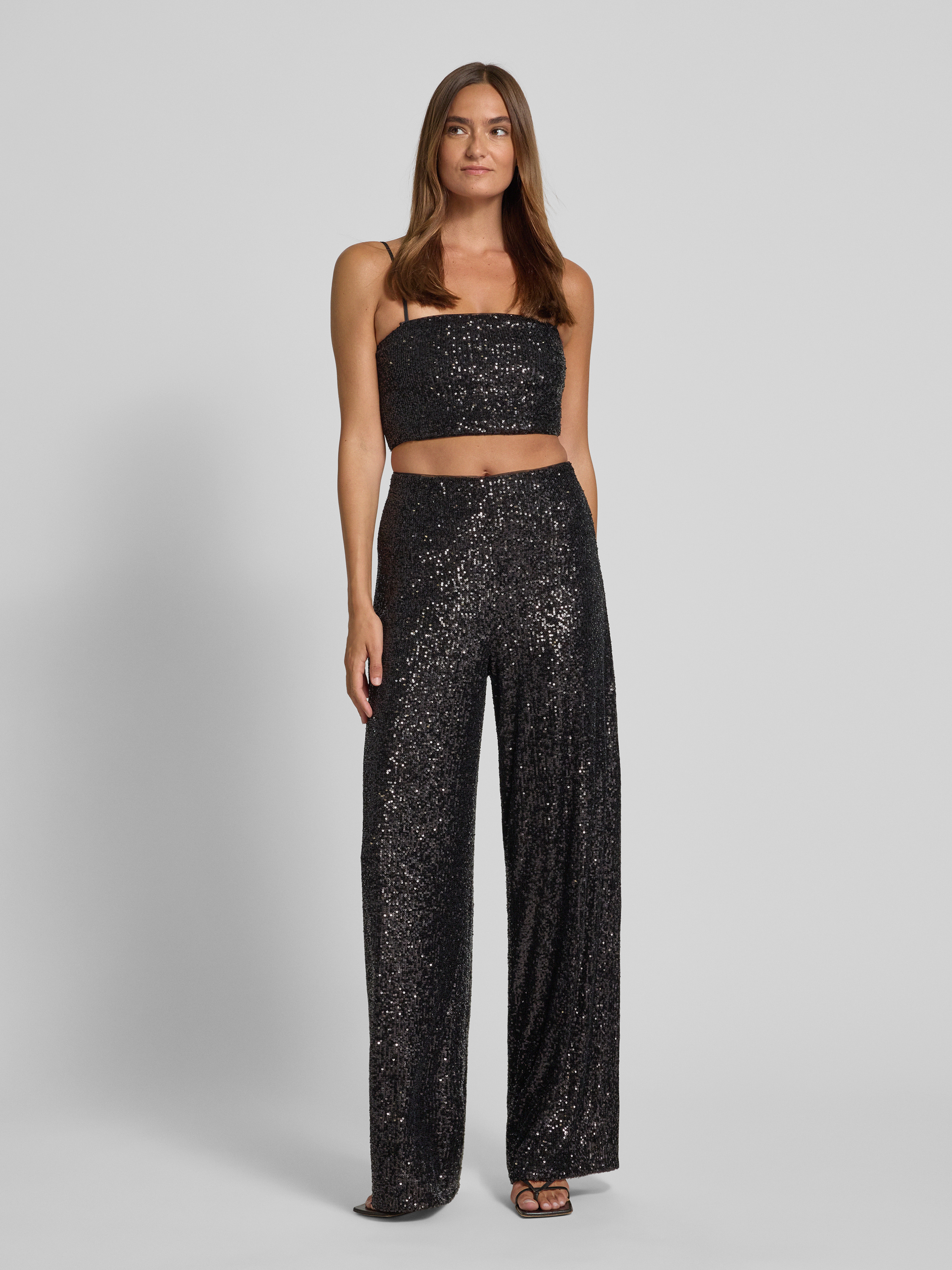 Wide fit cocktailbroek met all-over pailletten in zwart