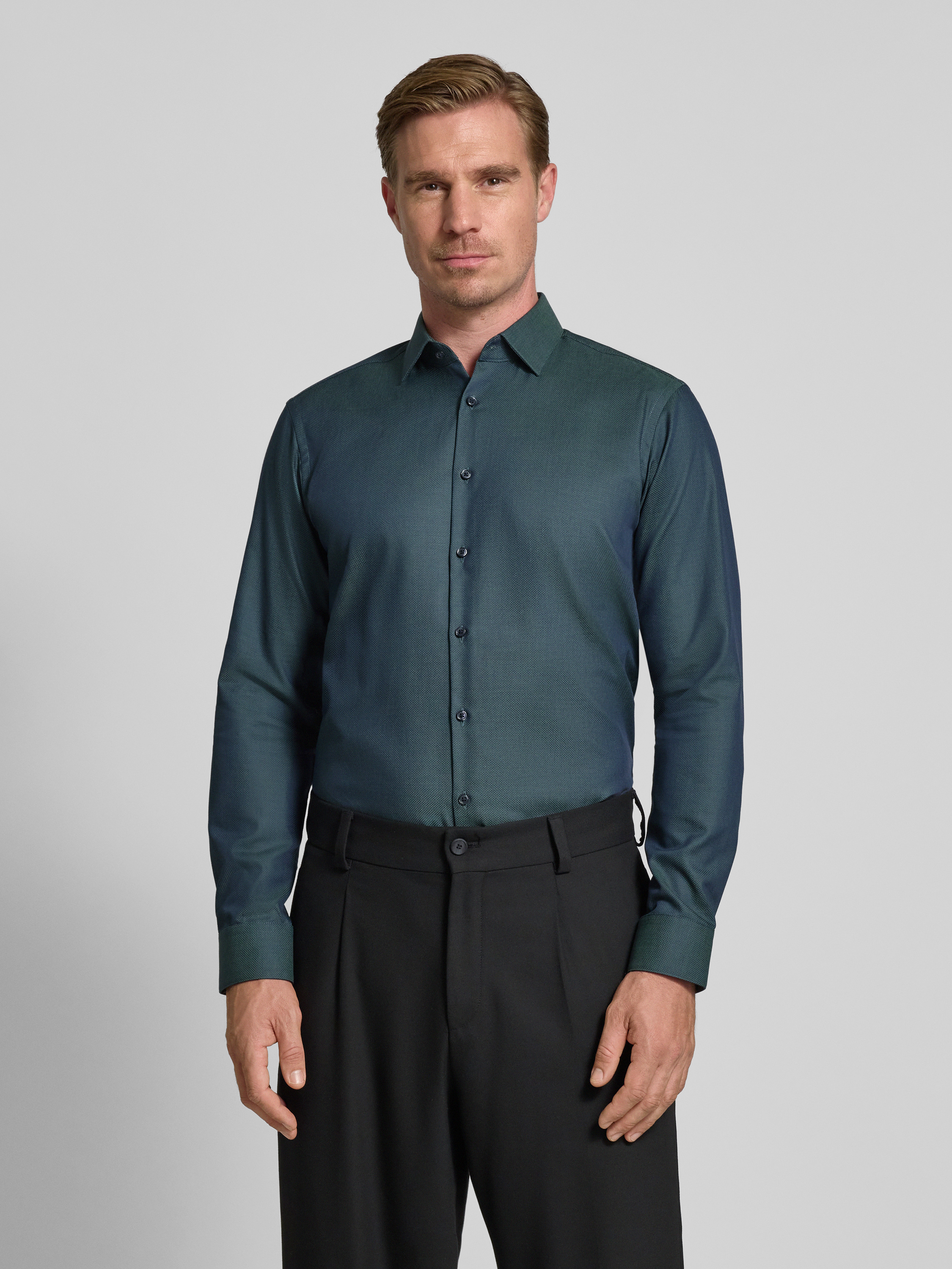 Regular fit zakelijk overhemd met kentkraag in flessengroen