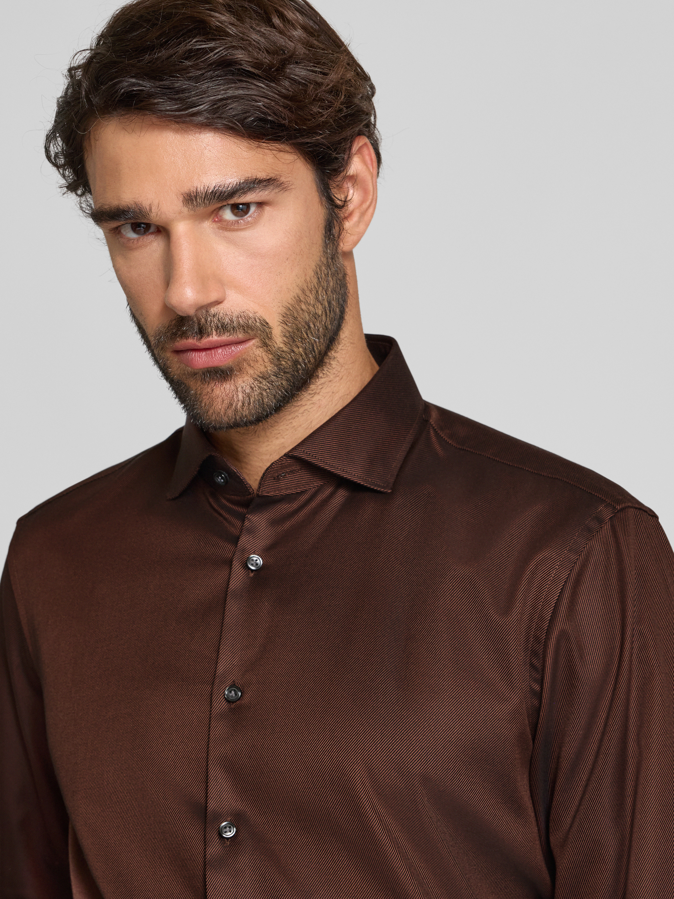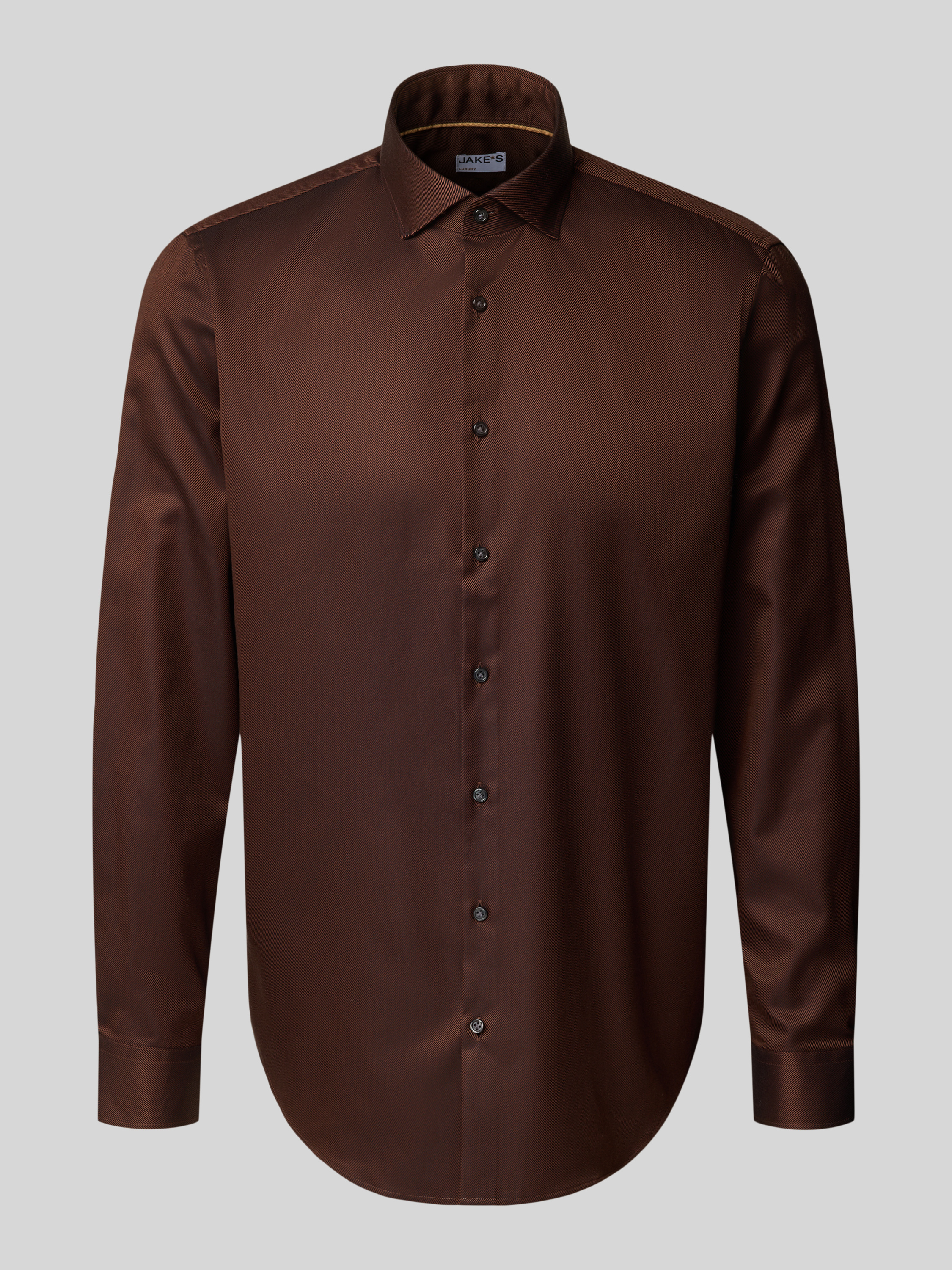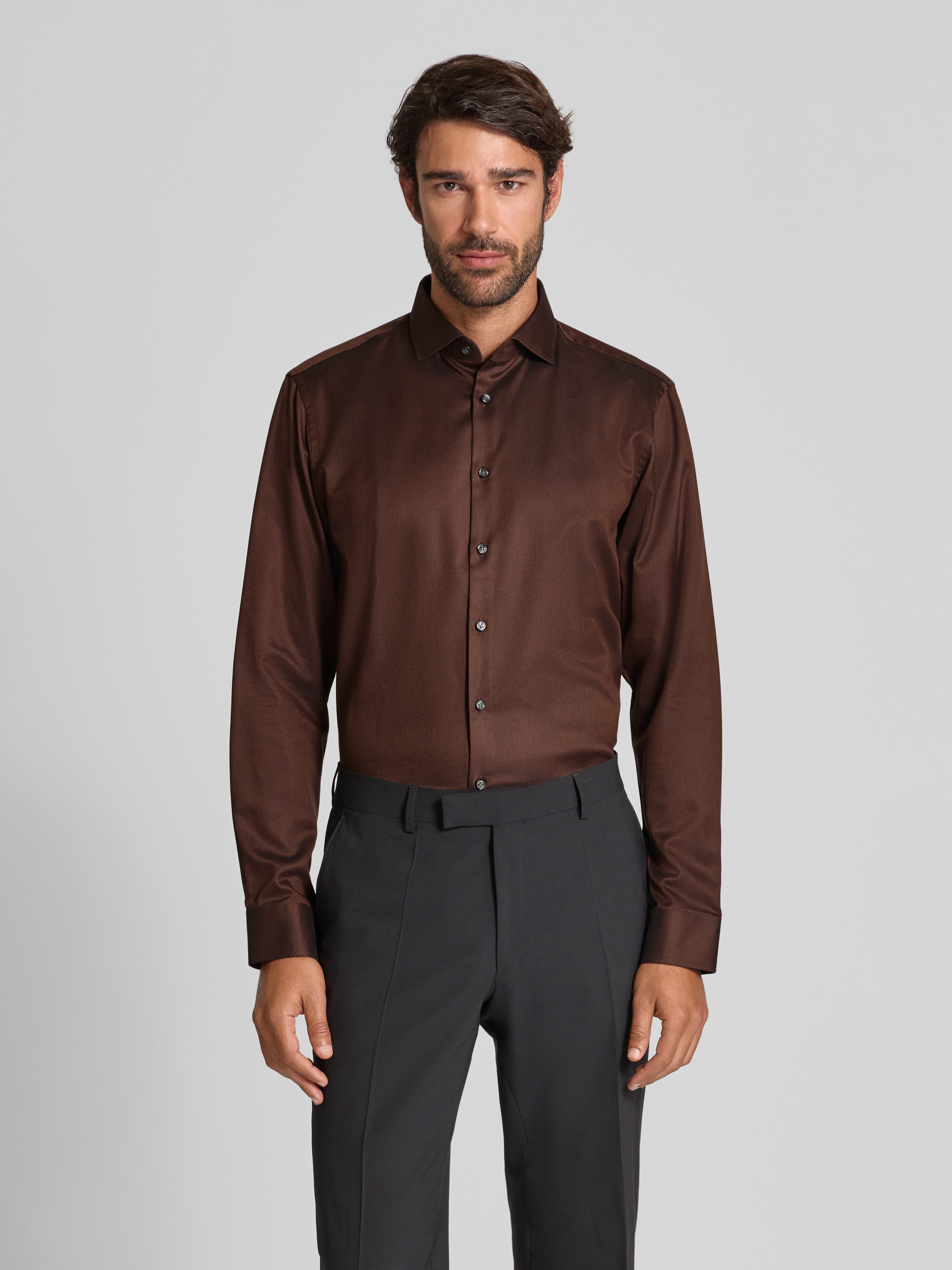 Regular fit zakelijk overhemd met knoopsluiting in hazelnoot