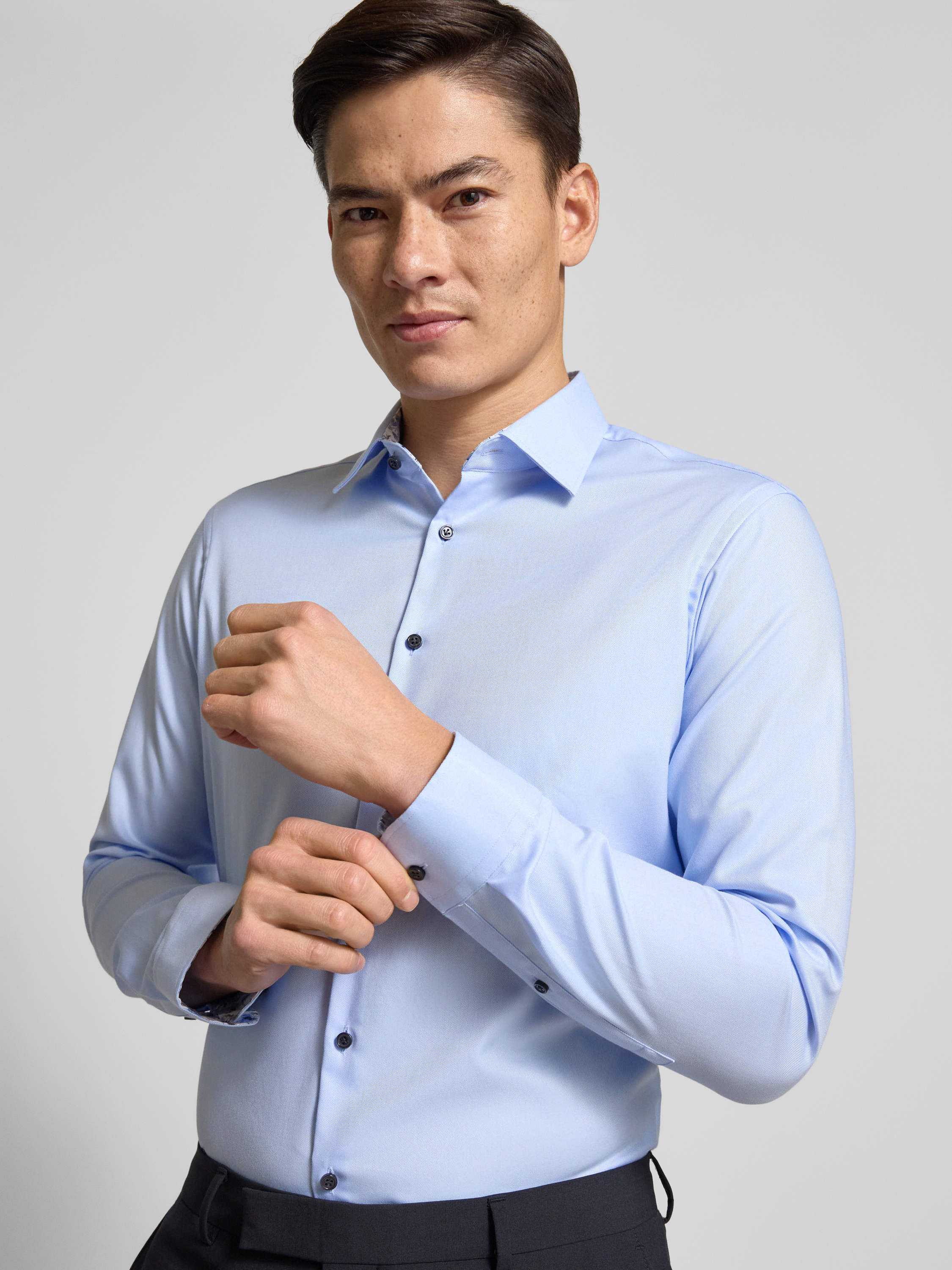 Regular fit zakelijk overhemd van katoen met kentkraag in bleu