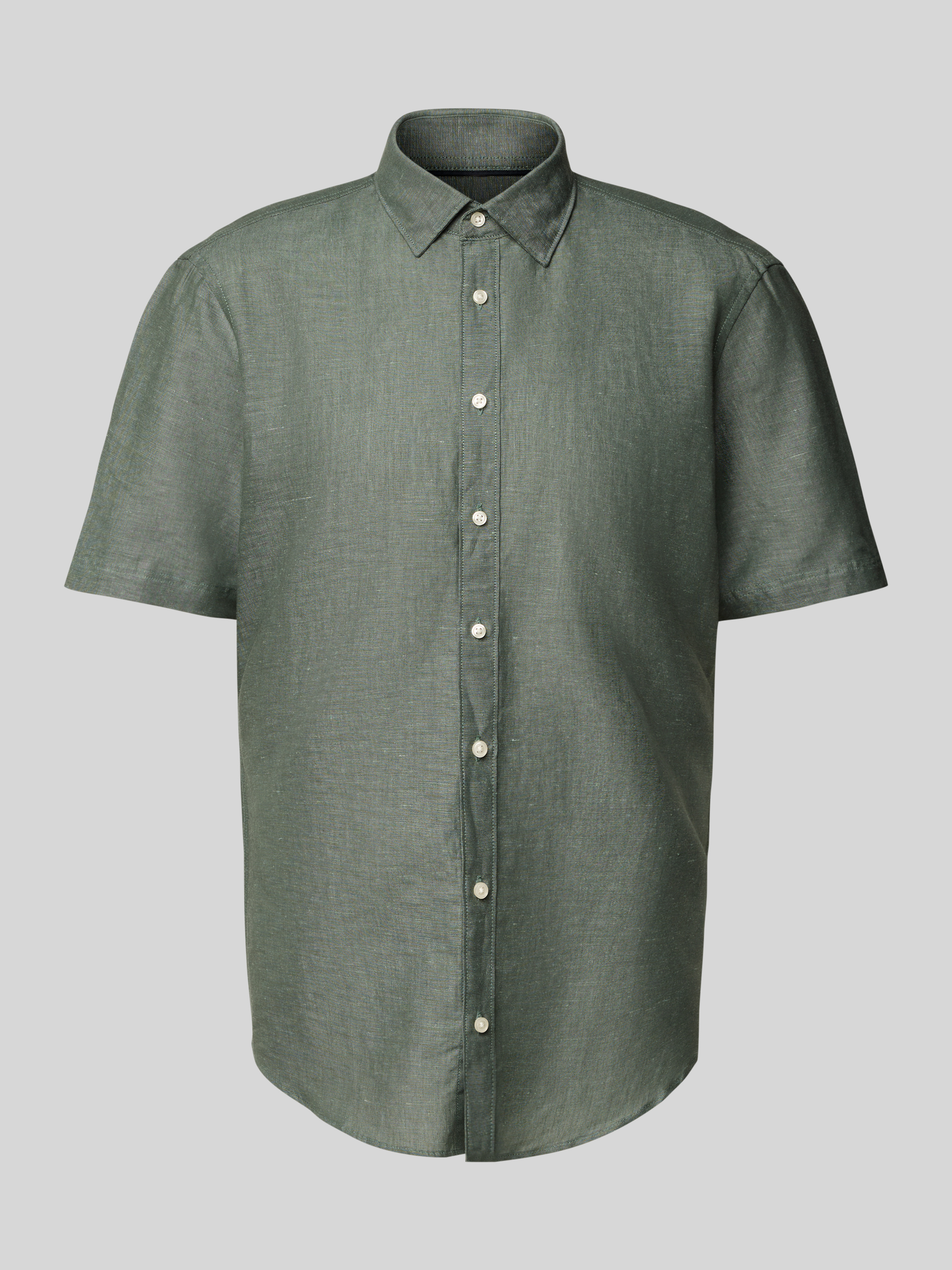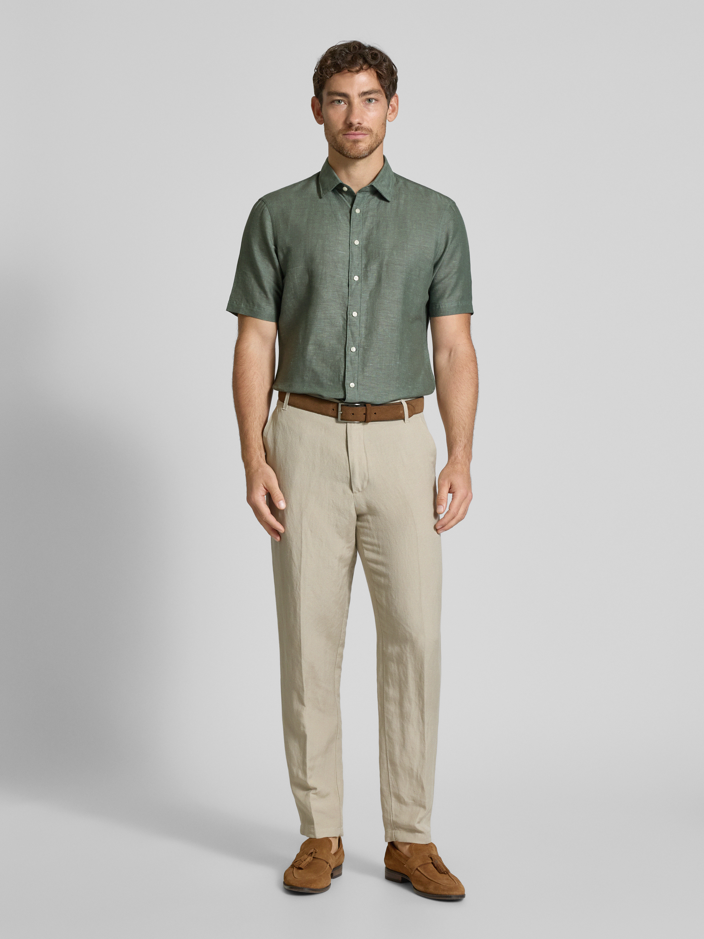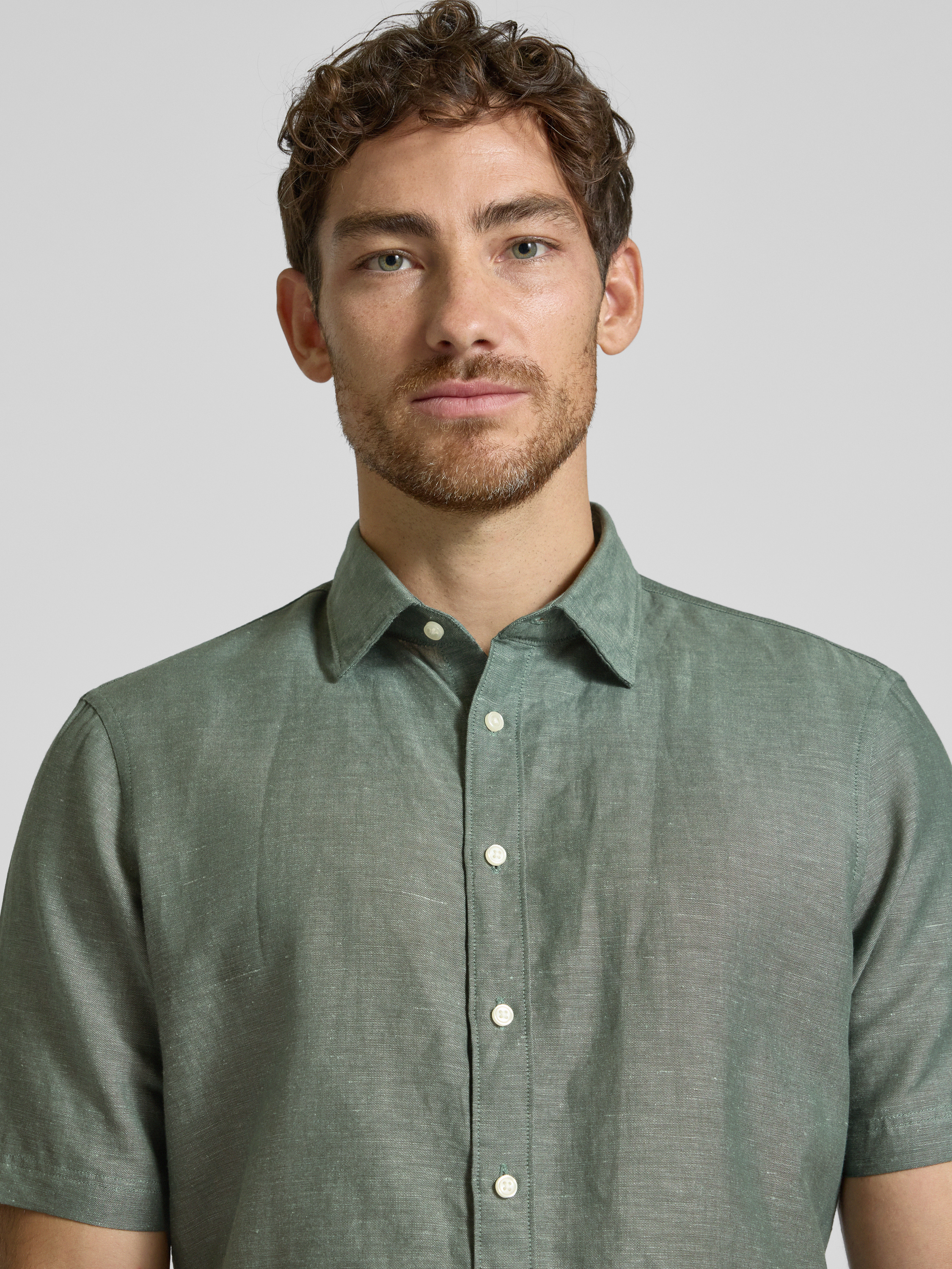Slim fit linnen overhemd met knoopsluiting in donkergroen