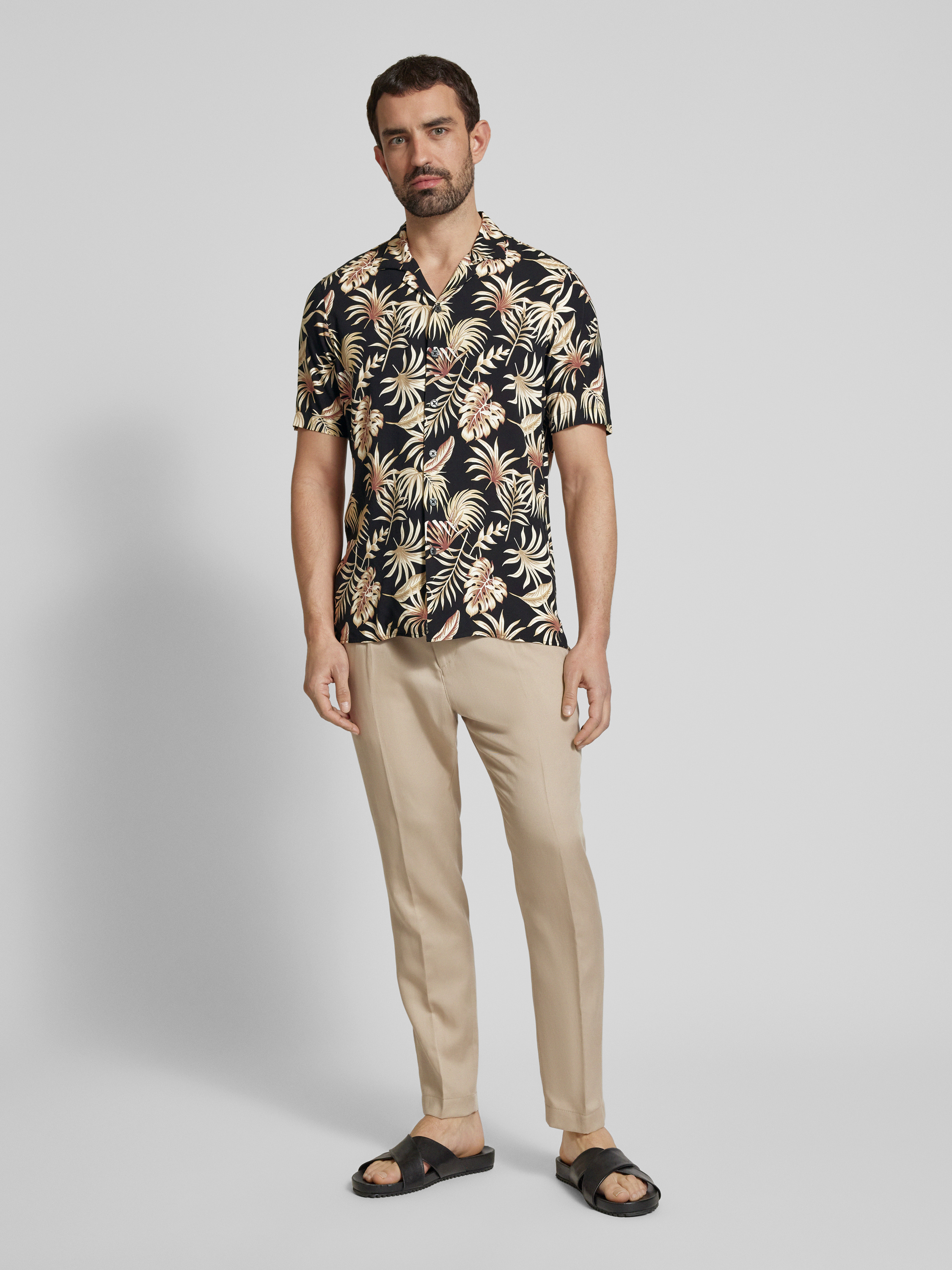 \Slim fit bandplooibroek met linnen, model 'LESTER'