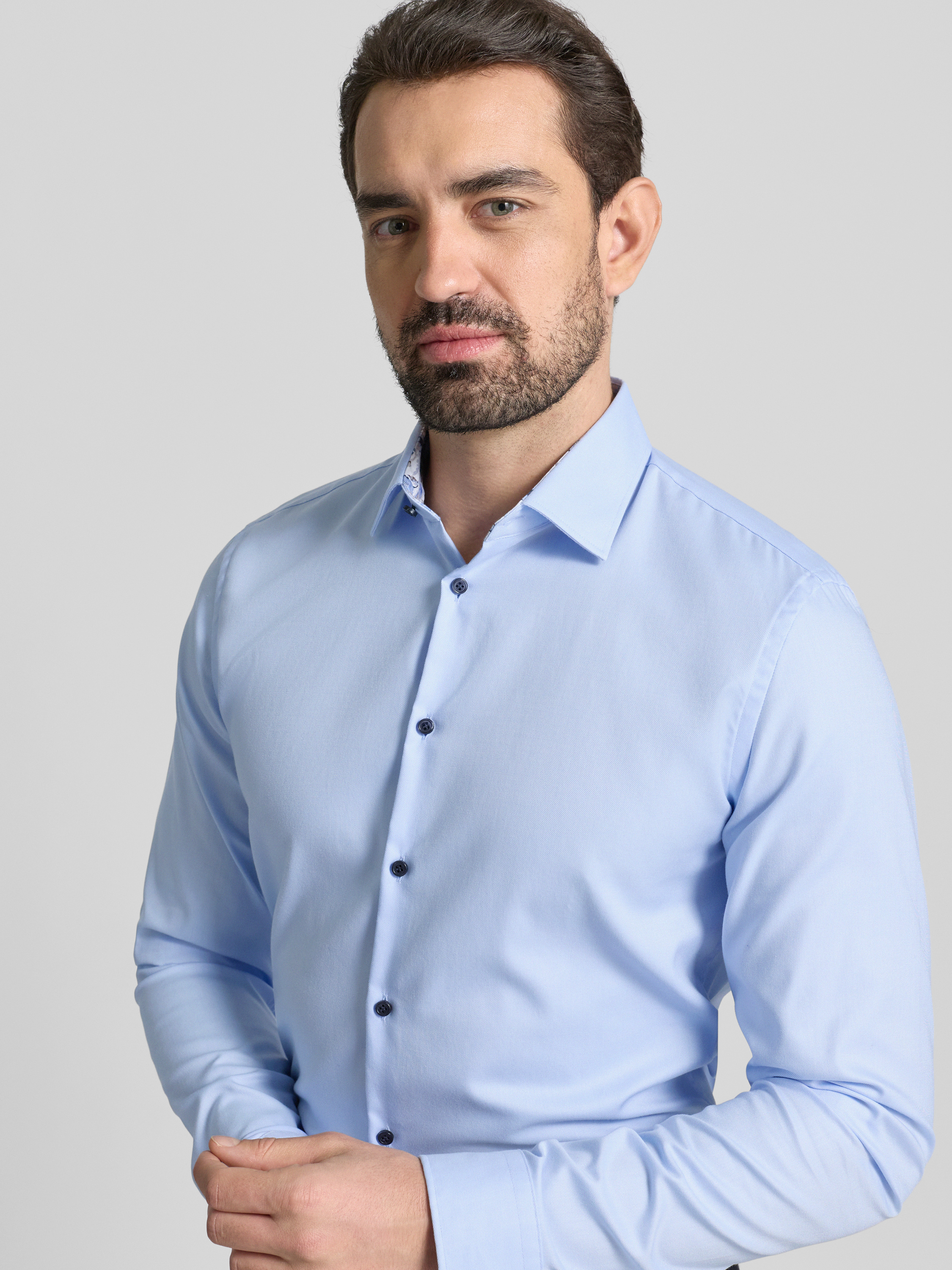 Slim fit zakelijk overhemd met extra lange mouwen in bleu