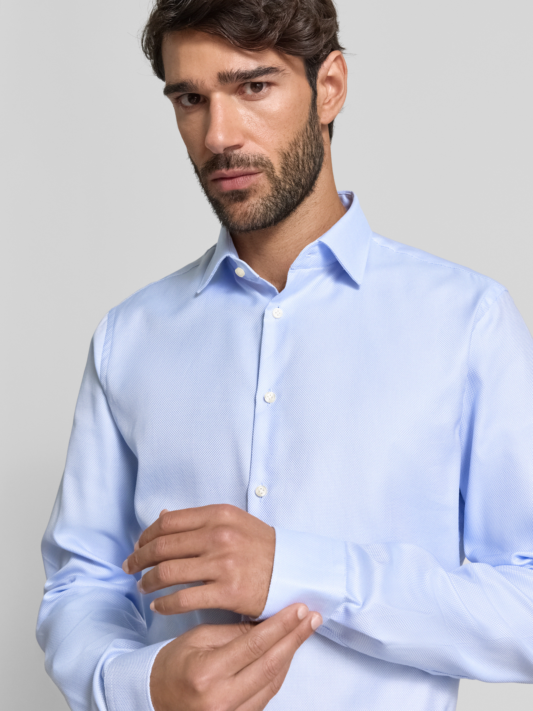 Slim fit zakelijk overhemd met extra lange mouwen in bleu