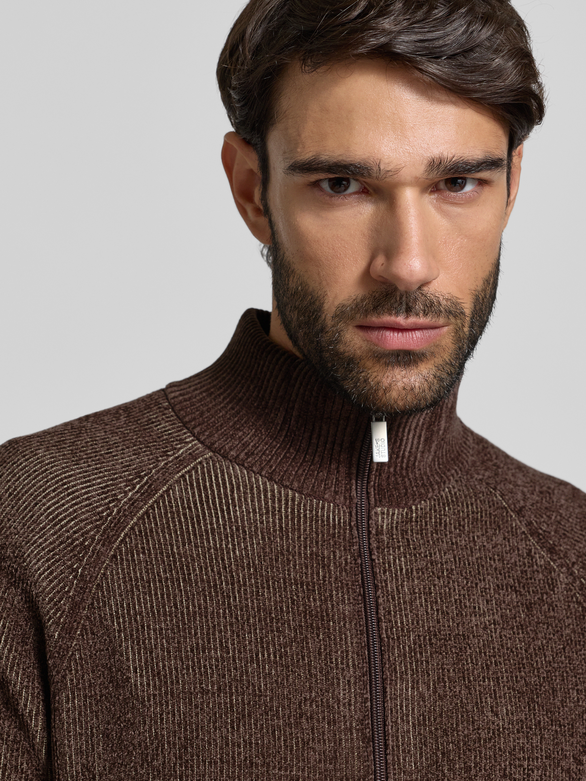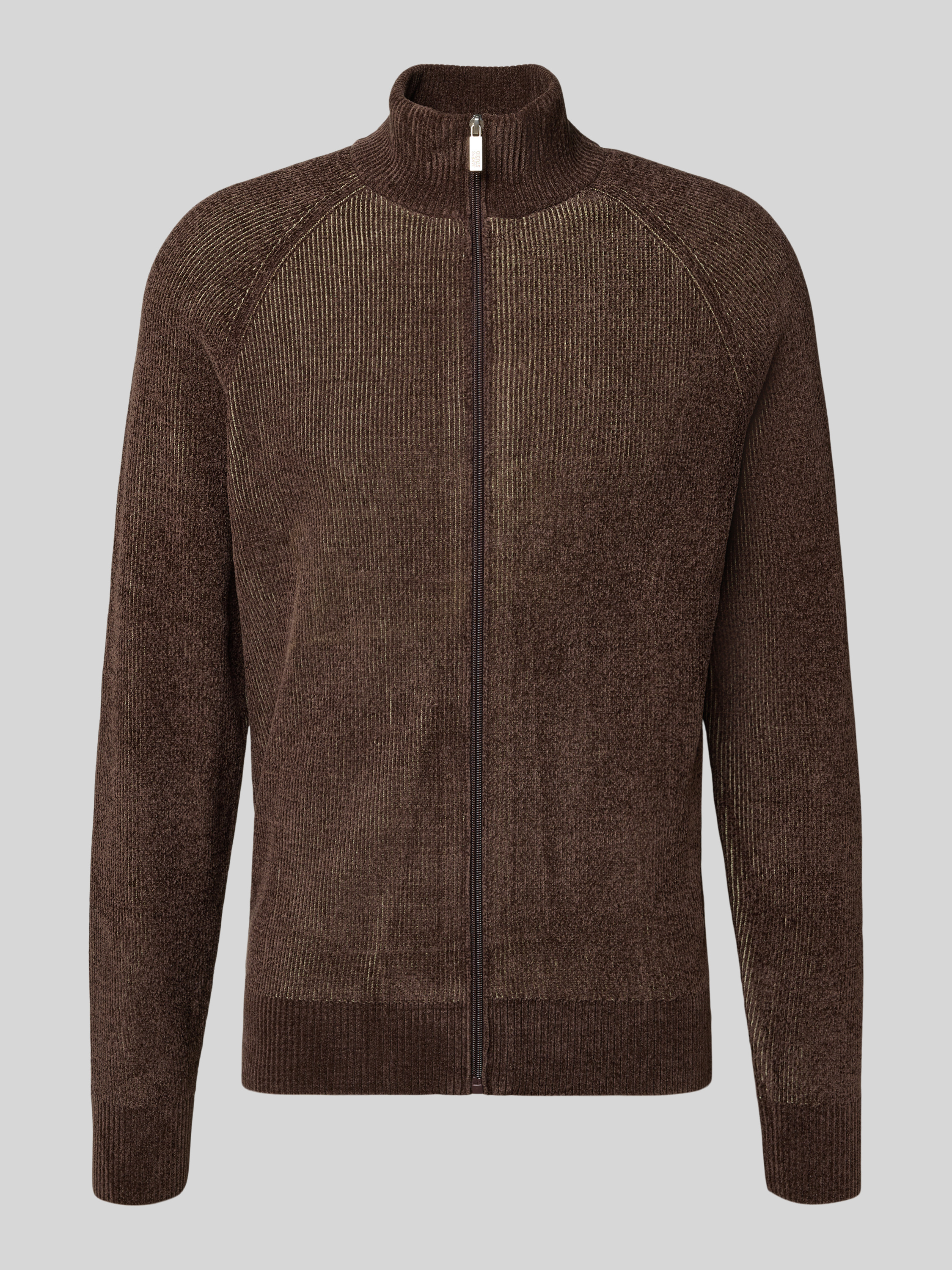 JAKE*S STUDIO MENCardigan met opstaande kraag en ritssluiting in chocoladebruin